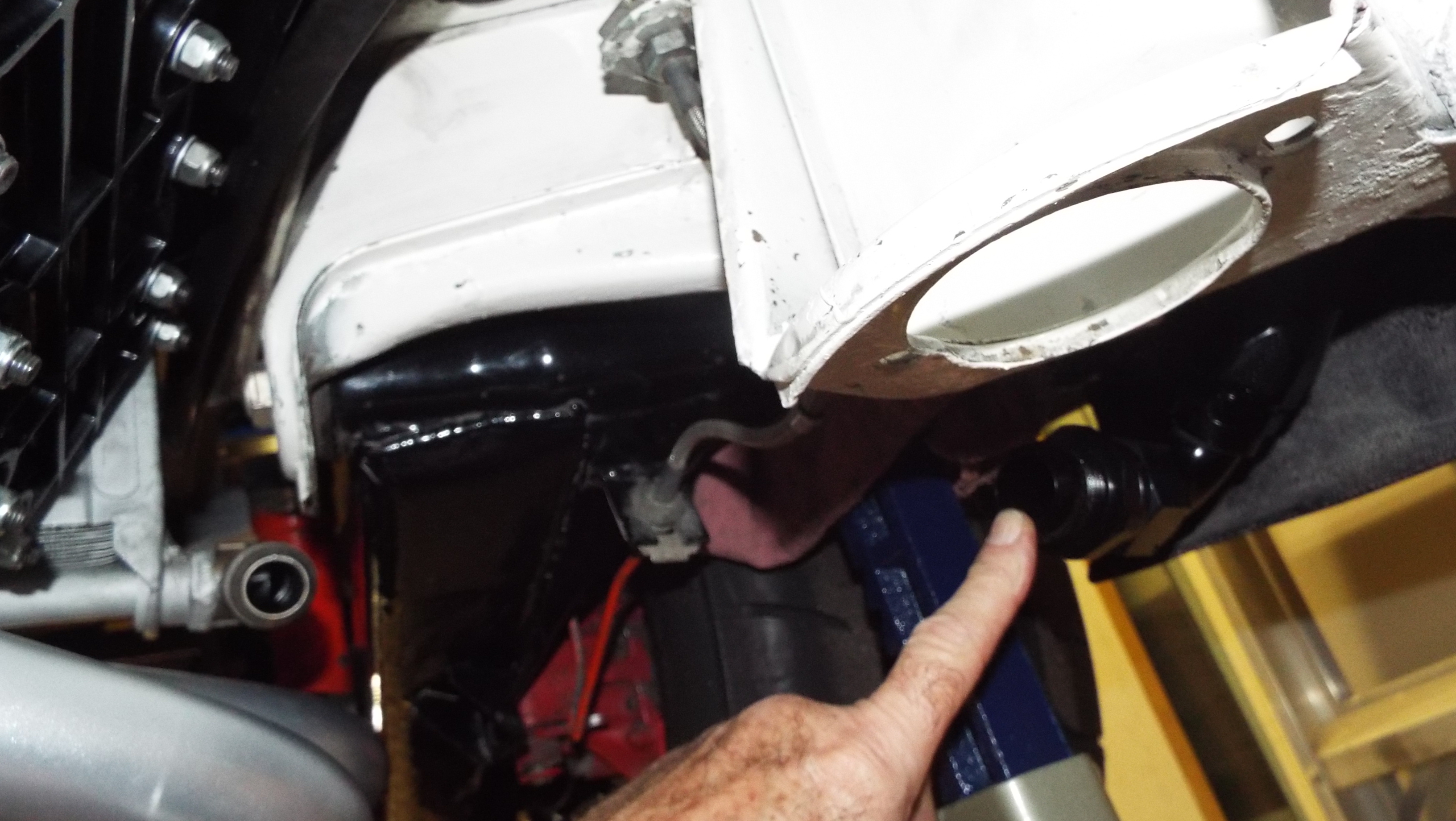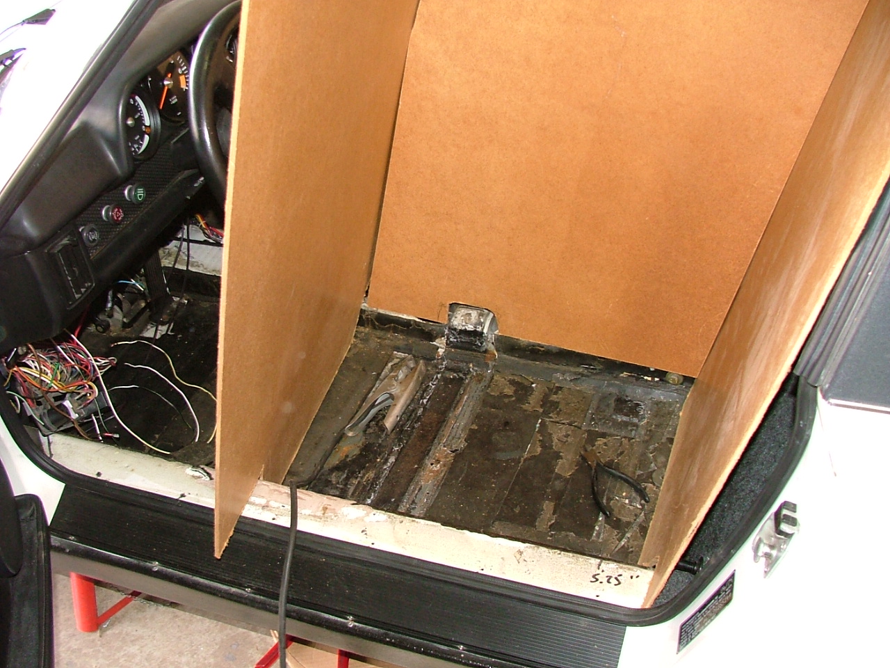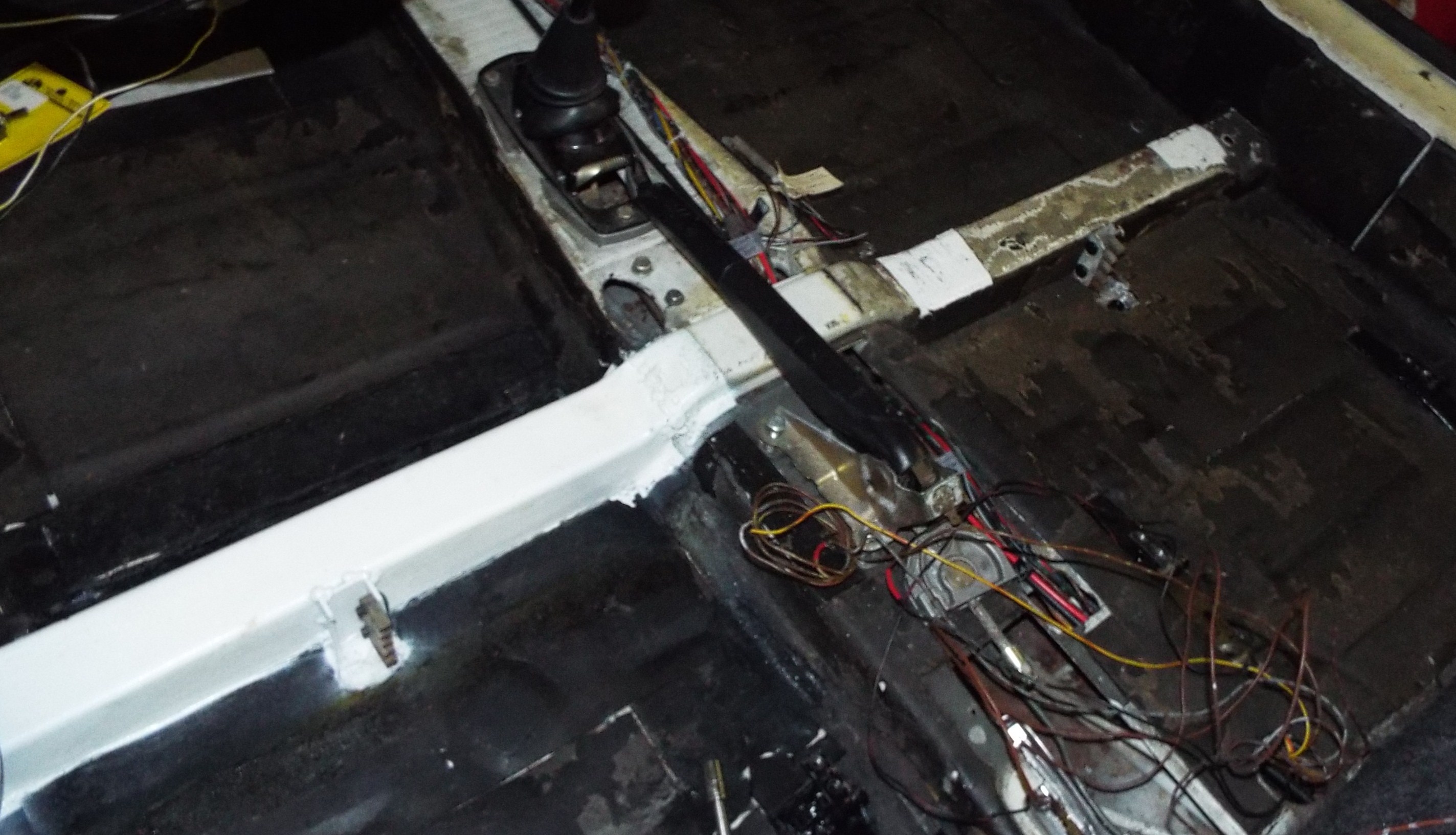 Seat Rail Cross Member Repair Sept / Oct 2015 Not sure why I didn’t post before but a host of reasons as things came to a screeching halt the end of 2015. Disclaimer: You have to cut me some slack here as I had not owned a 914 prior to this and it came with giant 911 seats just sitting in it not bolted in at all. When I originally took the seats out I noticed there was no seat bracket anything, so I knew I had a problem right there. But you don’t know what you don’t know. By Sept 2015 I had spent countless hours IN the car with wiring and the rear firewall insulation and never, and I mean never, noticed until one day I was looking at pictures of an interior on 914 World (and that just might be Andy’s) and I saw this beauty. Look at this perfect yellow floor, mine is ugly one below (IMG:style_emoticons/default/sad.gif) ![]() Do you see what I saw? The damn cross rail did not go all the way across the drivers side on mine, I mean WTF? Now I realized I was really was missing something! It was cut completely off! (IMG:style_emoticons/default/sawzall-smiley.gif) Welds ground like it was never there!! All the hinge brackets and hinges gone! Flat floor! Covered with a patchwork of sound deadening. I do know the owner before moparrob had Sparco seat but not much more than that. Passenger side seat hinges ground off. Well shit I got to fix this at least for structural integrity anyway and I wanted to be able to run stock seats and who knows maybe someday Scheels ( I mean I saw Larmo63’s Scheels at 914 Fun Day and I’m Jealous and that is what actually refreshed my memory of this wonderful mess). I had by this time new German glass front and non German rear installed (another story for another day that I would just as soon forget) so I fashioned some partitions out of hard board for sparks. The only place I could find the half cross rail was AA but I was happy to be able to find just a half. And it actually was a pretty nicely made piece and did not require a lot of customization to fit it in. Not the welding expertise of mb911 but I got it done! Kind of a tight area too. (IMG:style_emoticons/default/welder.gif) Installation of seat brackets was a royal pain but they are even and level. Picture of completed to follow. |