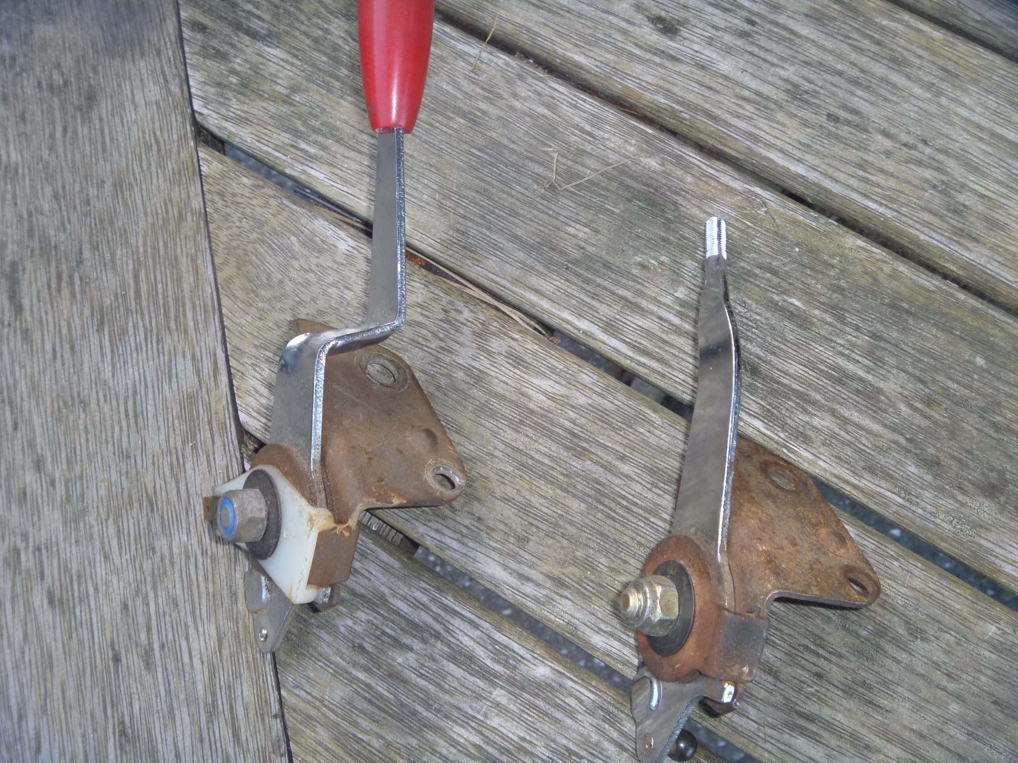 Don't sweat it Jim,had an input shaft seal go real early,managed to save my new clutch just in time,you are still lucky9146 (IMG:style_emoticons/default/av-943.gif) (IMG:style_emoticons/default/av-943.gif) . Replace both sides you will be good, (IMG:style_emoticons/default/beer.gif) . (IMG:style_emoticons/default/agree.gif) Thanks! (IMG:style_emoticons/default/beerchug.gif) Yes you are right I truly am still lucky (to have this car). If you did your own trans work were there any nuances removing the stub shafts? Both sides RH thread? Tips? etc? (IMG:style_emoticons/default/white914.jpg) No never touched mine and its not great,others have done this seal repair but not me ...no big deal as far as I have seen. Your handthrottle lever is this one BTW; The straighter one of the two (rh side pic ),fairly simply thing to build . |