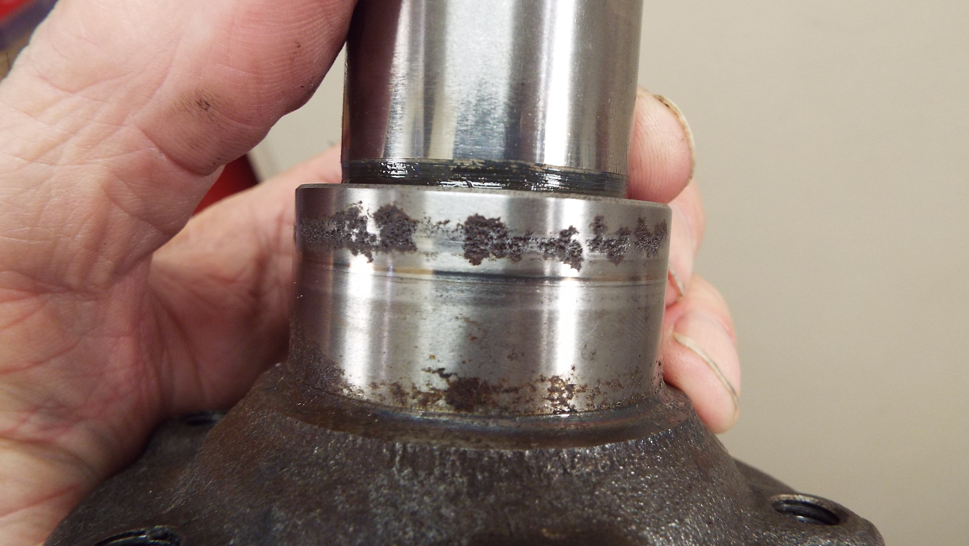 Not as bad as you say, but still has rust in the path of the seal. The seal was riding on that bright shiny area of the shaft, that "better" one is still (IMG:style_emoticons/default/barf.gif)