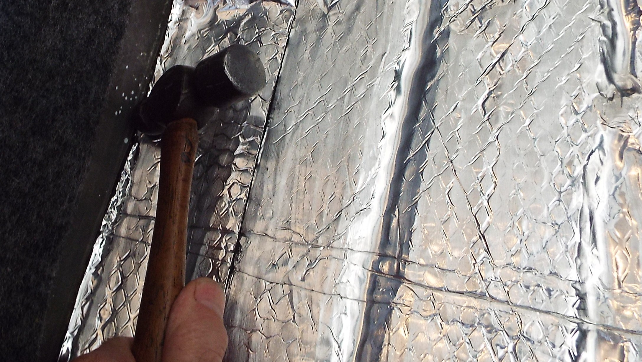 Great stuff to work with too! Sticks like crazy! They recommend a special roller for installation which I didn’t buy. Still have a bit more of the install to do. The idea is to press the quilting of the foil top until it is smooth. I found a tool which I think actually does a better job than a roller and really gets into all the nooks and crannies. You may already have one. (IMG:style_emoticons/default/biggrin.gif) Mine is old and smooth and does not have any sharp edges what so ever so I could just press and slide it all over the insulation, plus the small end works great in the corners and valleys. Getting into the corners Flattening it out/ sticking it down just pressing down hard and sliding around. Plus here is a shot of the hand brake fully pulled showing there is no interference with the gear shift (someone raised this issue earlier). (IMG:style_emoticons/default/white914.jpg) |