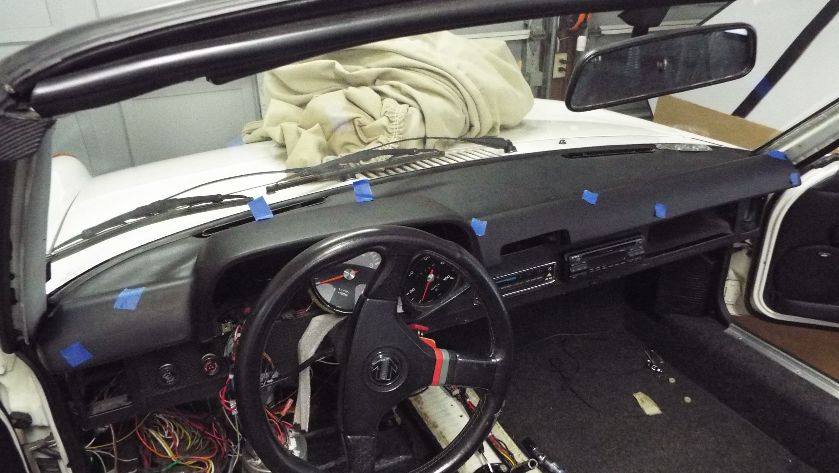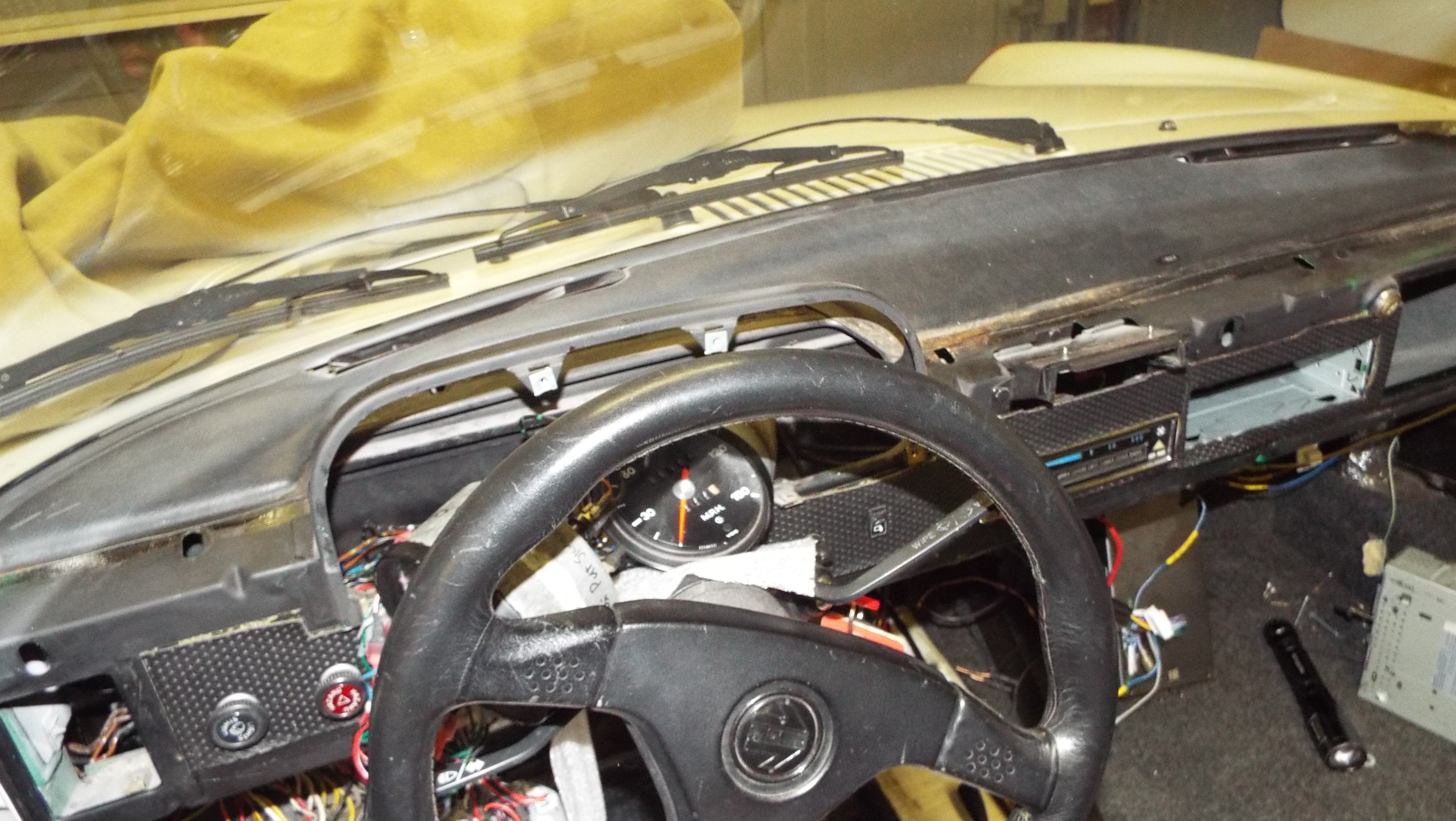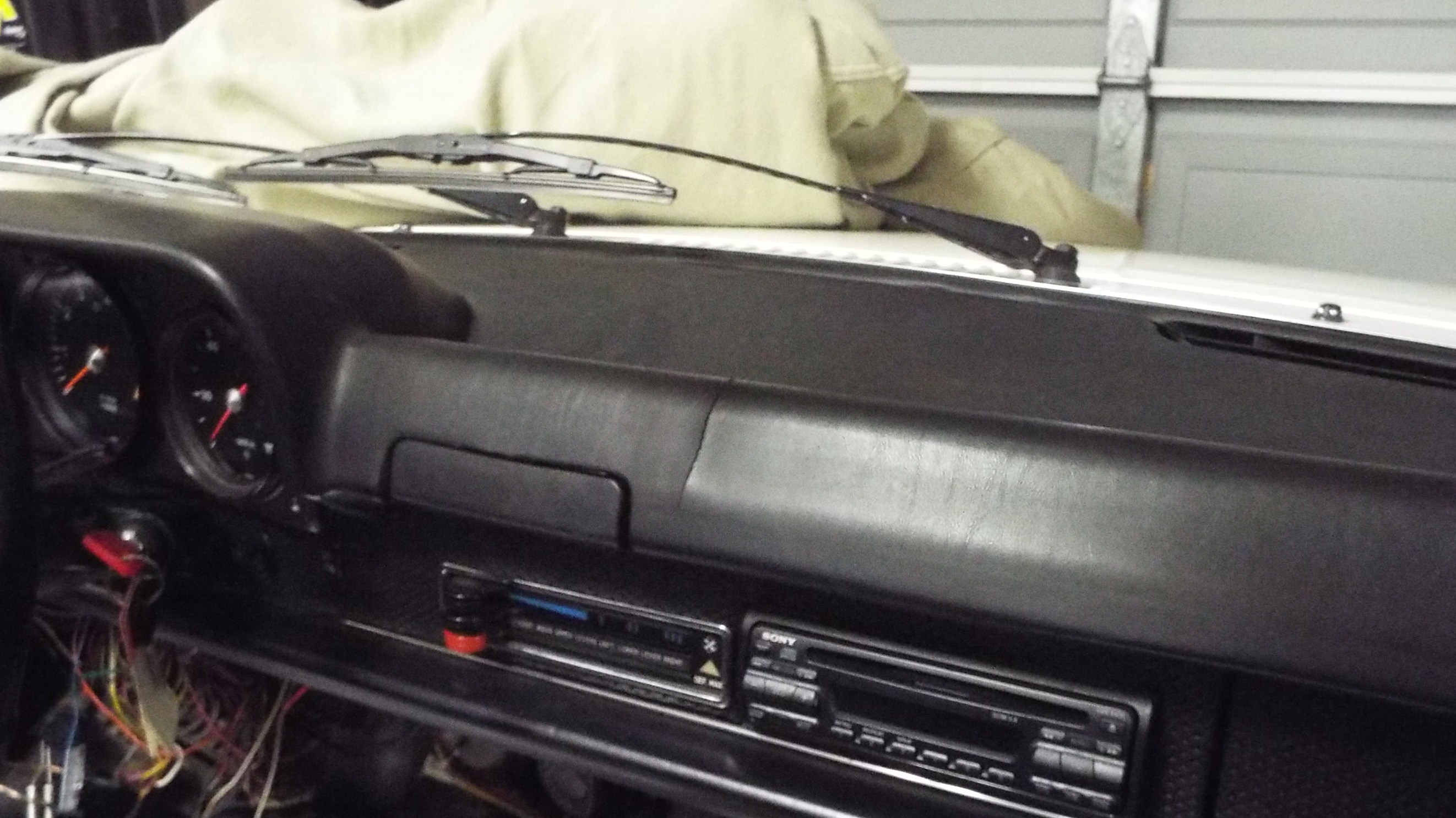 I would have to say it was not as bad as I expected but perhaps more involved than I thought it would be. There is a You Tube video out there where Brad Mayeur from 914 Ltd. installs a 914 Rubber dash. Watch it. (IMG:style_emoticons/default/type.gif) One of the key things out of the video is you really don’t have to remove your gages by unplugging all the wires. There IS another couple of good tips in there and that stubby wrench he uses. Get one. I happened to have a stubby set so that was a good thing. But you do not have to use the stubby as much as he does, I found you can access 6 of the 9 nuts with this set up or a combination of it, all ¼ inch drive with 13mm socket. This really is your best friend! Before, obviously a big crack but there were several smaller ones I had not noticed as much until removed. Go ahead and remove the visors it just makes removing the interior windshield side trim easier. The hardest nut I found to remove was the left one over the gage panel, just real tight space. Disassembly. You HAVE TO remove the radio. Further complicating my remeoval was the PPO had installed a amp under the radio. You DO NOT have to remove the glove box. I didn’t realize that until after I had removed the glove box door. (IMG:style_emoticons/default/headbang.gif) (IMG:style_emoticons/default/white914.jpg) |