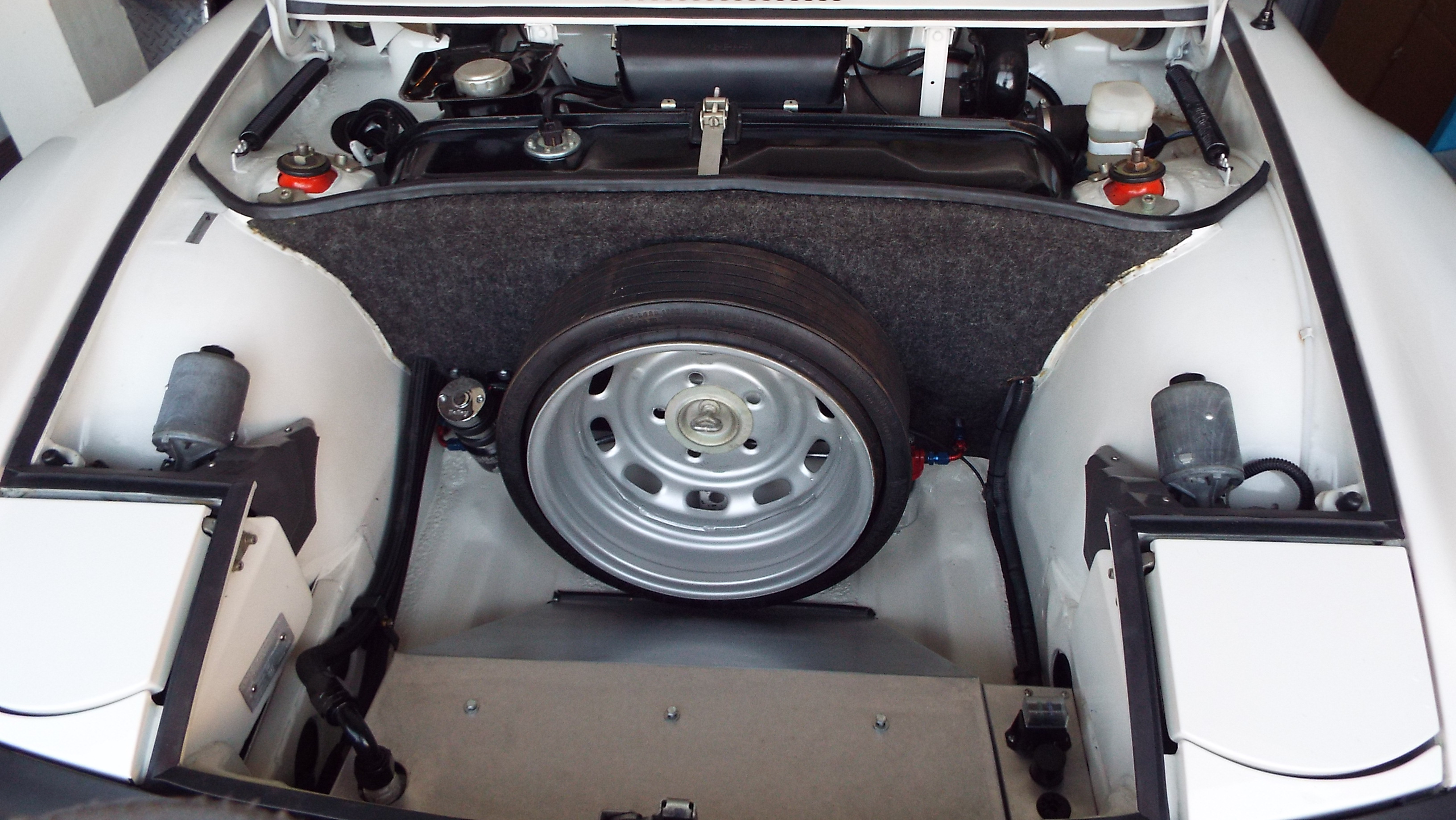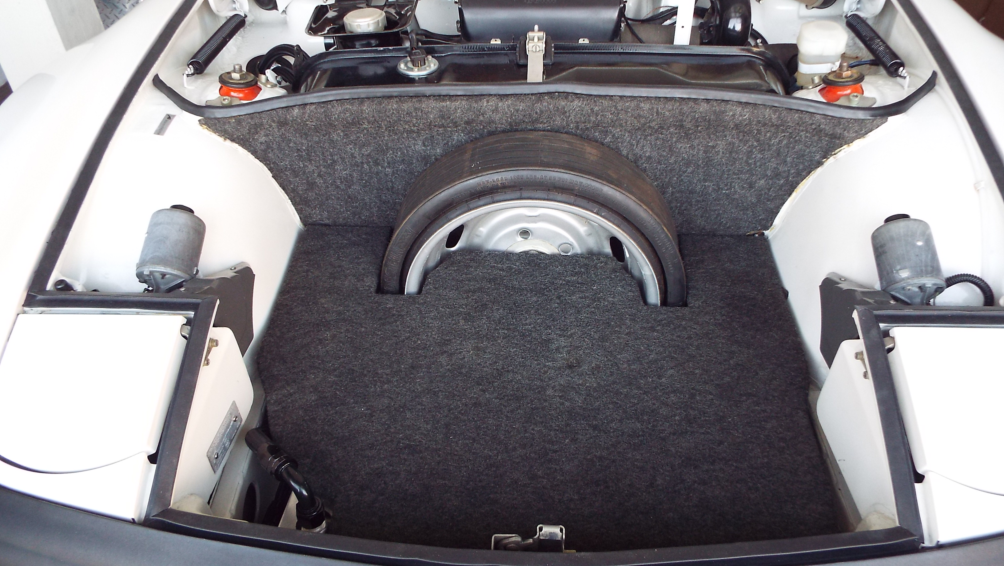 Well Defianty showed off his new frunk board (below) so that got me going on mine. Thanks! Something I had thought about several times but just hadn't got to yet. So now is a good time! (IMG:style_emoticons/default/smile.gif) Here is Defianty’s inspiration board in his Frunk. (IMG:style_emoticons/default/beerchug.gif) ![]() This is mine without: I was actually able to somewhat re-use the one that came with the car which I learned on disassembly was actually a home built thing anyway. I started by using that board (well actually it was a 1/8” piece of flimsy melamine) as a template by removing the carpeting and modifying (IMG:style_emoticons/default/sawzall-smiley.gif) (sorry I forgot a before pic). Then when I had it to where it would fit with my oil cooler shroud (completed eons ago). I cut up piece of ¼” cabinet grade panel for the final product. (IMG:style_emoticons/default/sawzall-smiley.gif) Began with a cutout for the spare tire bolt like Defianty has and then put it right back in as I realized the spare hold down bolt when turned sideways supplies additional support for the board inside the rim. Quarter inch is fairly sturdy so the jury is still out on whether to anchor it down as it seems to fit pretty well and I only see a car cover ever going there. (IMG:style_emoticons/default/laugh.gif) 3M 90 spray glue and staples and I am a happy camper!. On to the next thing! (IMG:style_emoticons/default/biggrin.gif) (IMG:style_emoticons/default/white914.jpg) |