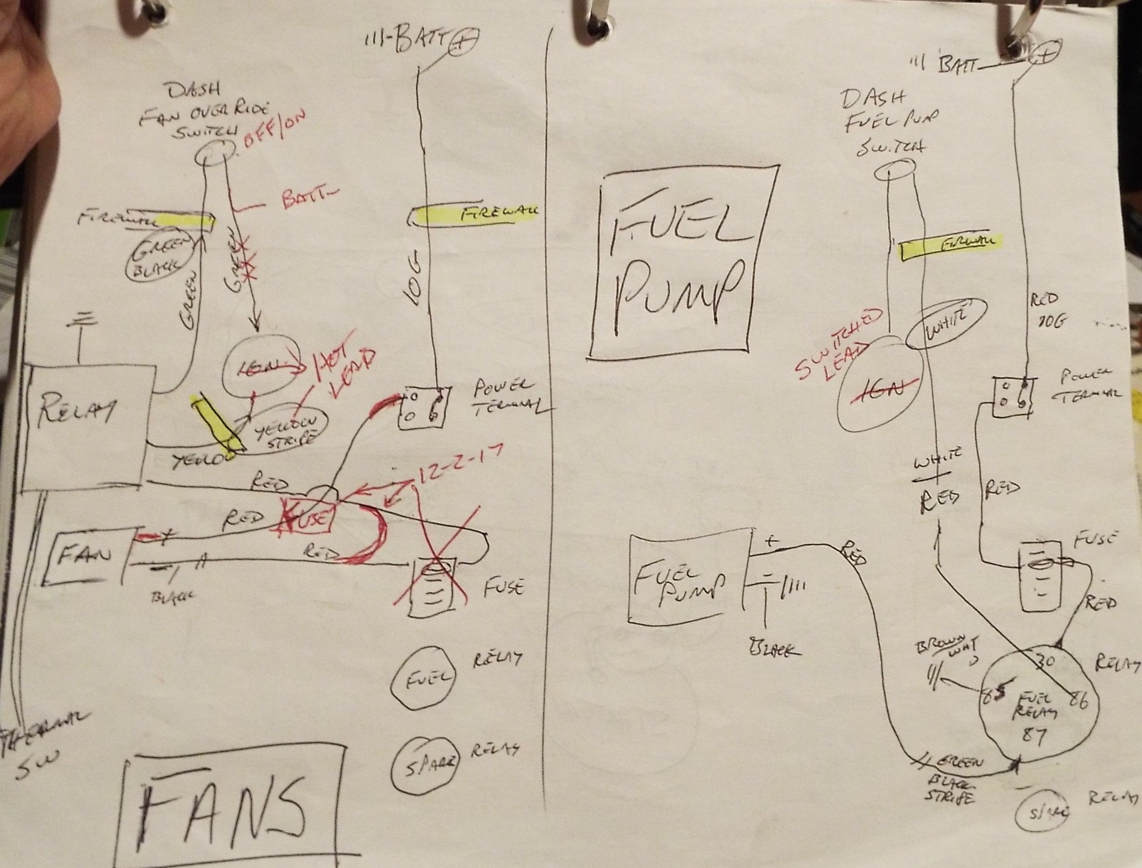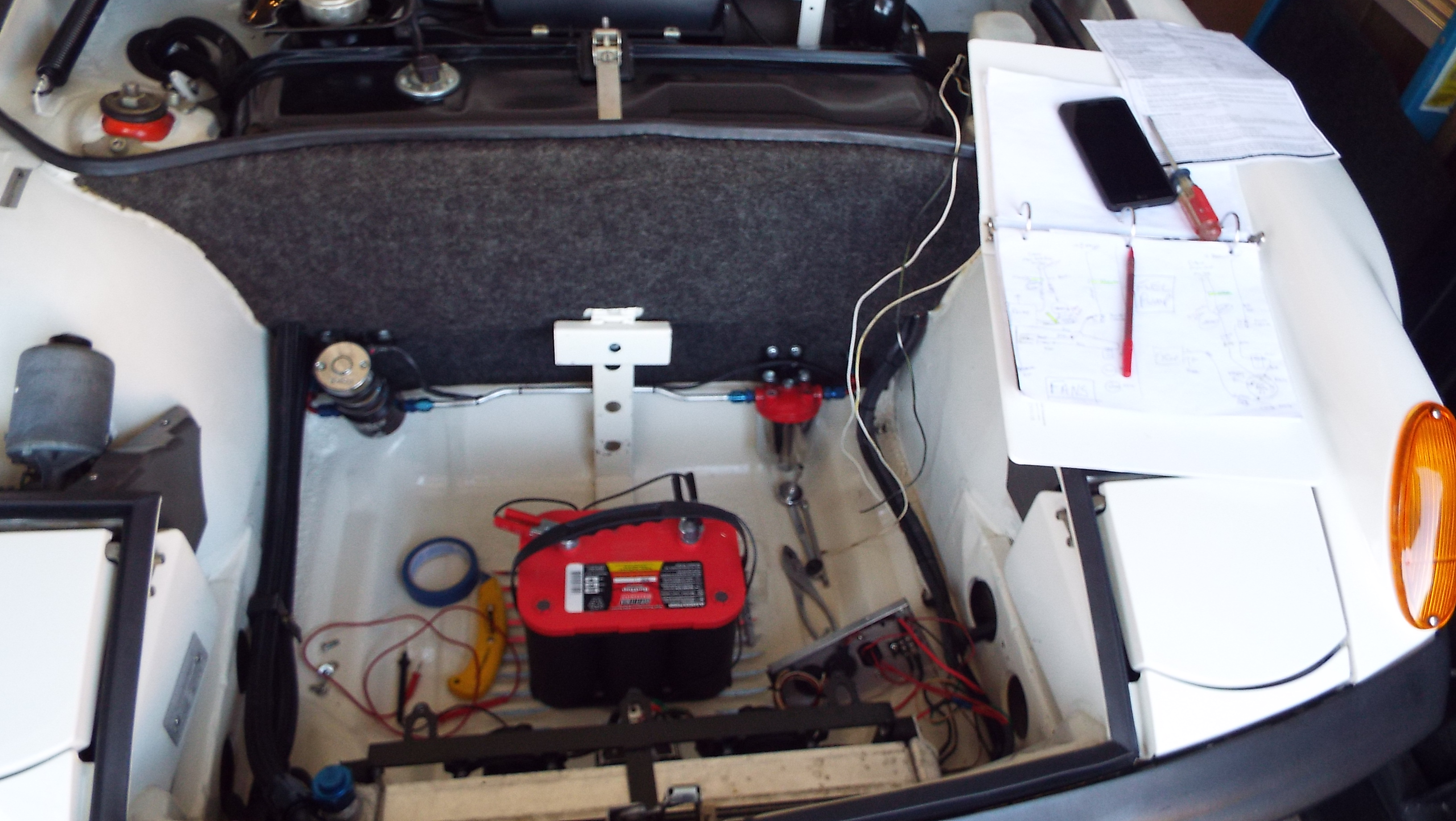 And I sure had good intentions in my last post but got zero done on those fronts. Friday was a good day because my buddy Toolguy came by to help me sort out some electrical “challenges”. Thanks (IMG:style_emoticons/default/beerchug.gif) Back in Dec 2015 when I stopped working on the car some of the last things I did was wiring the relays and fuses on the Holly electric fuel pump and oil cooler fans in the frunk. Short story is I got all done wiring and neither one worked. Very frustrating! (IMG:style_emoticons/default/confused24.gif) Fuel pump and Filter ![]() Fuse and relay sub panel We trouble shot the crap out of both circuits to find out 4 things: First is the good news that I basically had the fuel pump and fans wired correctly. Second, it turns out I wasn’t powering the relay correctly on the fuel pump. Third we ended up calling the fan manufacturer to understand how the integral relay on the fans actually worked and proper powering for over ride switch. Forth, I really did not have a good plan on the switches and connections under the dash. So, with proper connections the fans work now too. But the fan fuse could have been better placed in the circuit and I took care of that this morning. We looked at some other minor things and fixed a few and it was a good non-stop 4 hours work on stuff I could not figure out. I would love to report I can now read a wiring schematic better but I can’t. (IMG:style_emoticons/default/lol-2.gif) Still more wiring to do! (IMG:style_emoticons/default/wacko.gif) (IMG:style_emoticons/default/white914.jpg) |