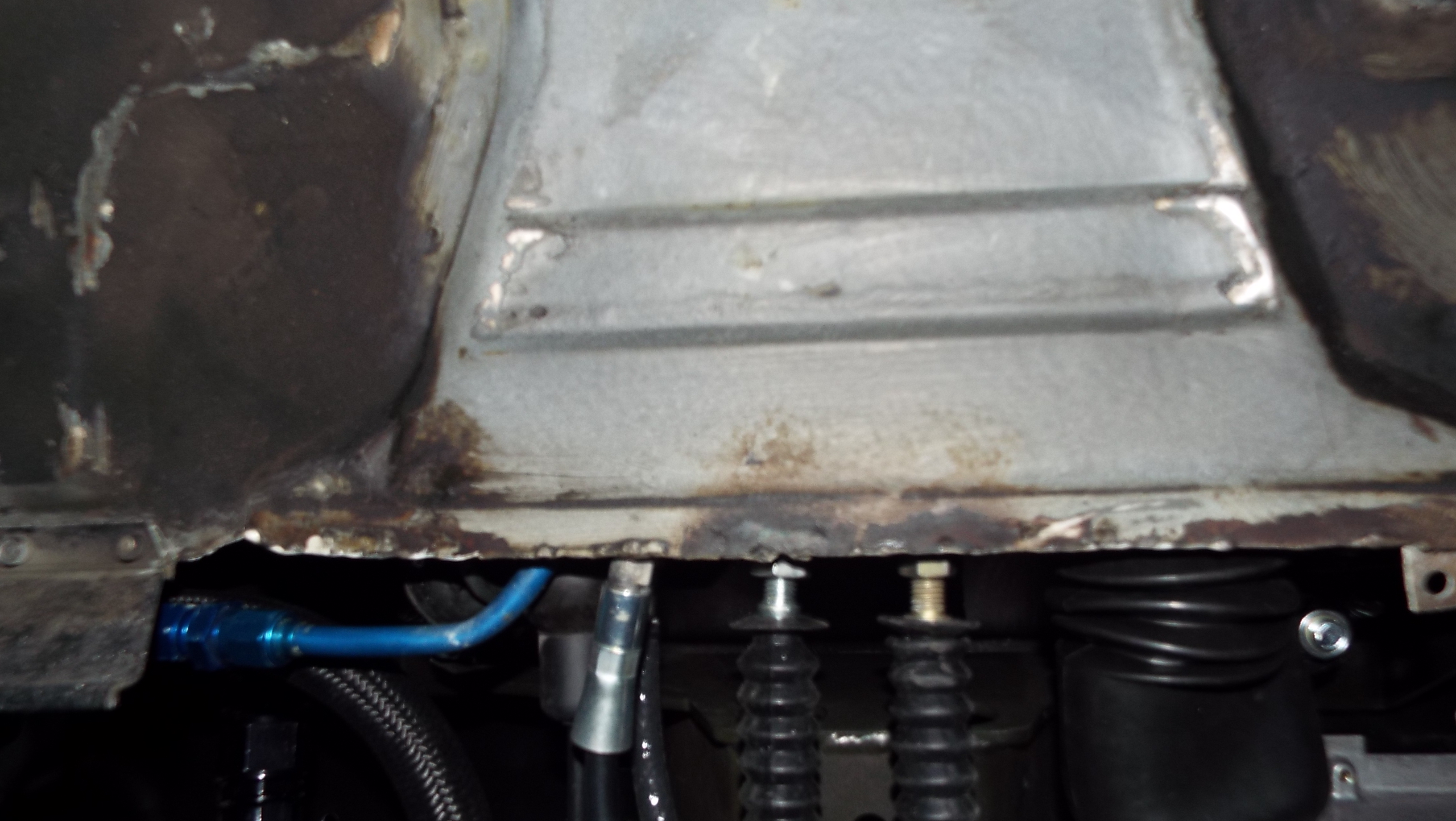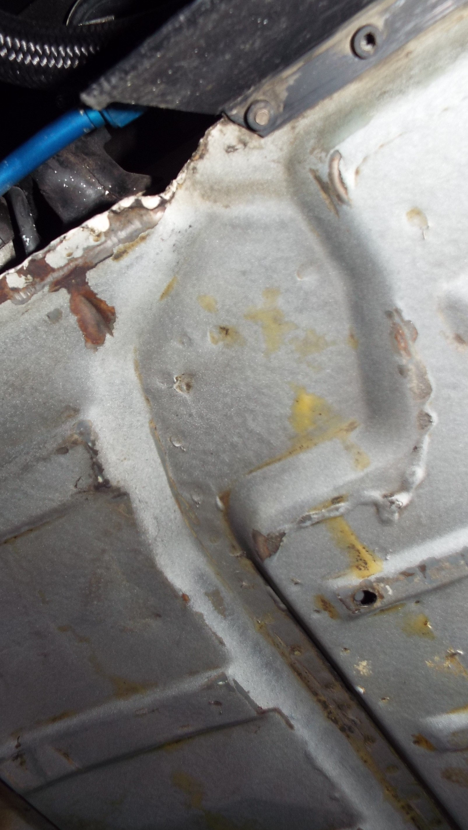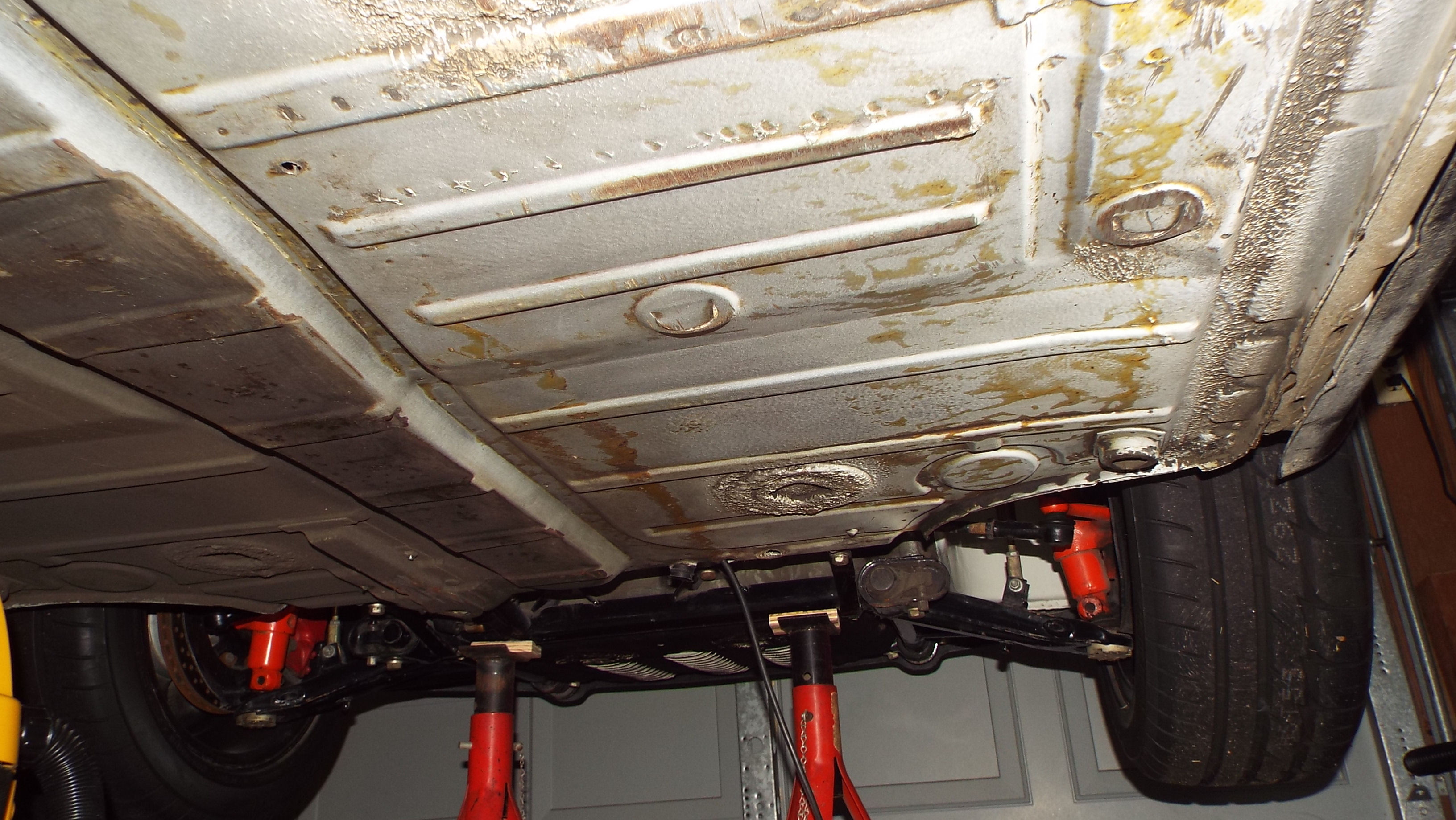 Went out to check to see if I needed to get in on the group buy for Mikey’s “vortex generators” and finally started address the underside of the floor pan. Been dreading it because I thought I was going to be scraping like Defianty with his “special tool” (IMG:style_emoticons/default/sunglasses.gif). I hope he knows I'm teasing. (IMG:style_emoticons/default/beerchug.gif) To my surprise when I rubbed on it pretty good with some Prep Sol it seemed to just cut right through all the, whatever it is, road grime/ crud/ maybe light under coating? I couldn’t say for sure. But it looked like nice painted surface under all that crud. (IMG:style_emoticons/default/mueba.gif) Well I couldn't stop there, and yes it took some rubbing and several applications, but this sure looks to be the original painted bottom to me. It looks like it is a light grey paint and I came to realize that the yellow stuff in the pictures is the factory cosmoline. The cosmoline will come off completely if desired it is like a wax. I mean I knew this car had very little rust in its history and I know the car was repainted 20 some years ago, but this floor bottom is crazy cool. Sure, it has a few extra holes that shouldn’t be there and of course there are some dents and scrapes to fix. I bet when Moparrob sees this he is going to want it back even more. (IMG:style_emoticons/default/biggrin.gif) Oh, and my “vortex generators” look to be OK, maybe I have ADD? (IMG:style_emoticons/default/idea.gif) Maybe it was the fumes? (IMG:style_emoticons/default/huh.gif) That's why I went out in the garage? Made it all the way to the front on right side! Hope to finish tomorrow! (IMG:style_emoticons/default/white914.jpg) |