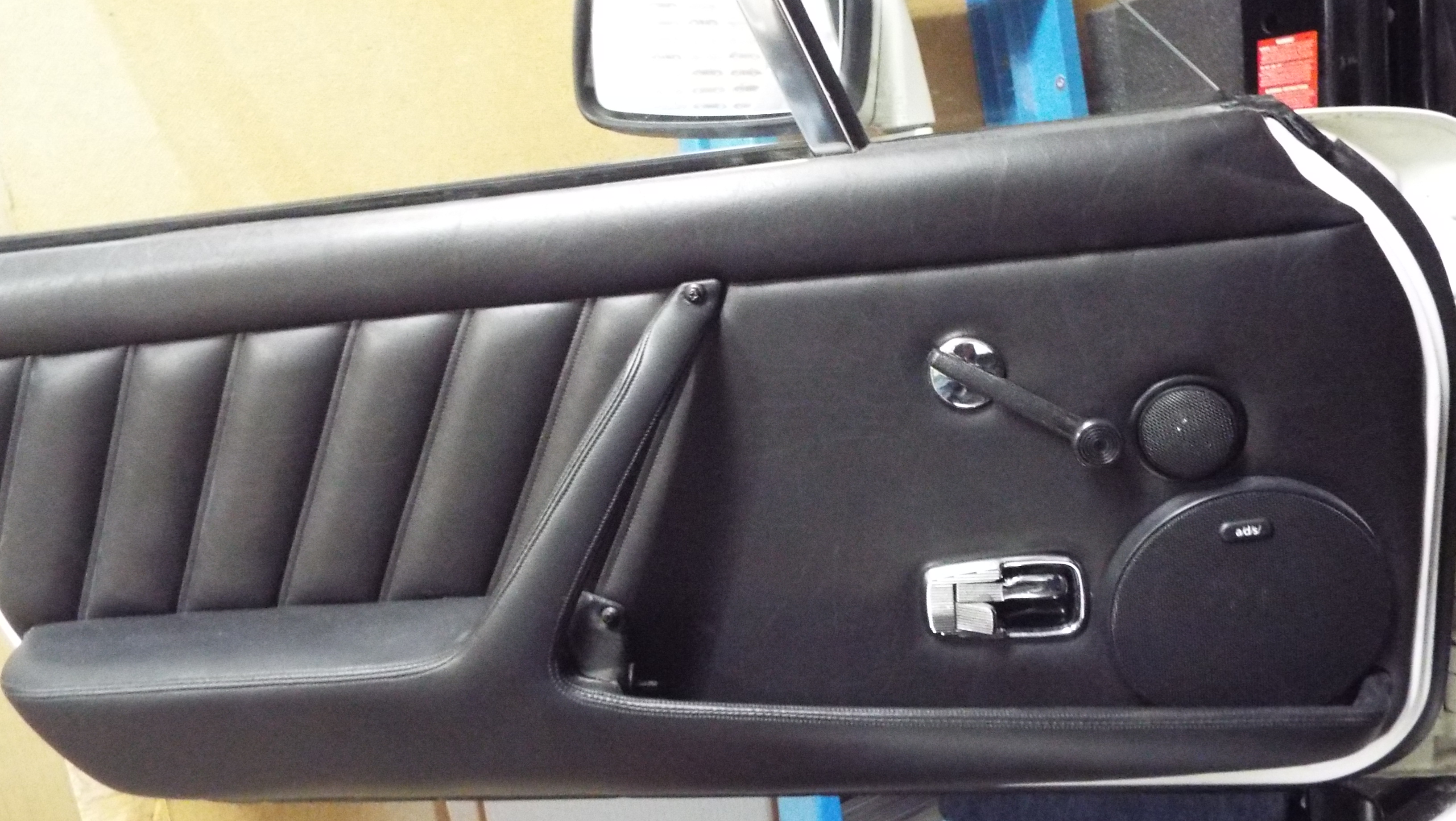l.a.brooks posted this thread about door panels this morning http://www.914world.com/bbs2/index.php?showtopic=321152 And I happened to take pictures of my door panels last night because I just received the matching early chrome window crank and door pull base from Garold yesterday. I had enough for one door and installed them last night. Anyway thought I would post the door panel thread here because there seemed to be some interest and information to share. Check it out. (IMG:style_emoticons/default/type.gif) I love these door panels and that both sides are completely the same. My panels came with my project and I didn't know where they came from, so I learned from the thread too. (IMG:style_emoticons/default/white914.jpg) My panel with early chrome window crank and door handle base |