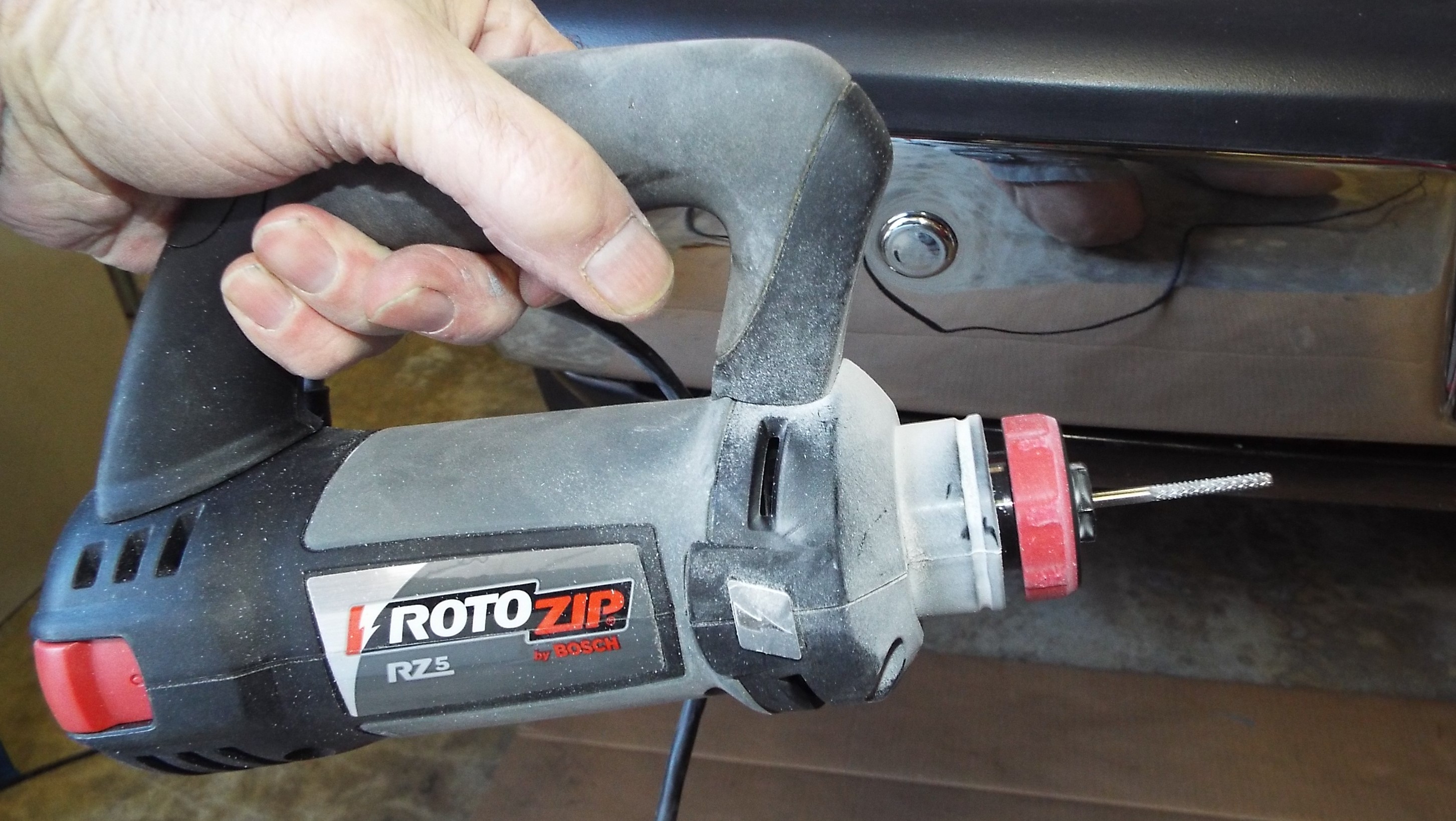 The other project I’ve been working on while waiting parts is fitting Marty Schneider’s cool fiberglass GT rear valance. Nice little piece I was going to do later but getting past the gas tank fuel line issues has provided an opportunity. Figured a roto Zip might work and it does a nice job. (IMG:style_emoticons/default/sawzall-smiley.gif)