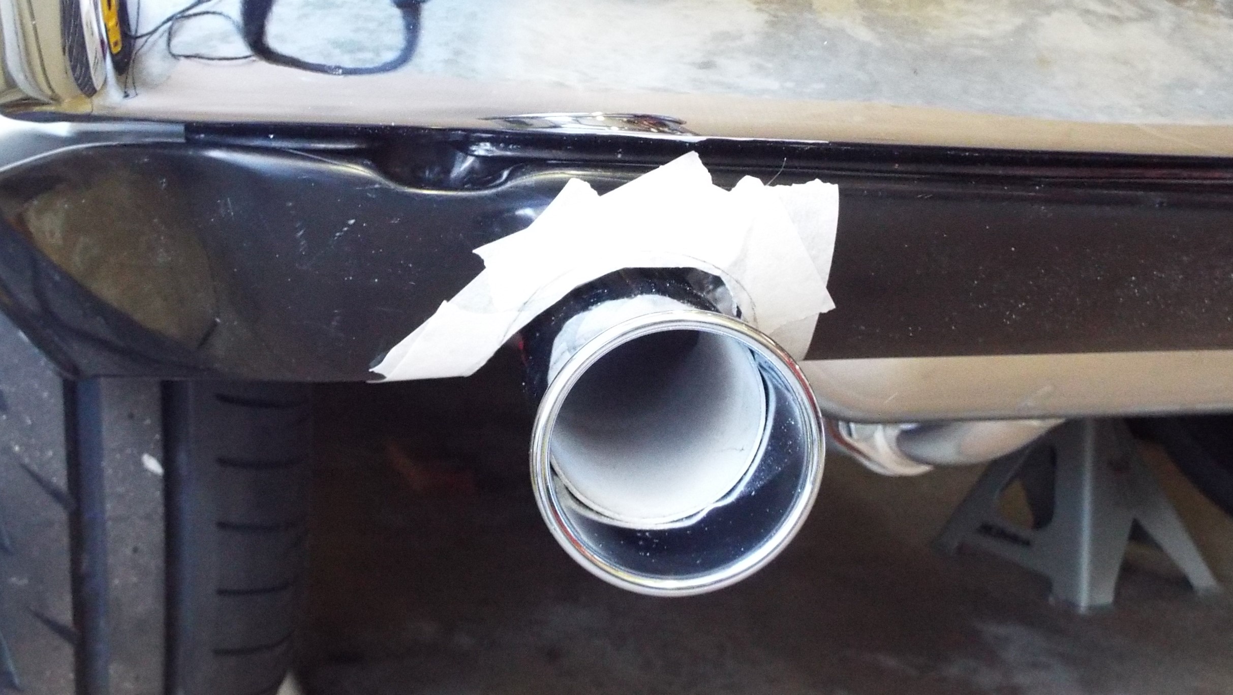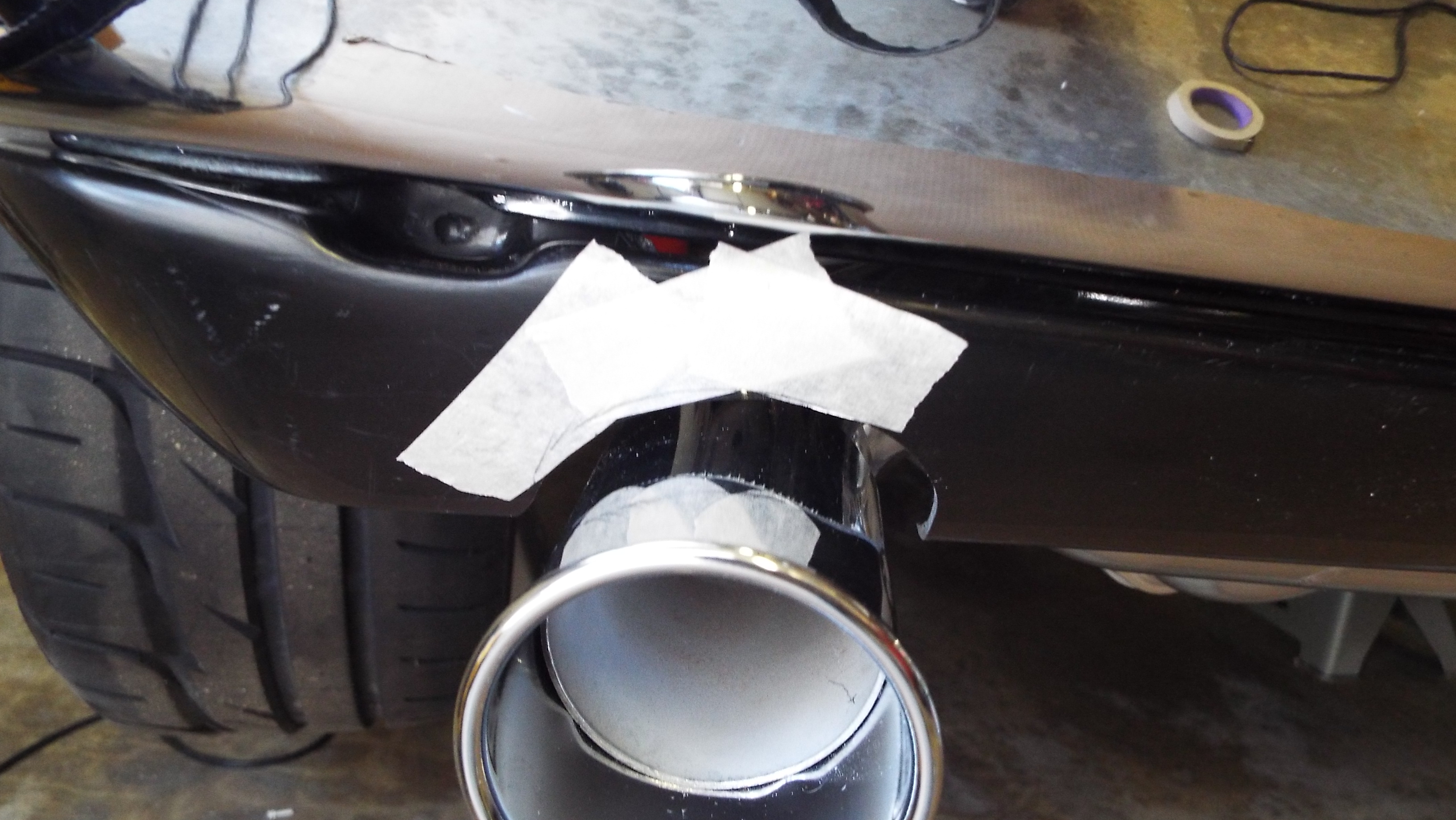 Thought of trying to make a template but it just seemed to be such a pain. Took my time and by eye nibbled at it and did several trial fits that got it on close enough to then determine a proper clearance to the tail pipe. (IMG:style_emoticons/default/white914.jpg) Pencil line generated by tracing a spacer to the exhaust. Rough cutting got it close enough! Great fit! |