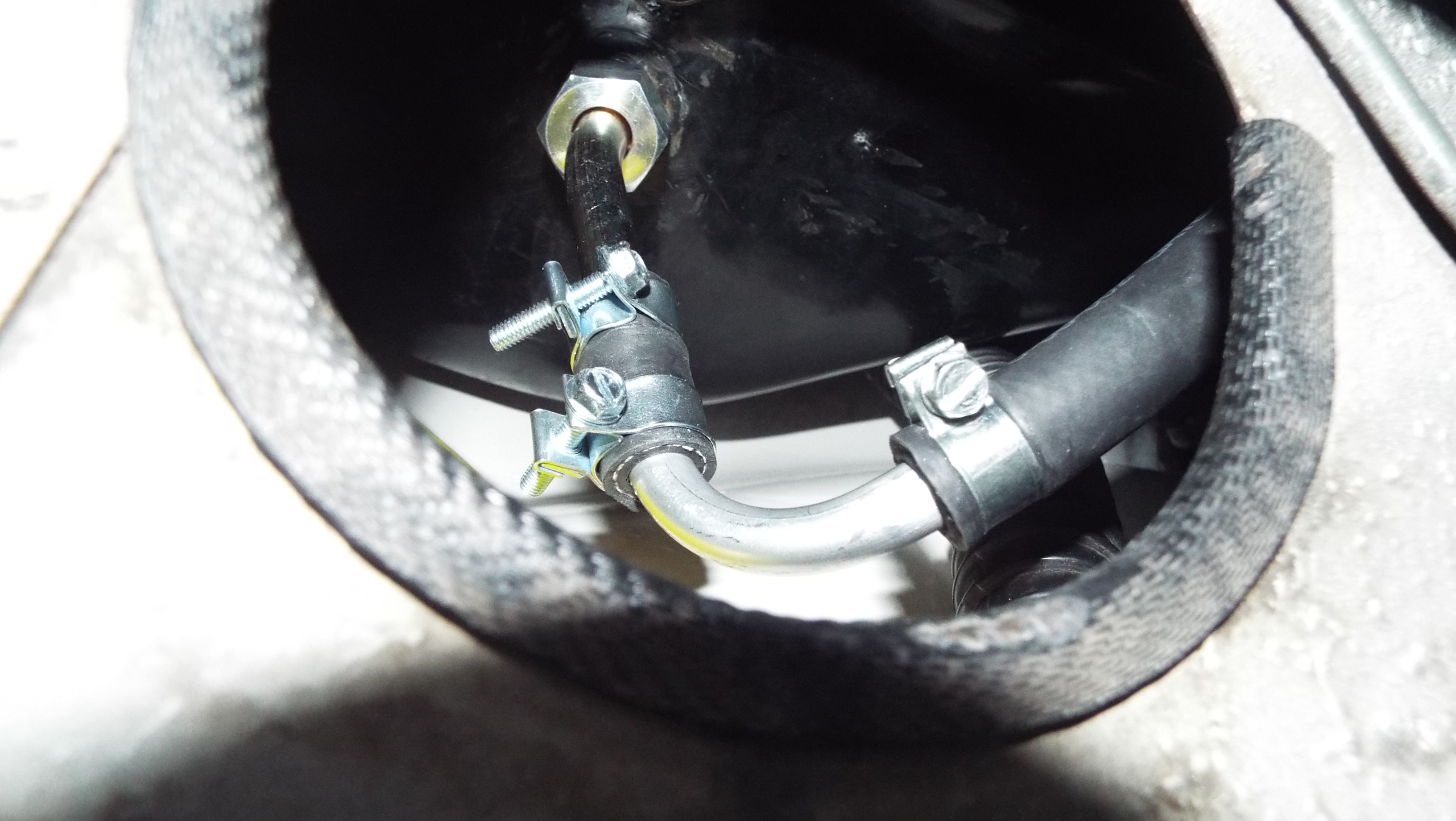 Now to install it is another story. I did not have a stock fuel line set up coming out of the tank. There was no screen and I wanted one. There was just been an AN adapter and an AN elbow going to a hose but now the stock nipple tube coming out of the tank is more angled down making my hose too short. Either remove the gas tank again to add longer hose or get creative. I chose the latter which involved making and adding a different elbow on the end of the stock nipple from Bruce. Lots of fun up in that hole. But thinking now, it turned out better than removing the tank anyway, and the clamps are very accessible. Finally fuel line done back to the engine. (IMG:style_emoticons/default/white914.jpg) |