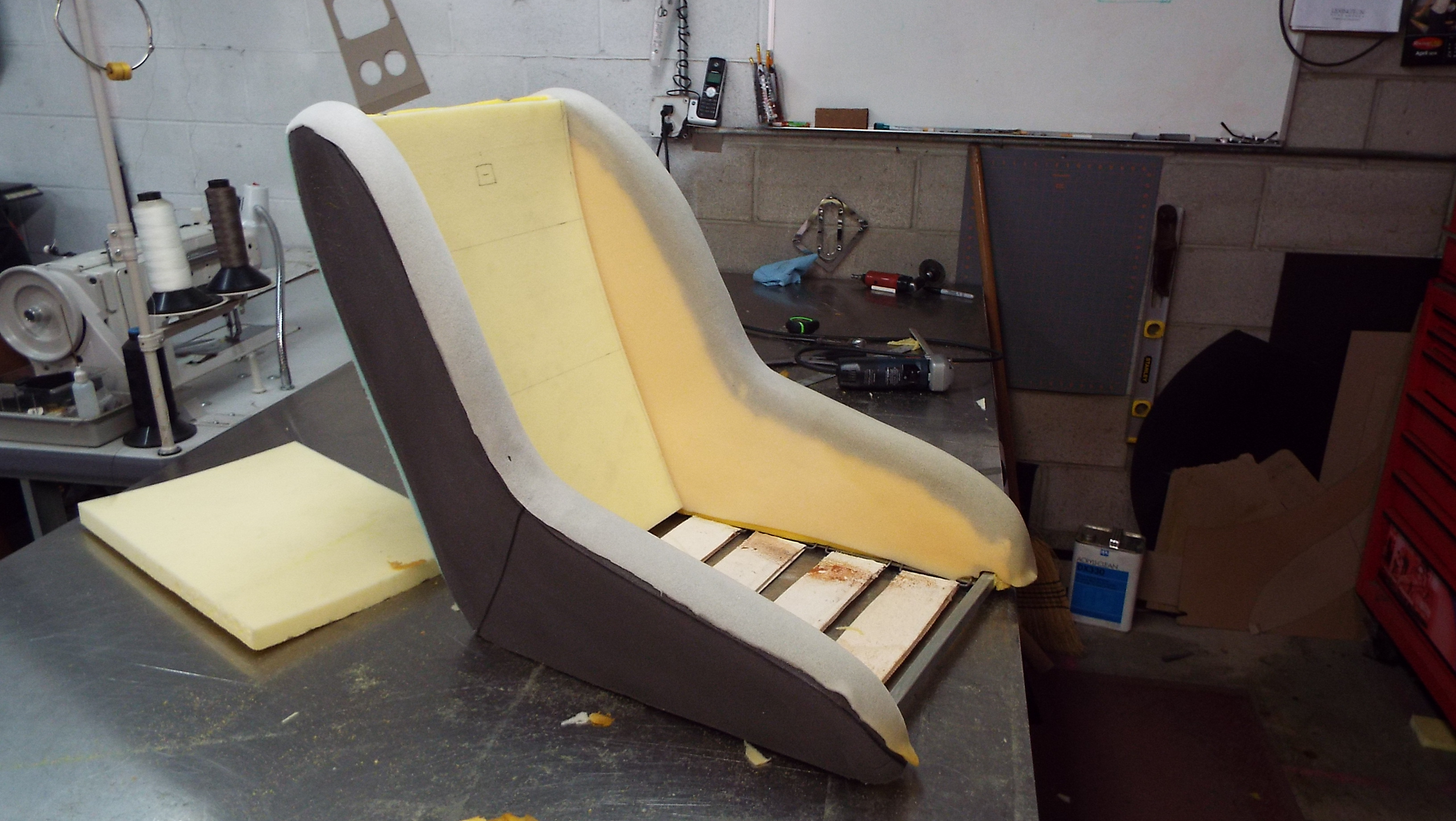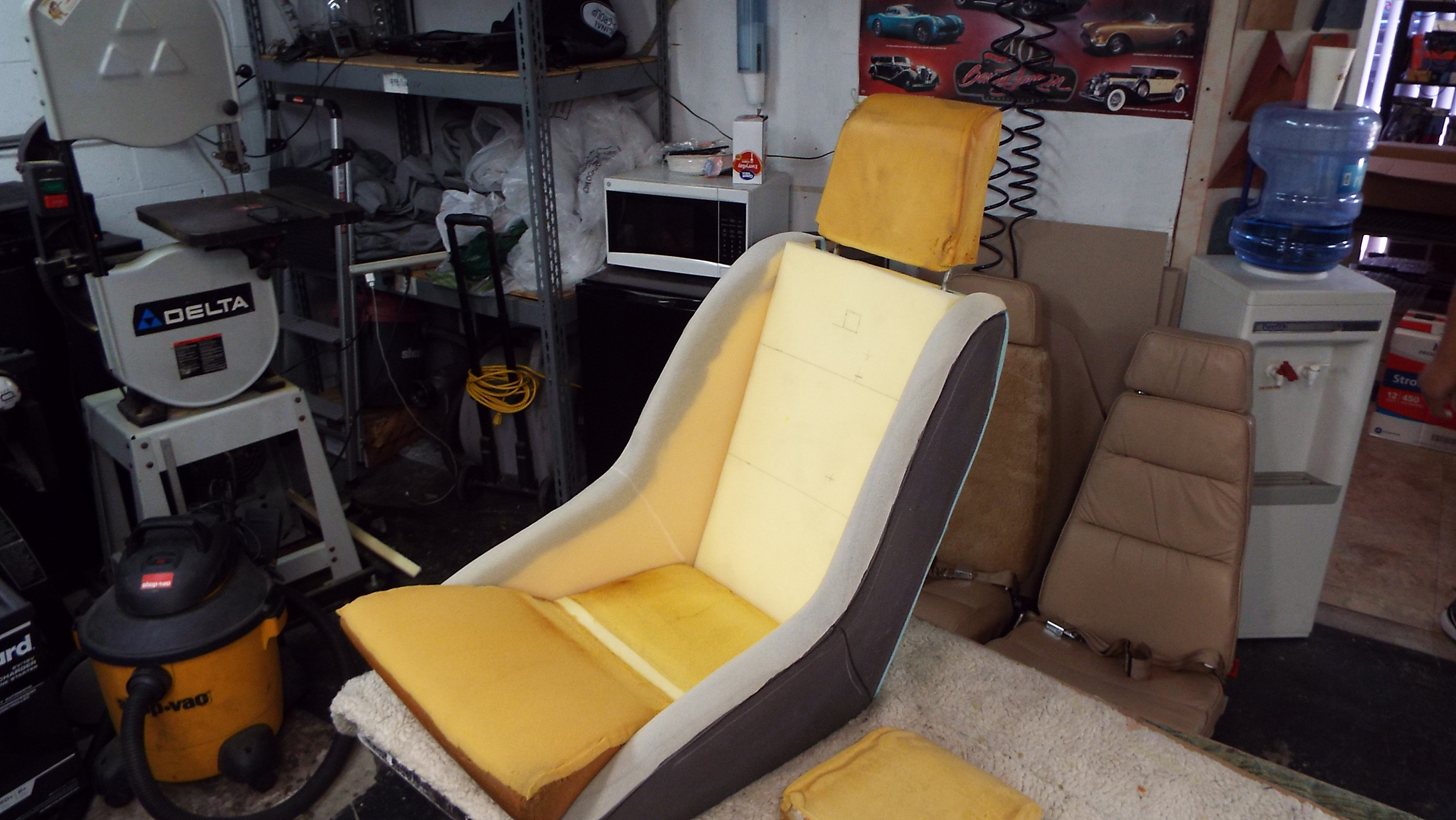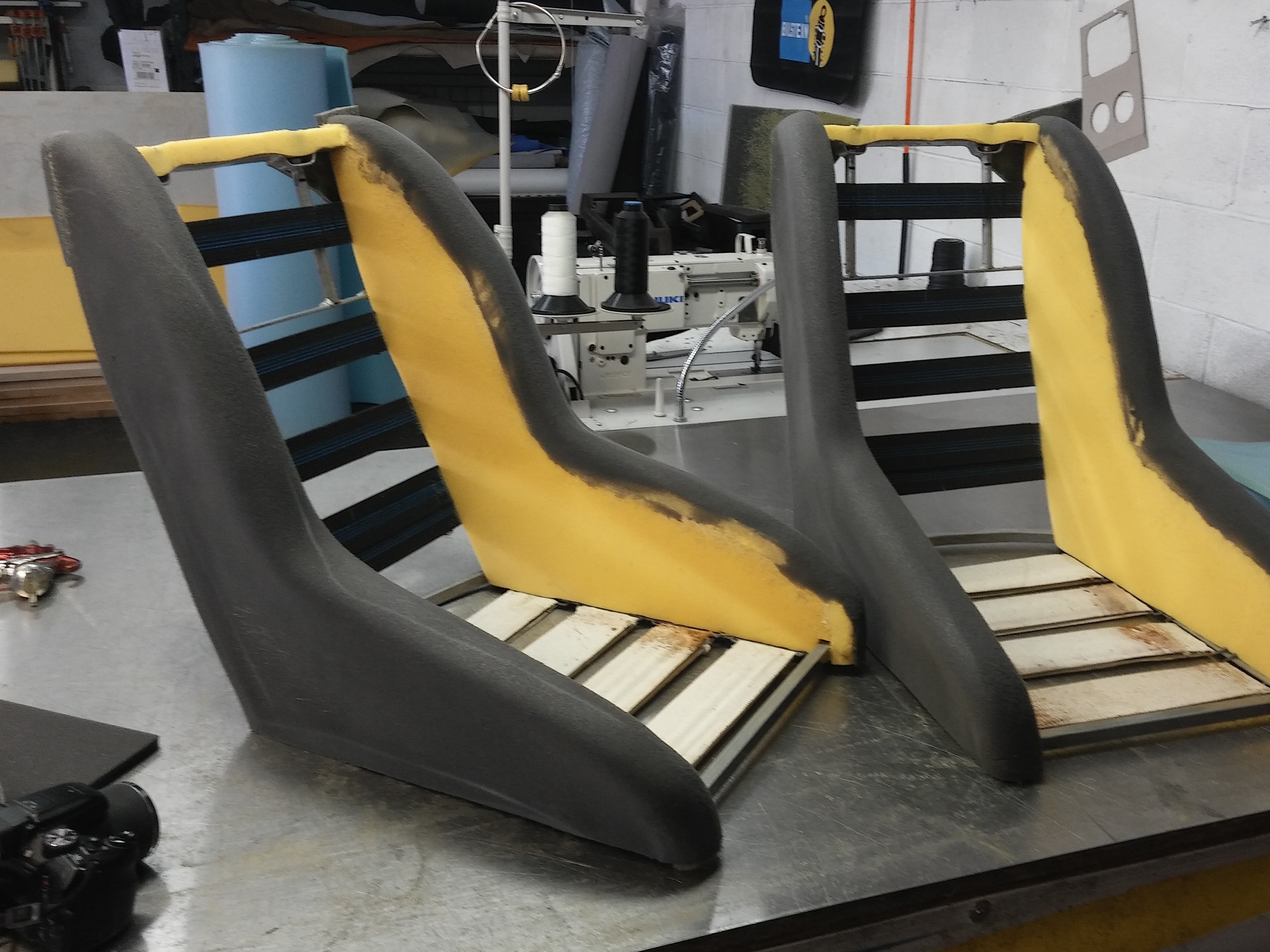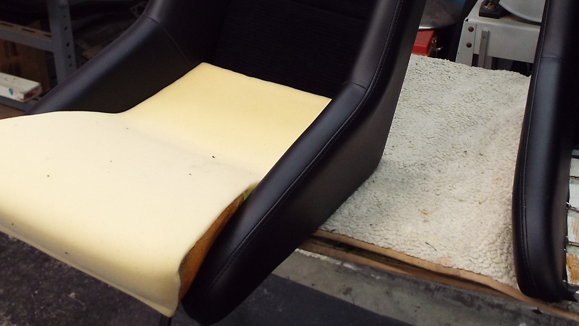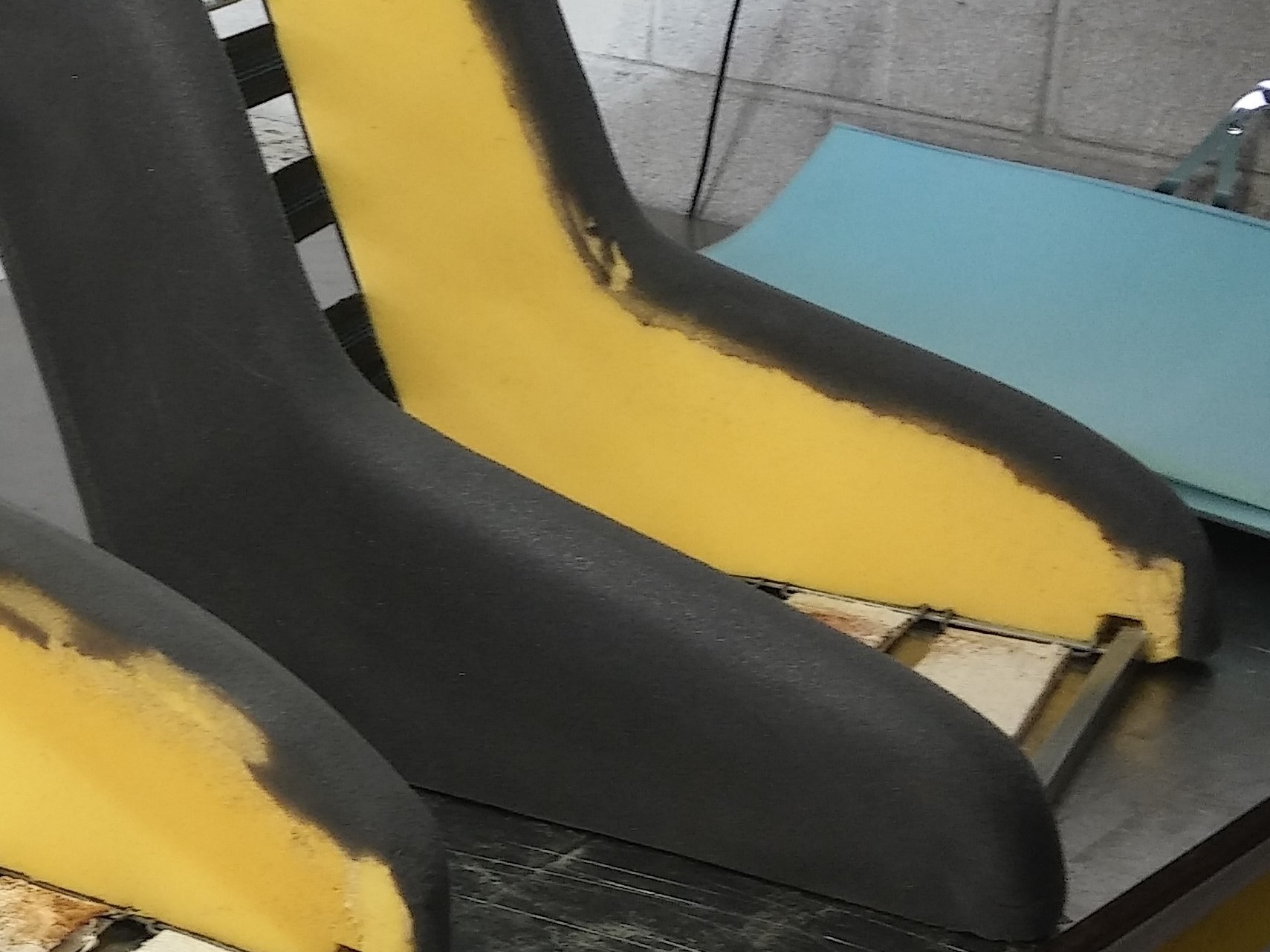 Hey Lucky, you should do yourself a favor and have your upholsterer order up some "Pirelli Webbing" before you go any further. It's a little more expensive but is worth it. It's the stuff they used to used on vintage car seats. My Volvo 1800E needed webbing replaced and instead of buying the original Pirelli material, I bought the cheaper Dunlop (looks like what you are using)... it hasn't help up well at all. I'm going to have to re-do it. The Pirelli is more of an off-white/cream colored rubber looking material, rather than the stretchy Dunlop. I can sort of relate to what you are doing... I bought E30 BMW sport seats off craigslist (because of their high side bolsters) and combined them with the relatively flat original recaros that were in my 1800E. So I had to weld frame pieces together and manipulate foam, add webbing, custom upholster. But now I have original looking seats (with original side brackets/hinges) but with nice firm side bolsters. It was a 'B' to do but worth the effort. Just trying to save you some frustration up the road with the webbing. Great job on everything, btw !! Dougster Arriving at the shop at 9:30 this morning, the ship had sailed on the webbing, and it turns out he had the Pirelli webbing there for me to see and compare. I had to agree with Oscar the upholsterer that the webbing installed was more correct, with all due respect to your recommendation. He has done upholstery his entire life and I am going defer to his guidance. Again, I always appreciate help and comment and thank you. (IMG:style_emoticons/default/beerchug.gif) This is what the seats looked like this morning. Backs fully covered in foam. So cool looking. (IMG:style_emoticons/default/smile.gif) And, he had applied a ¼” layer of foam over the inner sides and top rails over the shaved sculpted foam earlier installed. Plus, he had created the back foam pieces. (IMG:style_emoticons/default/driving.gif) (IMG:style_emoticons/default/white914.jpg) |
