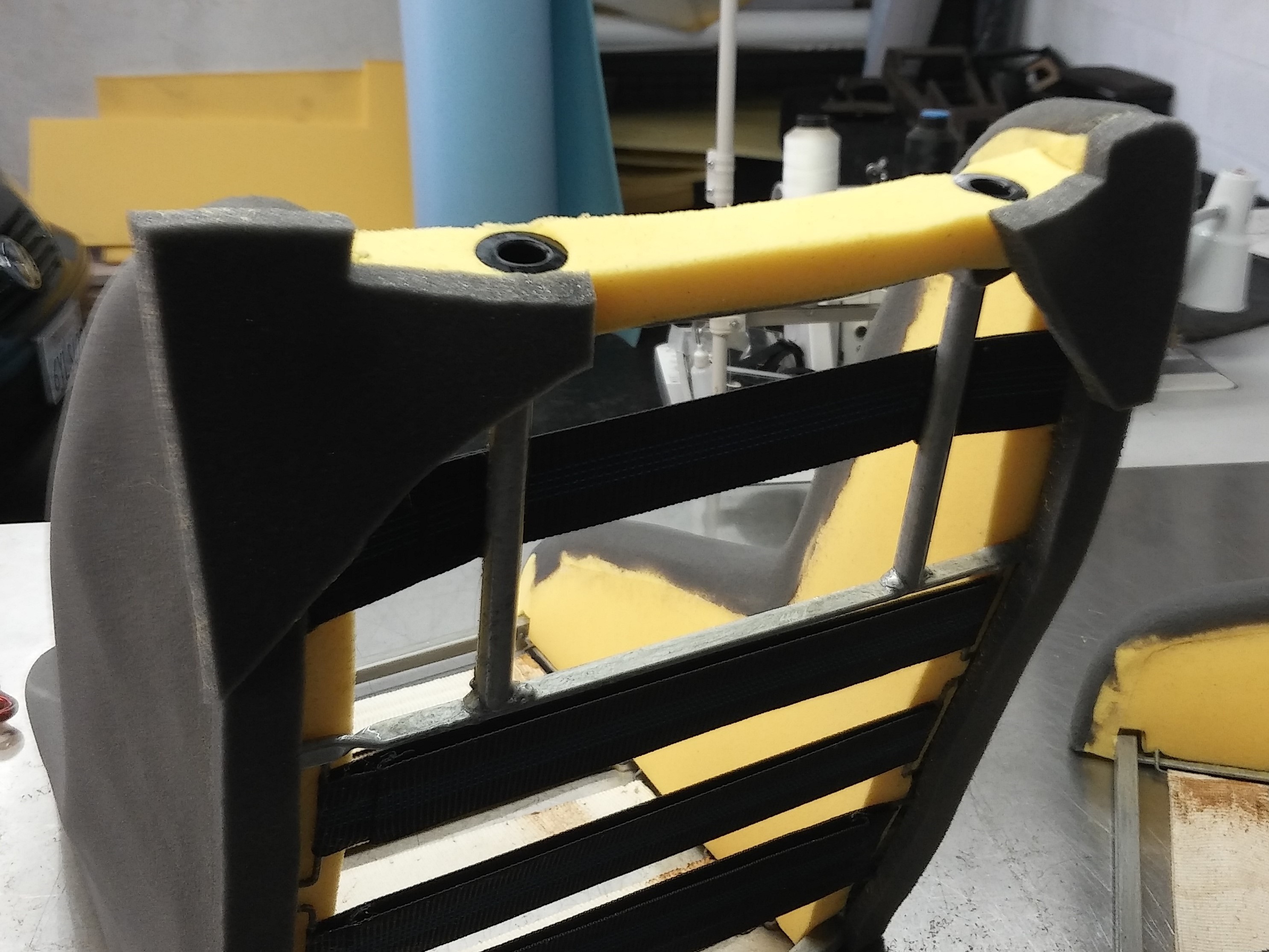 And the backs of the frames had a layer of foam to cover the webbing hooks, along with the foam along the top with the plastic bases of the head rest grommets which determine the height of that foam. He seems to be a master of foam densities and uses. (IMG:style_emoticons/default/driving.gif) (IMG:style_emoticons/default/white914.jpg) |