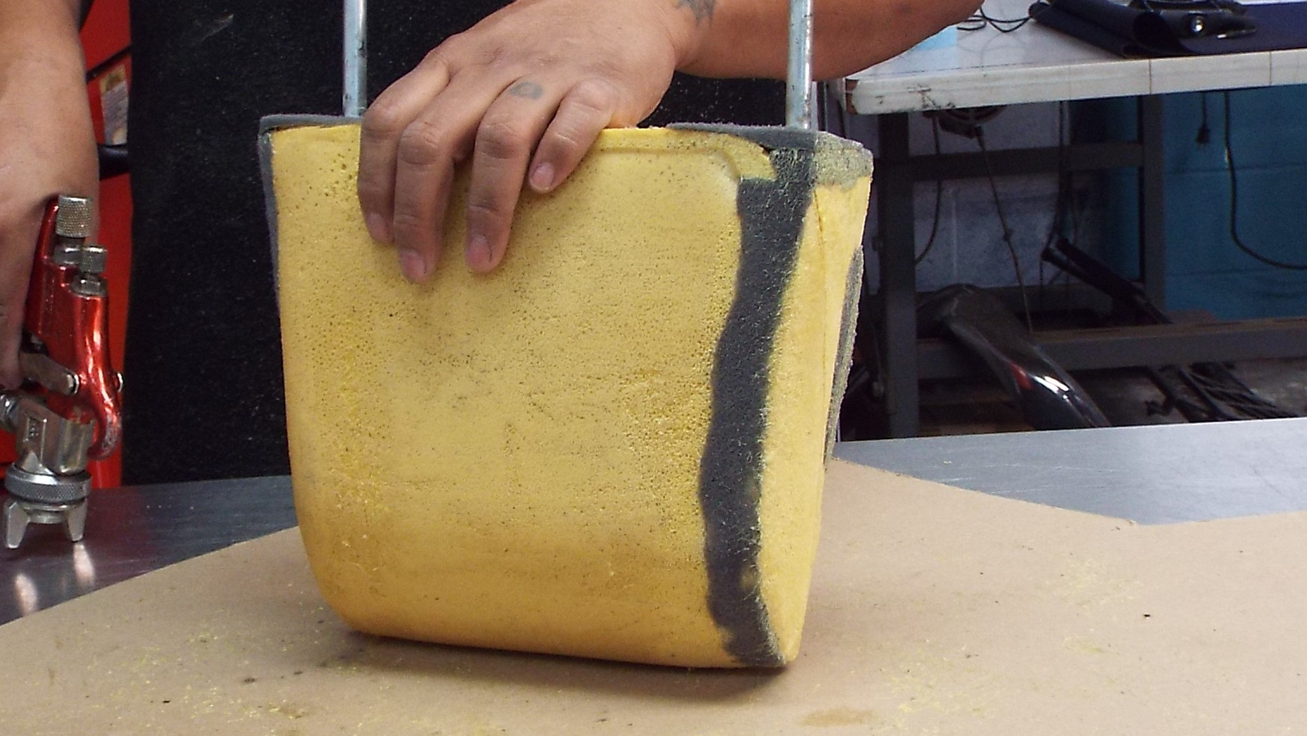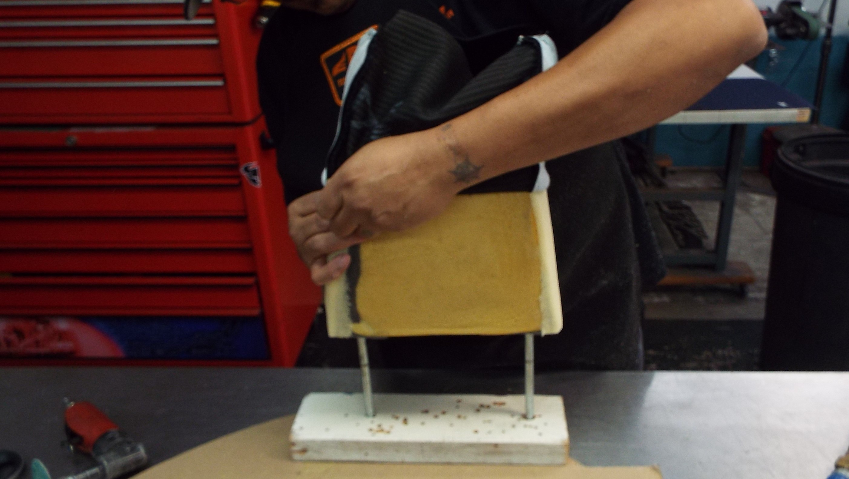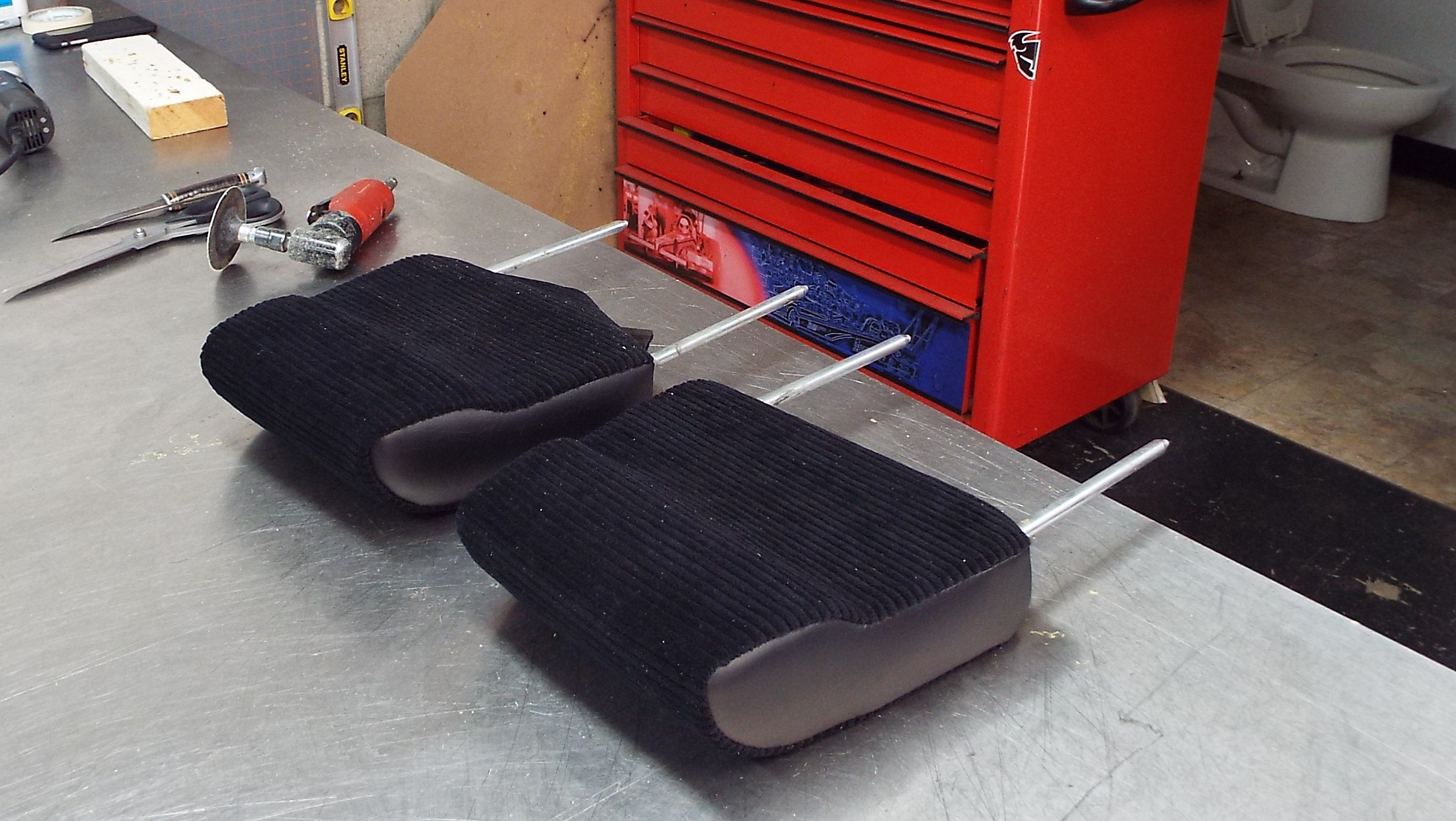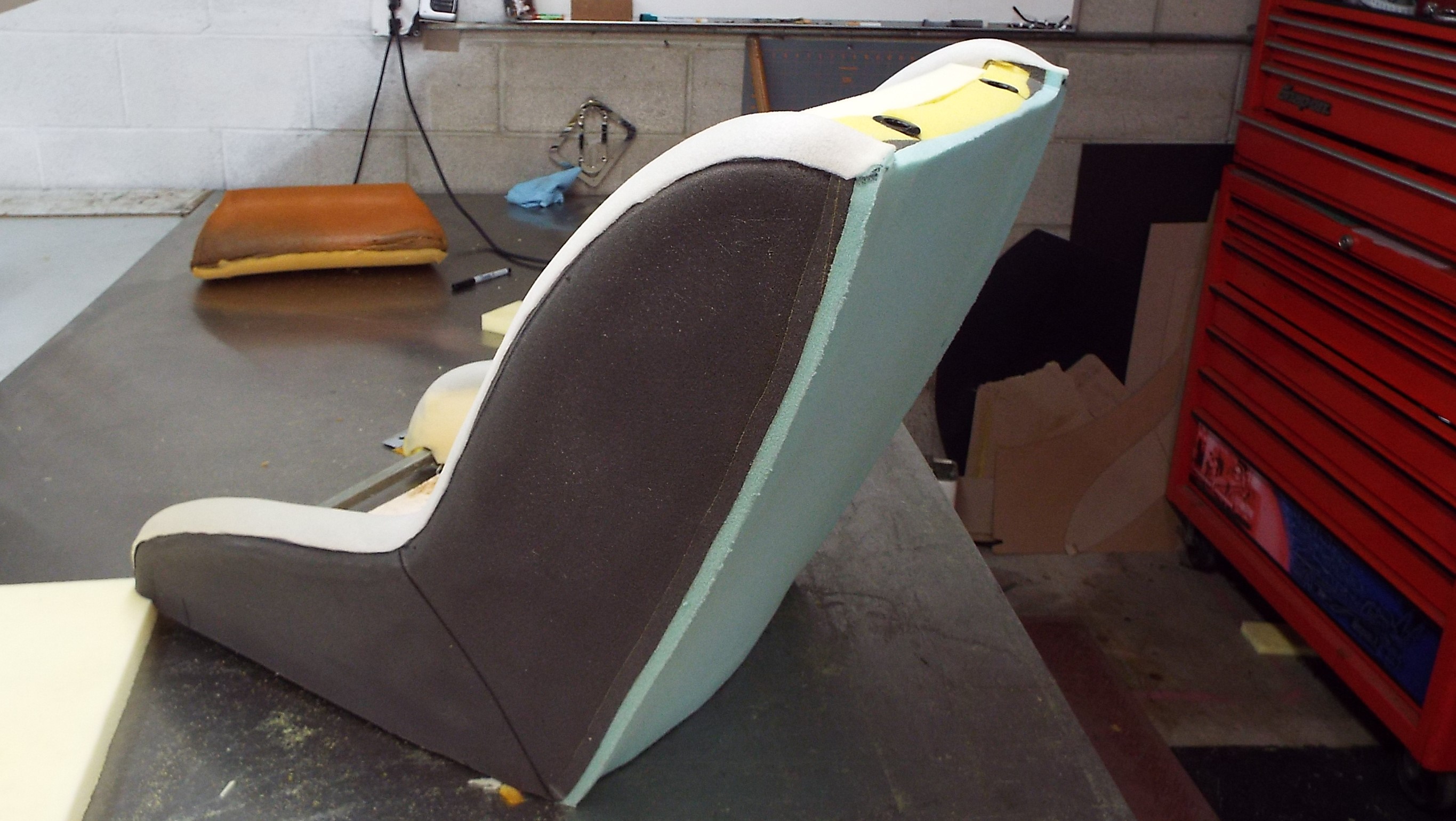 Well this is what the seats looked like last Friday. I didn’t post these pictures because they were on my cell phone and I got lazy. My camera had died and it’s a different process to get the pics off the phone and work with them. Any way he did some magic shaping of the foam and he added additional foam to the outsides which are now very nice and smooth and firm.
