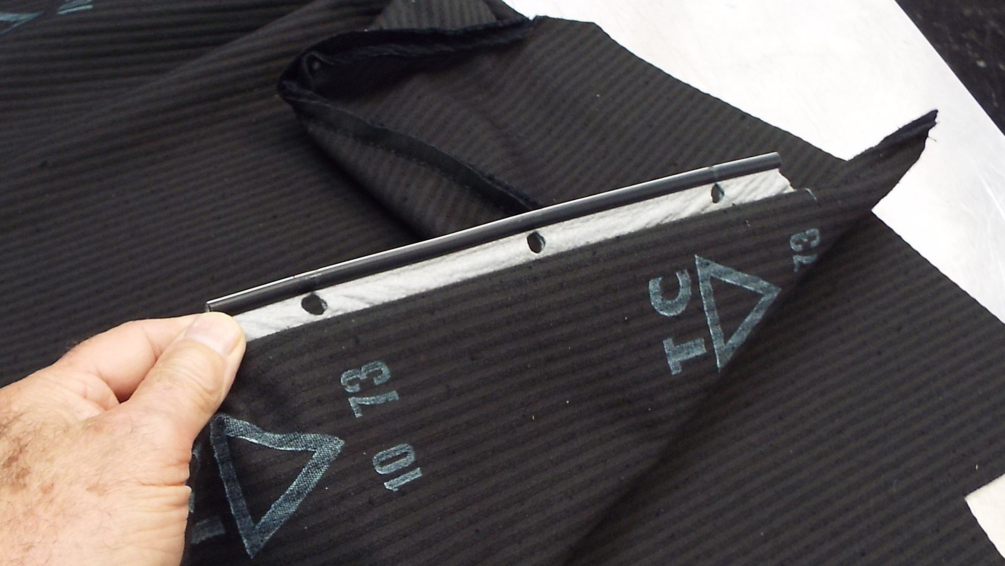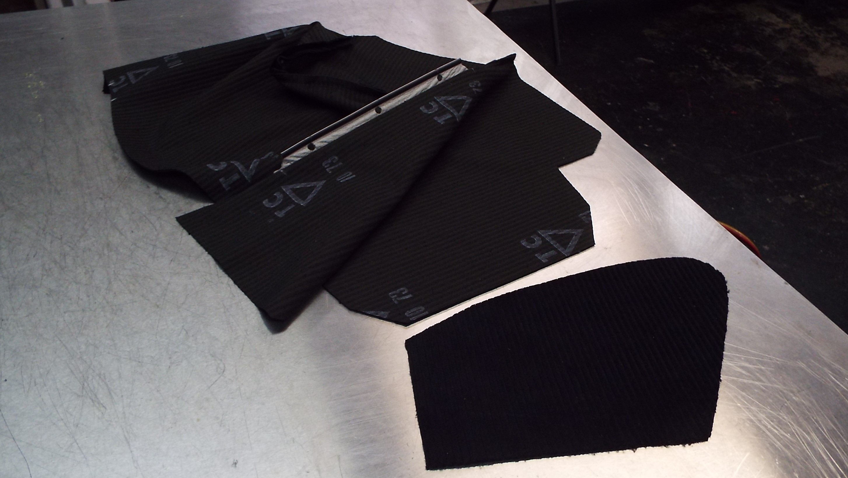 He was working on the corduroy seat bottom panels and had attached this bar to the back side which will in turn be inserted into a slit he makes in the bottom foam to attach the fabric panel and secure it. And side pieces ready to be sewn to the seat bottom. (IMG:style_emoticons/default/smile.gif)