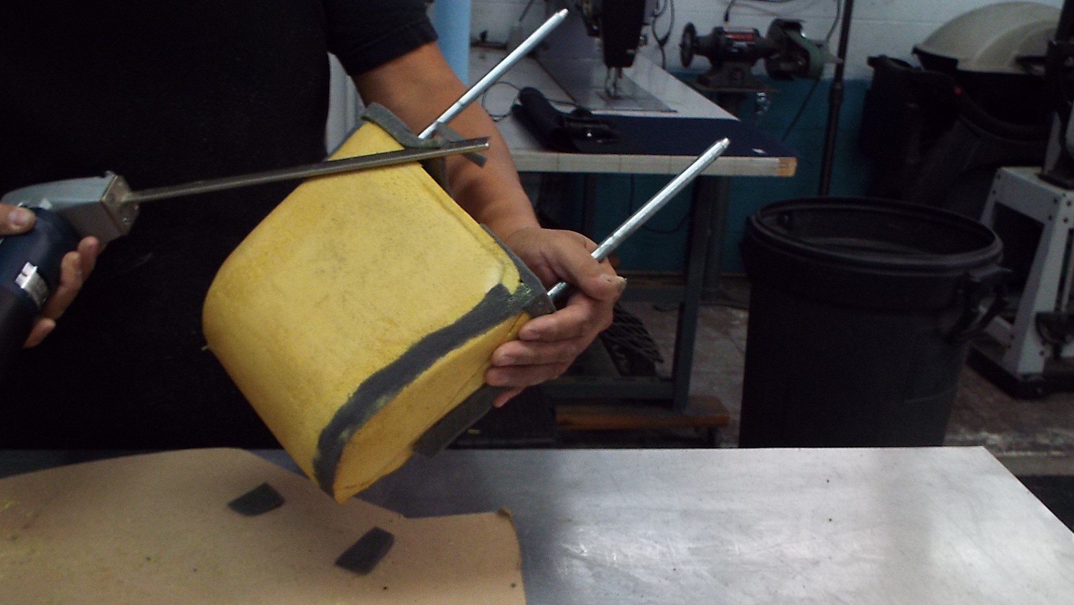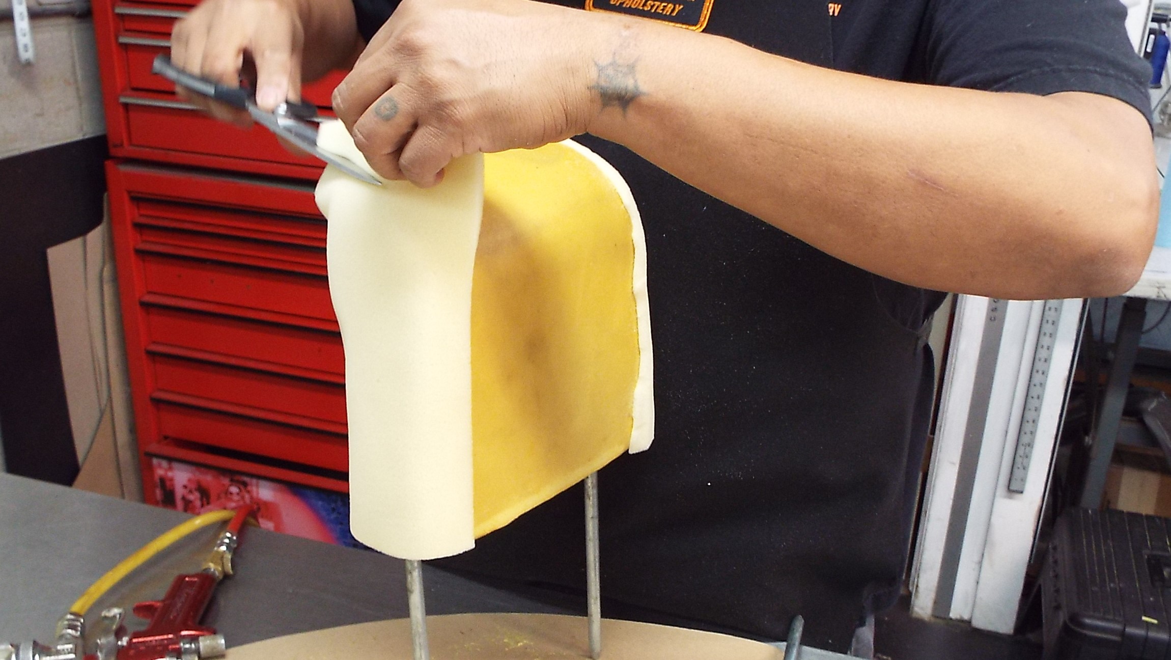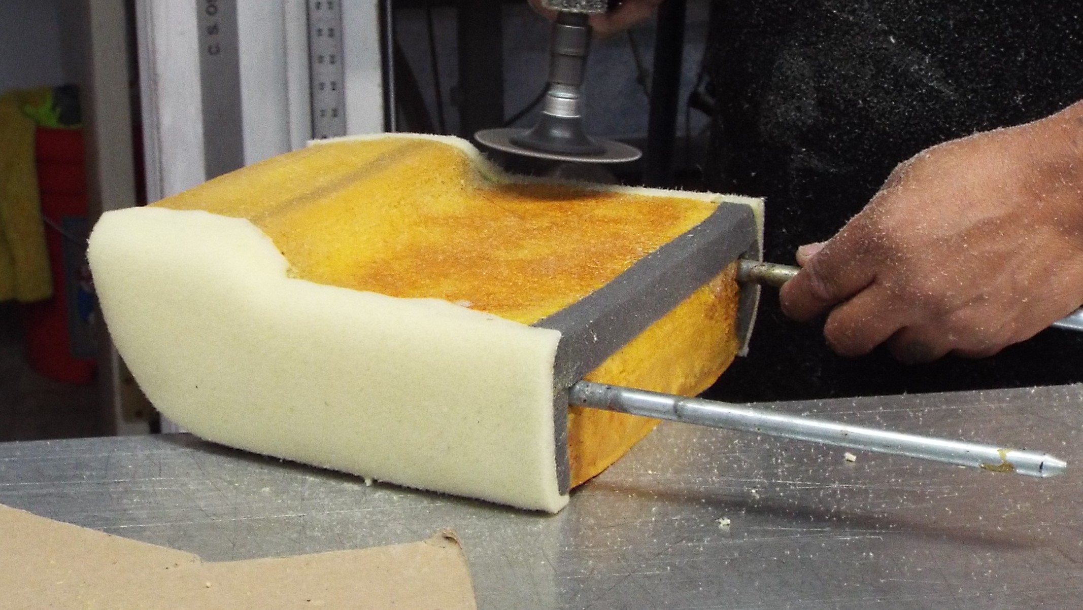 Returning to the shop yesterday afternoon I found the seat bottoms, which had I thought were ready to be covered, had been further enhanced from the post I did earlier. Now the sides have been faced and sculpted plus a thin layer of foam was applied to the top side.