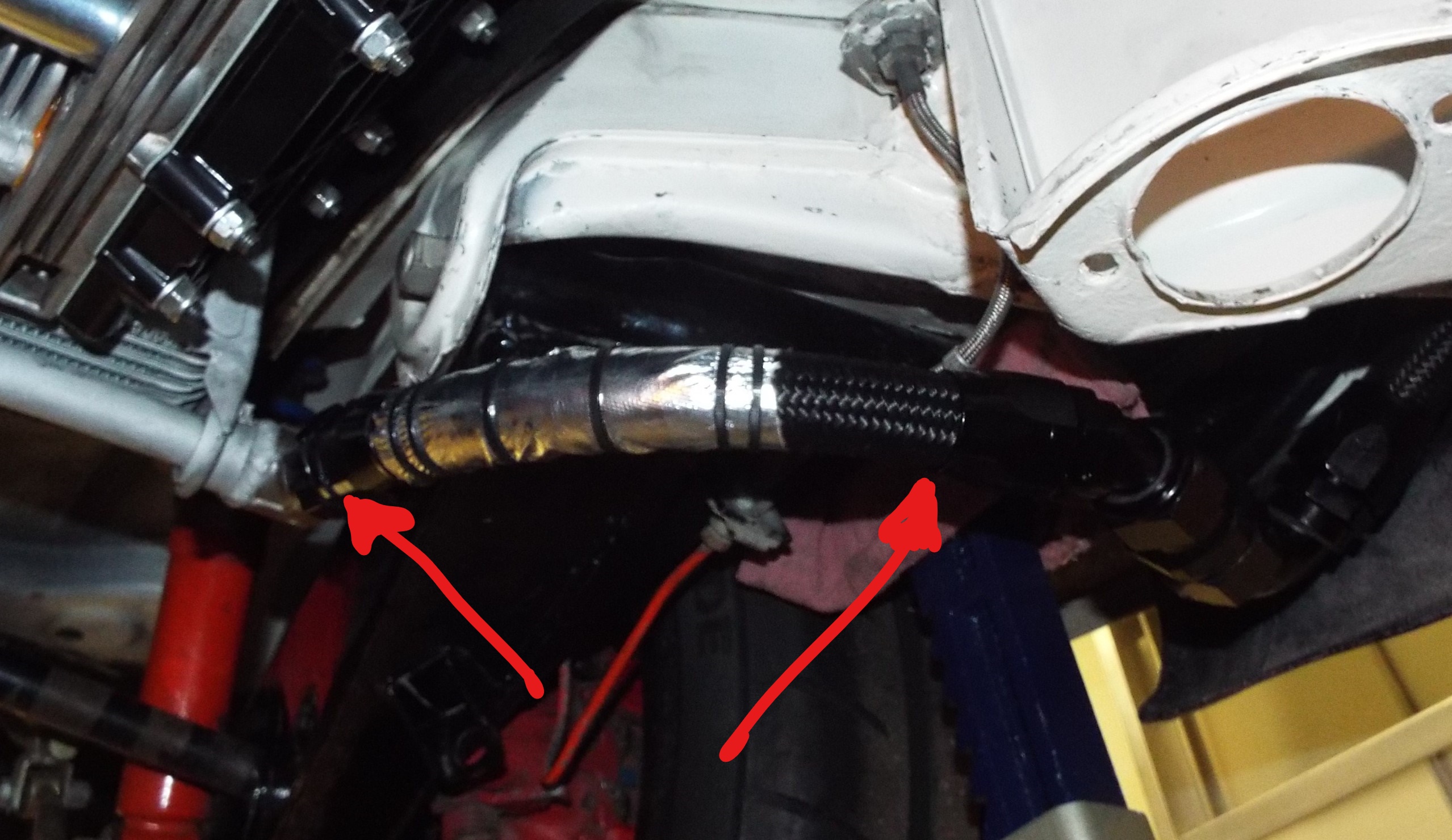 I have a problem with the 16 AN hose between the tank and cooler, and it is leaking in 2 places. (IMG:style_emoticons/default/confused24.gif) It's not that it isn't tight, it is, but it is fitting itself is actually seeping, the one by the oil tank, and also appears to be seeping where the braided hose goes into the fitting as shown. (photo shown is old and the ty-wraps holding heat shield have been replaced with safety wire) But what I discovered next instantly became a top priority to fix. The support bracket holding the outer end of the oil cooler inlet tube next to where the large AN fitting had been attached had cracked and the inlet tube was loose. This then puts the strain on the inlet tube just before it enters the engine. We all know what happens if that inlet tube were to break while driving. It becomes a priority because I have purchased laps at Laguna Seca at Renn6 (IMG:style_emoticons/default/driving.gif) (IMG:style_emoticons/default/white914.jpg) |