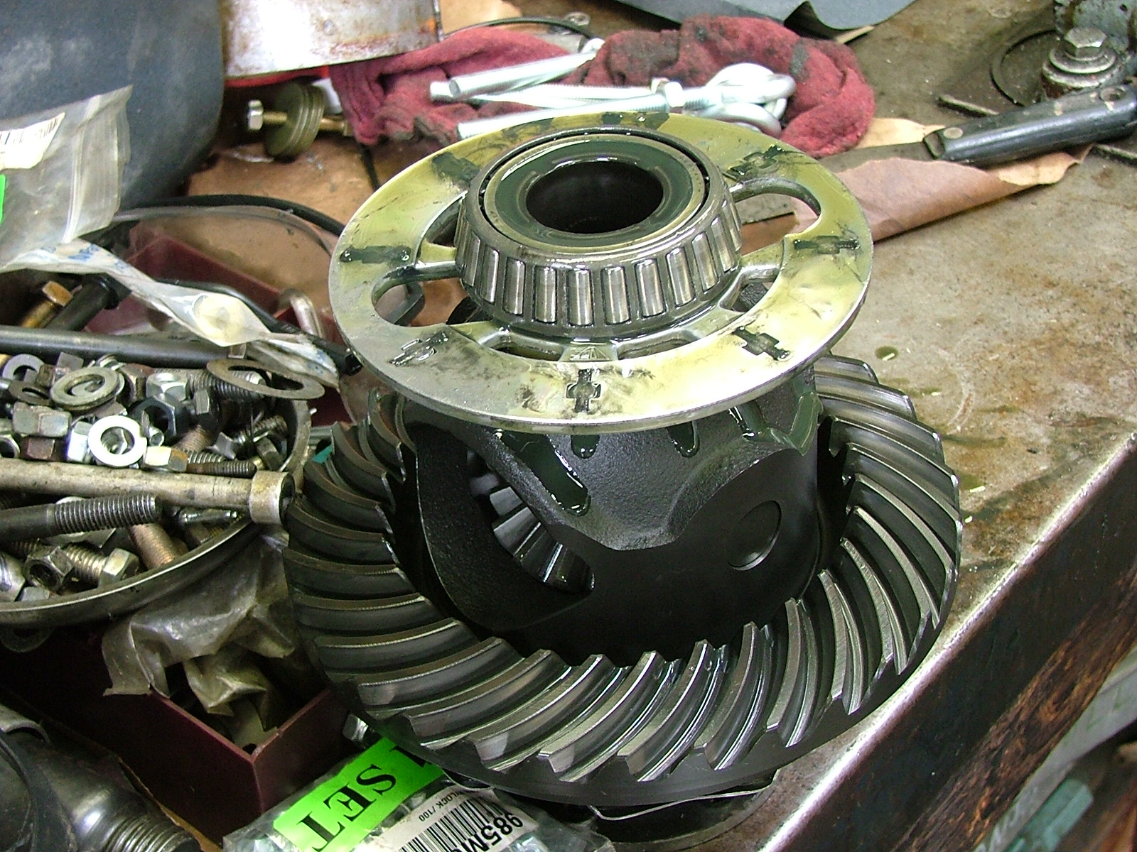 Here we go! First thing we find is a double staked lock tab, not the end of the world my trans guy says, but something I would have replaced on a rebuild. Ring and pinion looked great! The speedo plate pretty dirty but it goes away anyway. Now we see a problem..... |