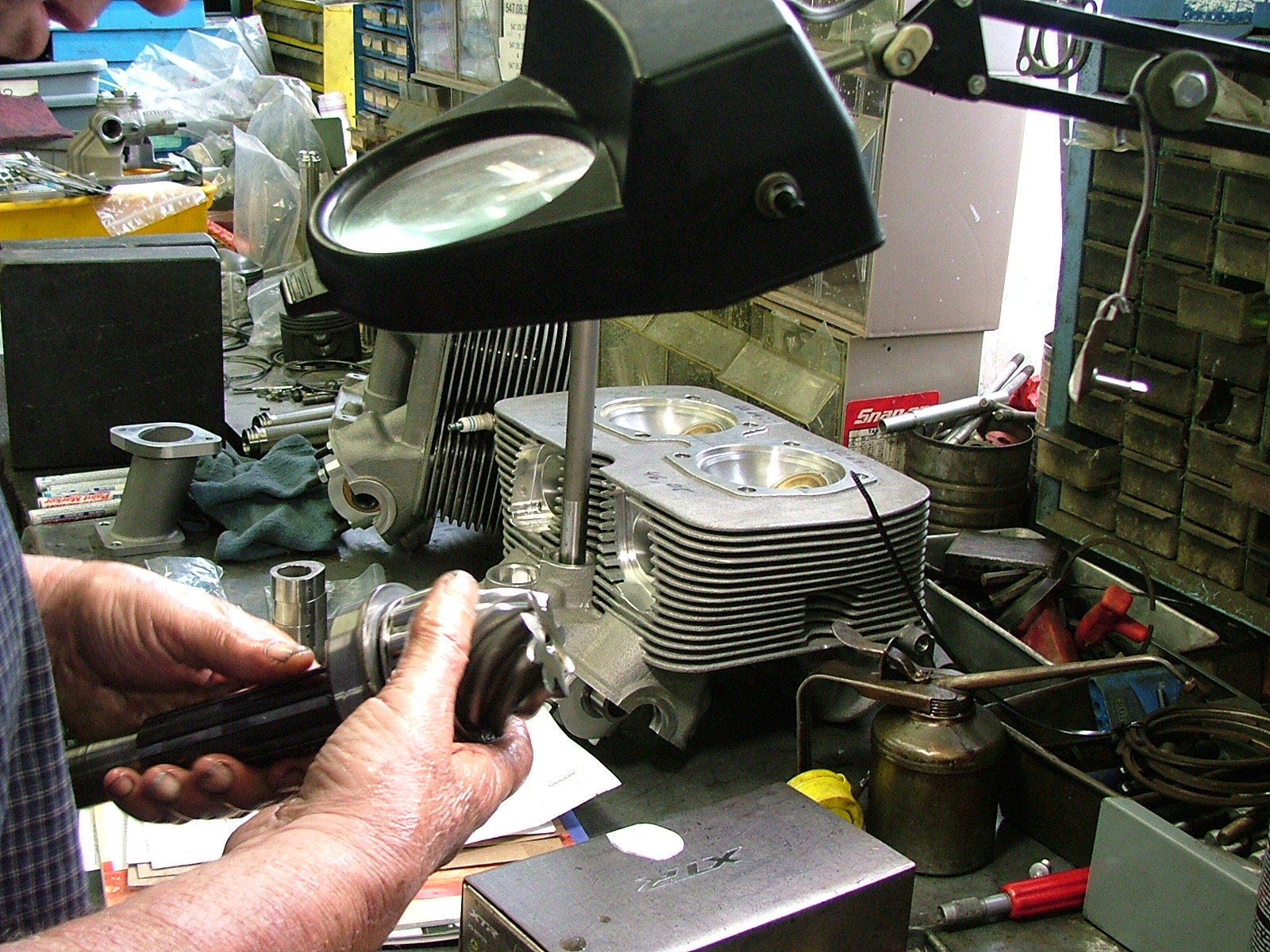Granted this was not part of the kit either, but my guy recommended it, so I did as he said and got it from California Motorsports. Not cheap! (IMG:style_emoticons/default/driving.gif) (IMG:style_emoticons/default/white914.jpg) A thorough inspection of the pinion gear, yes that is a 356 Carrera 2, 4 cam head behind. Random shot of his cut away case that would come to make a major contribution to the build. |