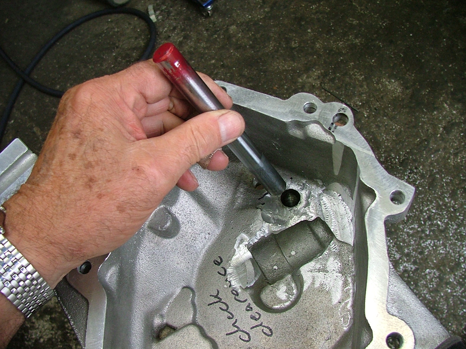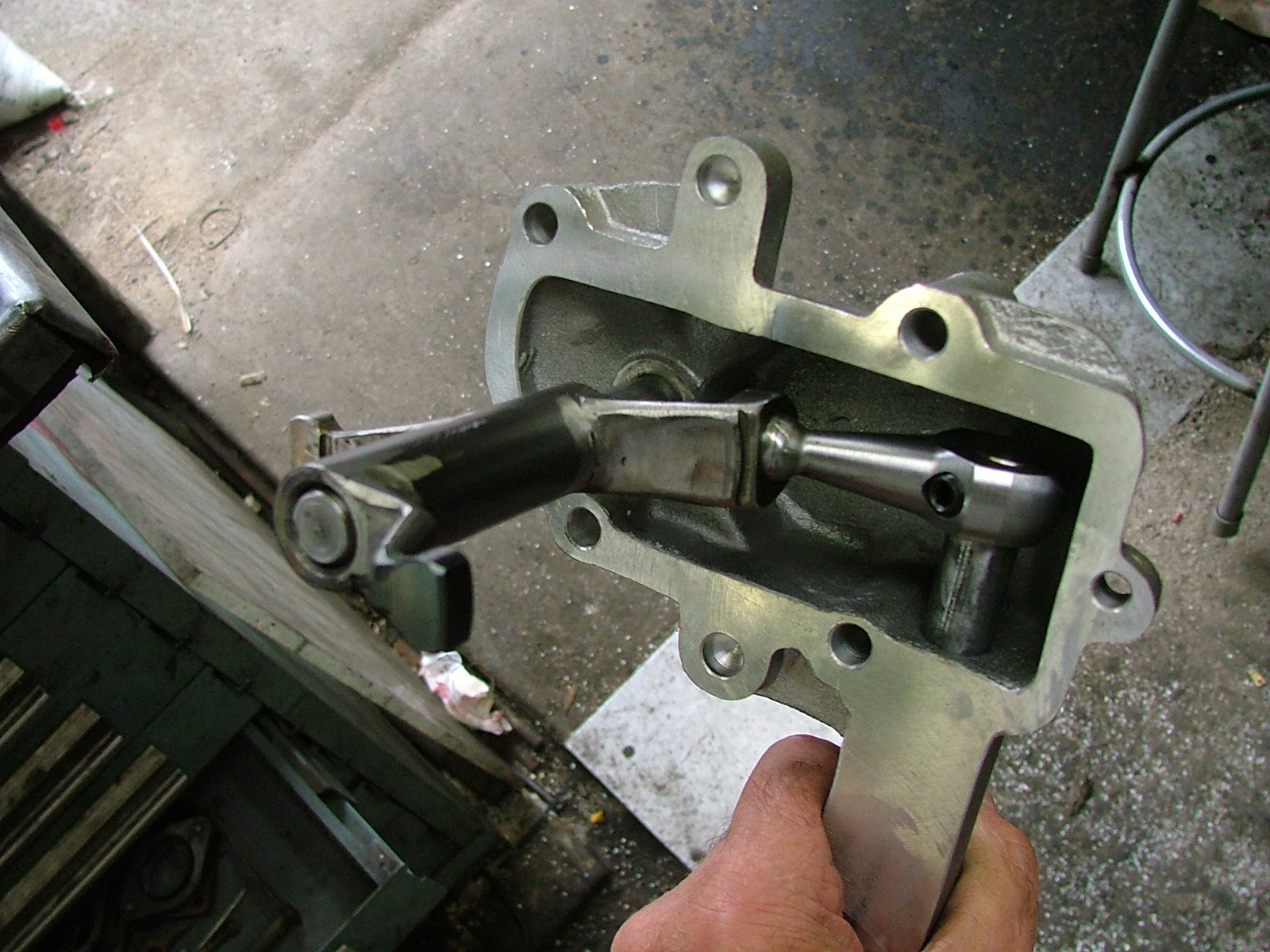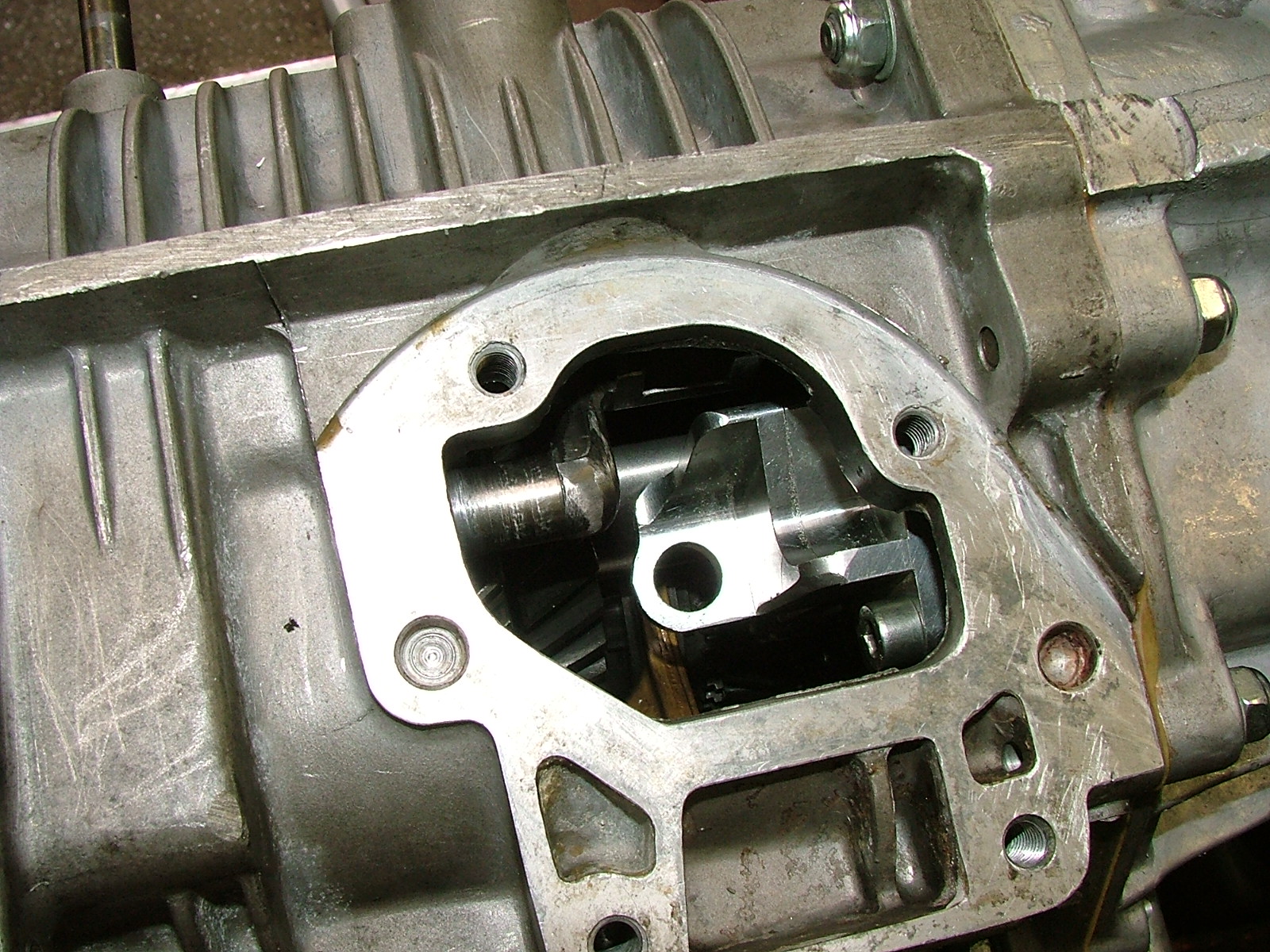 Last Monday 9 am sharp I was back to the shop to finish things up. This is a picture of the inner support block the shift console mates to. The hole for the reverse rod needed to be opened up and my guy came up with this cool approach by taking a shaft and putting a sharp corner on it making it a shaver. If you try to push it into the side of the hole while pushing in and out. Very cool idea and worked well! Ring gear now on the proper side for a 914. (IMG:style_emoticons/default/smile.gif) Since trans is pictured upside down, that vent tube at the bottom needs to be rotated 180 deg since the trans will now be the opposite direction from a 911. And this is correctly positioned now, failure to do this will result in oil coming out of the top of the box. I had read that Lock-tite should be applied to the reverse rod screw. Done and hope it works. (IMG:style_emoticons/default/driving.gif) (IMG:style_emoticons/default/white914.jpg) |
