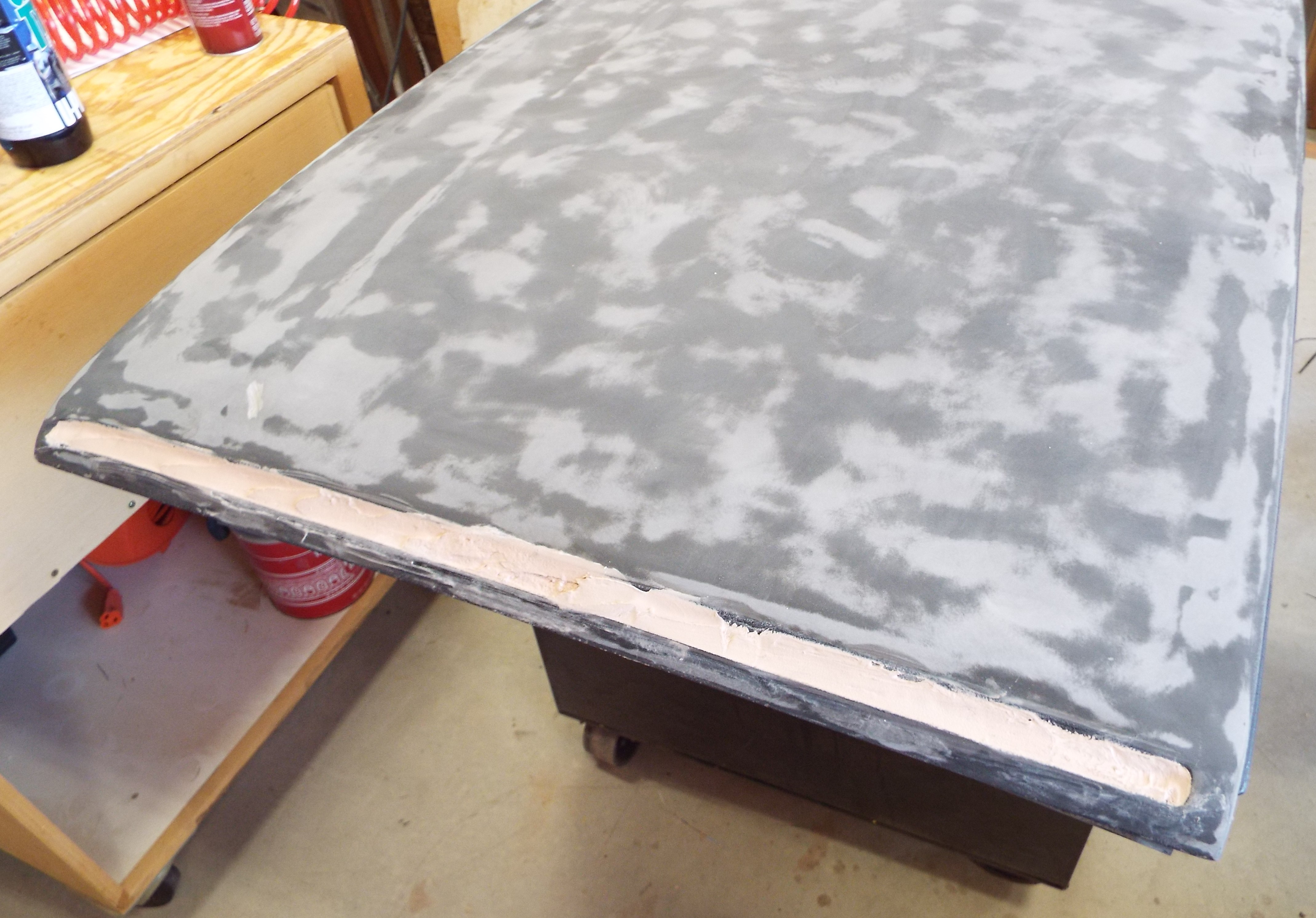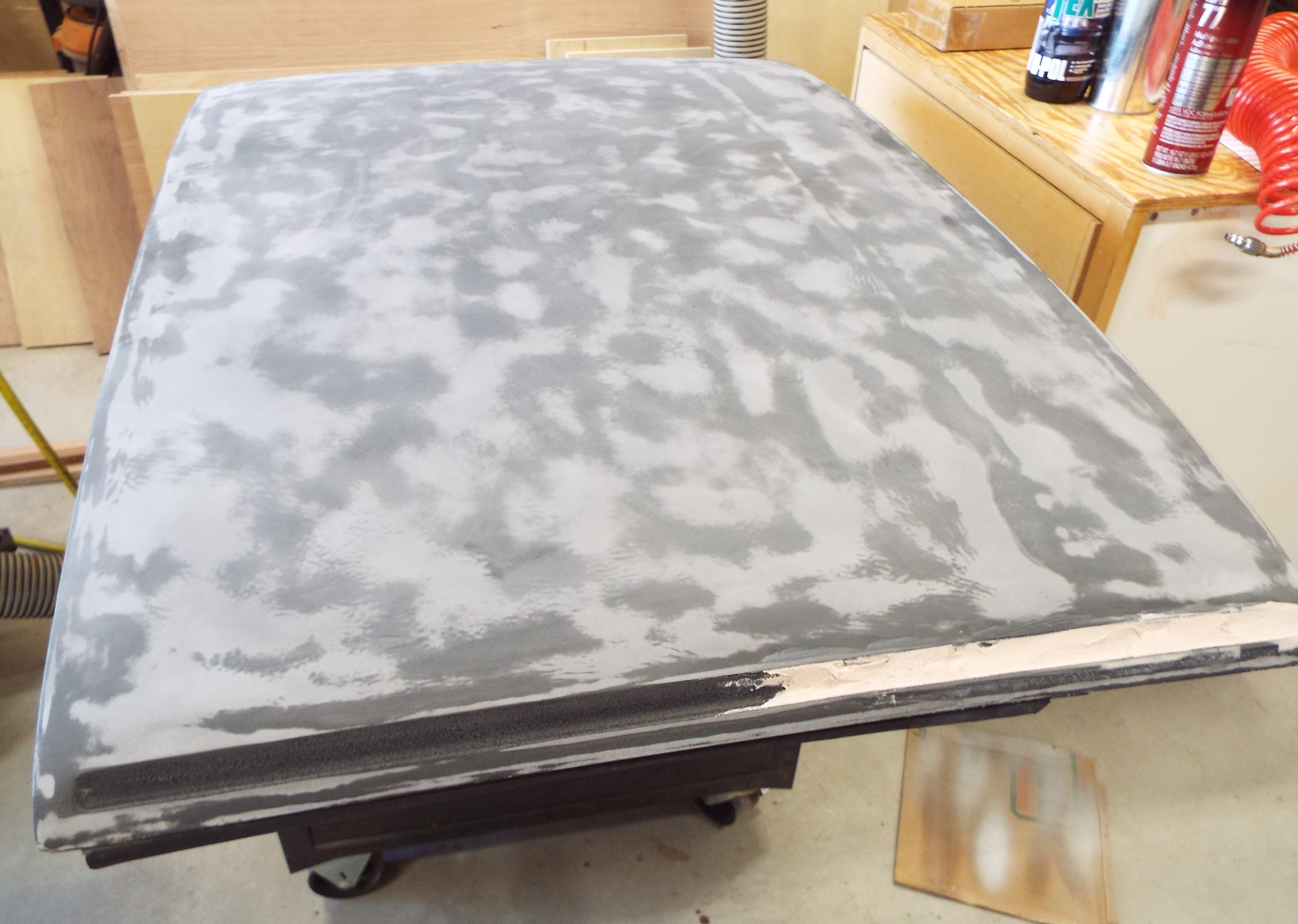 Continuing on, I saw in Eric's thread he had tackled his roof, texture and all, and it came out great! That reminded me I had bought a spare roof at one of Bruces swap meets because I wanted a smooth roof like I had seen at Luft 6 that I just could not get out of my mind. I did not want to commit my roof so now I have choices. So in Mar 2020 I started by filling the rain troughs sanding it down to primer while avoiding getting into the fiberglass. These are the only pictures I can find so far and I guess I will have to take a picture of the finished product and post tomorrow! All I remember is there was a lot of wet sanding and re-primering. I know, filling the troughs with Bondo may not be the recommended method but it worked fairly well. More pictures to follow. (IMG:style_emoticons/default/driving.gif) (IMG:style_emoticons/default/white914.jpg) |