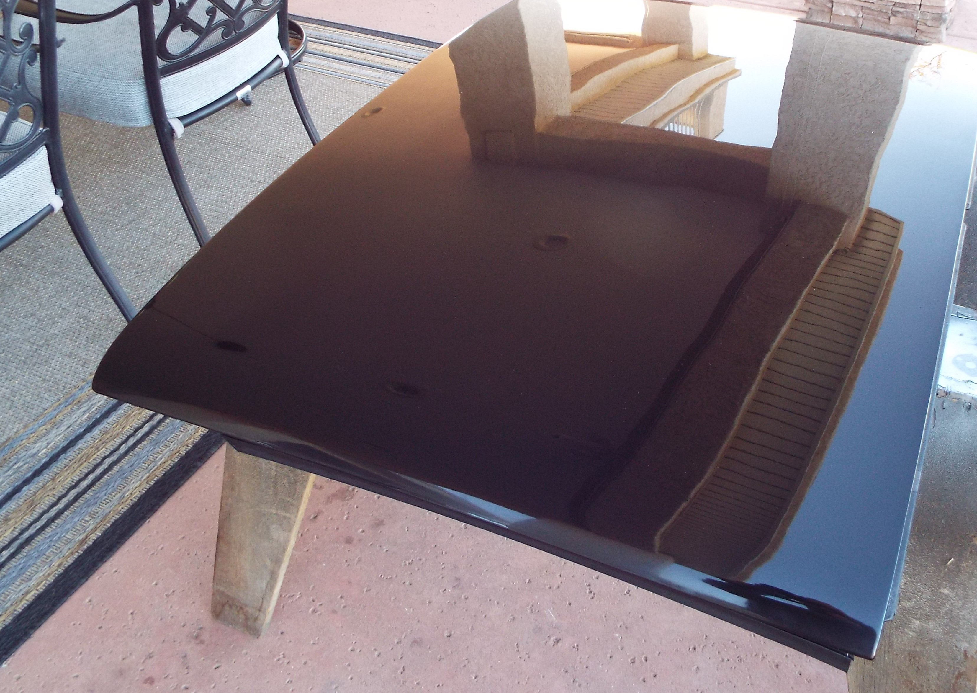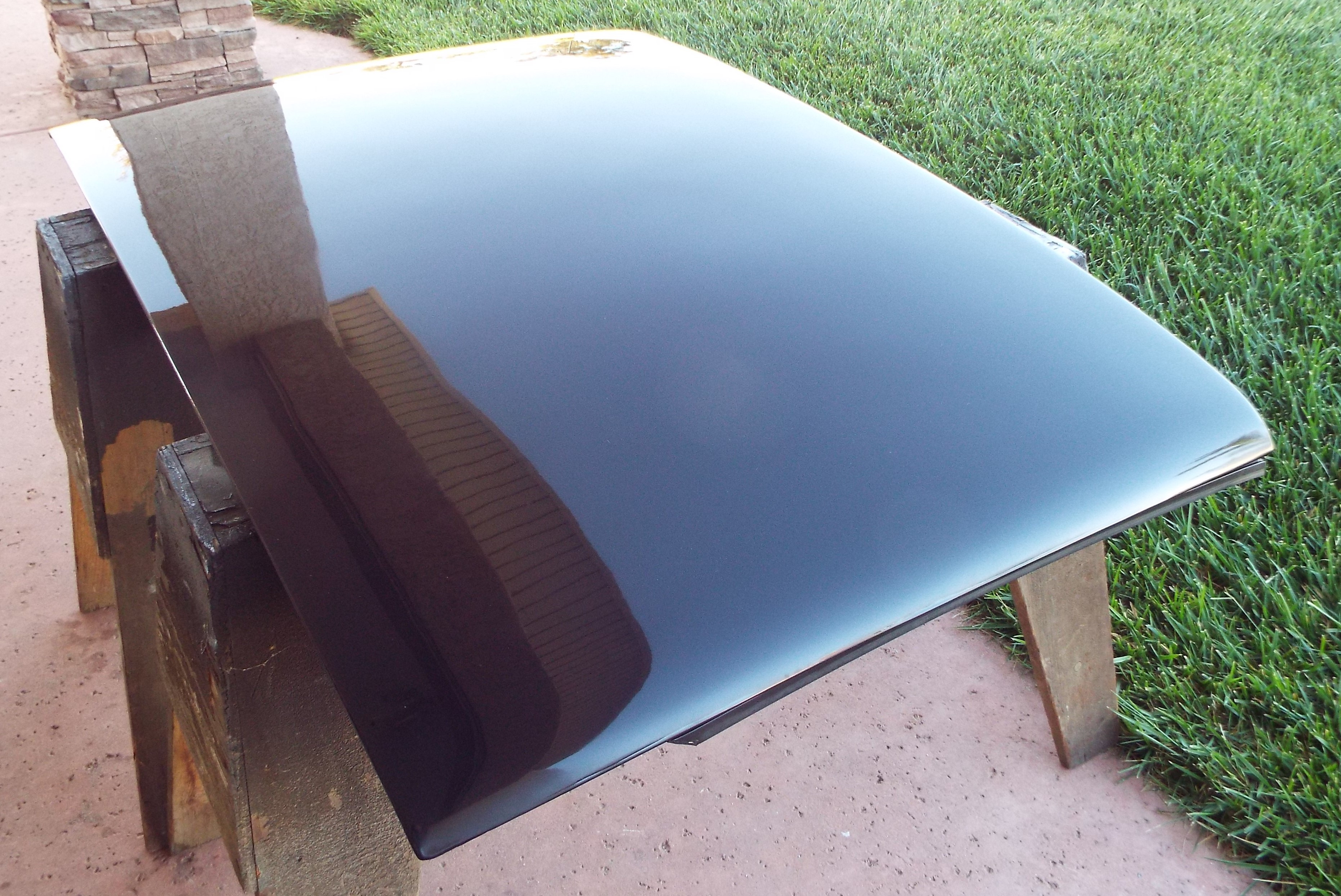 Pictures shot this morning of the smooth gloss black Targa Top I refinished as a spare. It was way, way, way more work than I anticipated. Many primer coats and wet sand, plus many paint coats and wet sand to achieve this finish. I'm not one to give up!