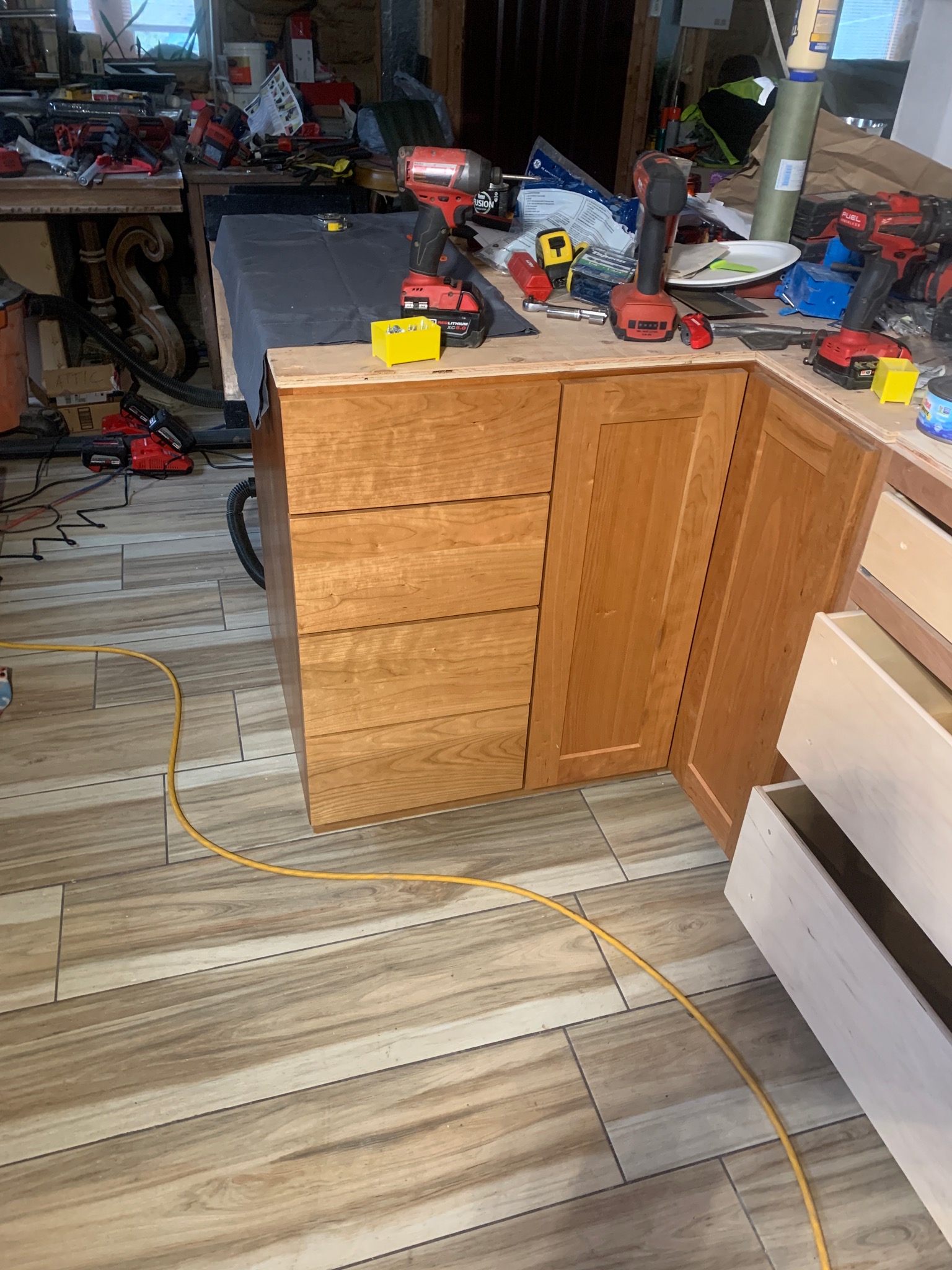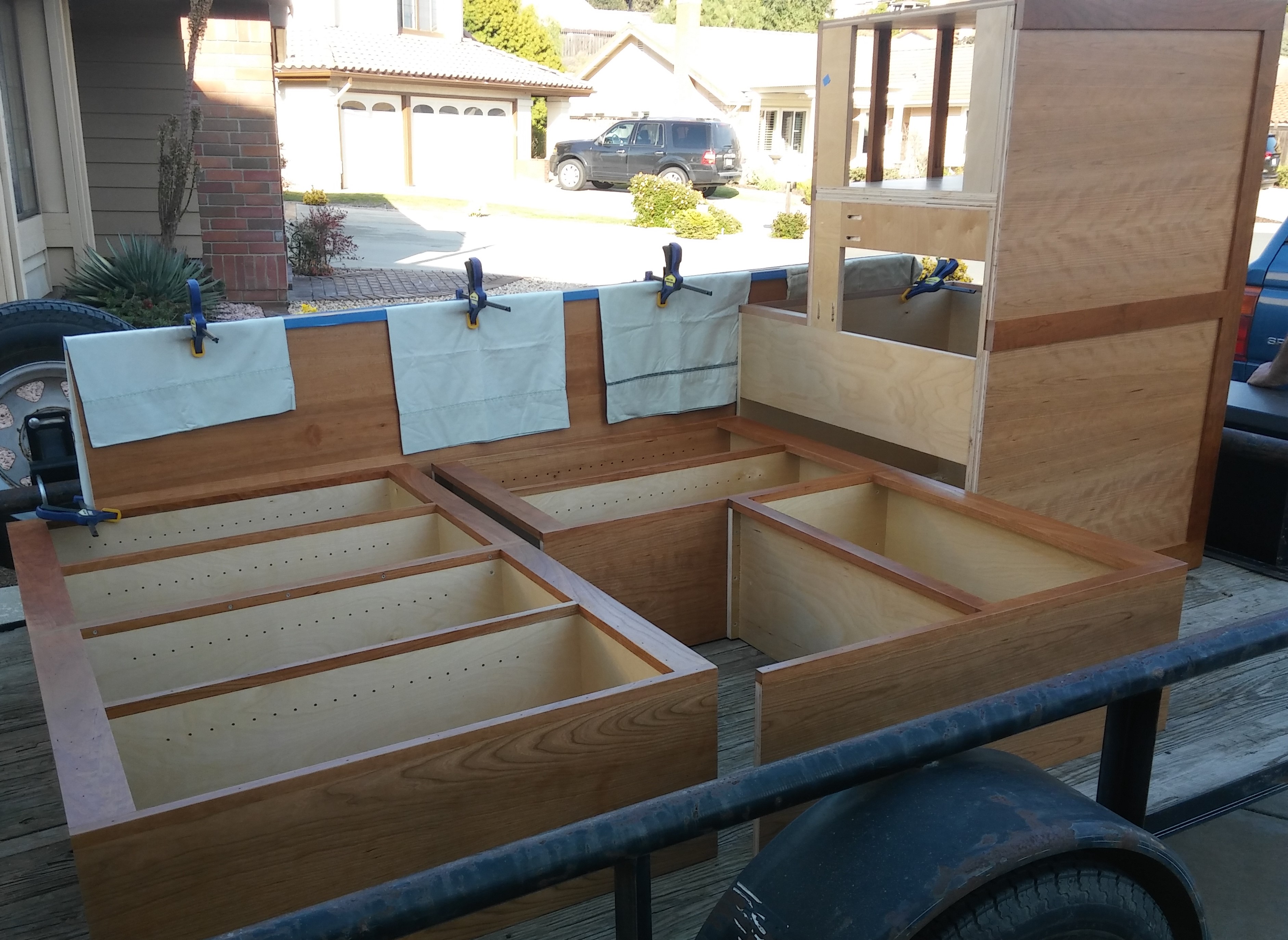 I committed to post some of the things that happened over several posts as I gathered up what I could find pictures of. In addition to the 6 month deck project shown earlier, I built custom cherry cabinets for my son over another several months..... (IMG:style_emoticons/default/driving.gif) (IMG:style_emoticons/default/white914.jpg) |