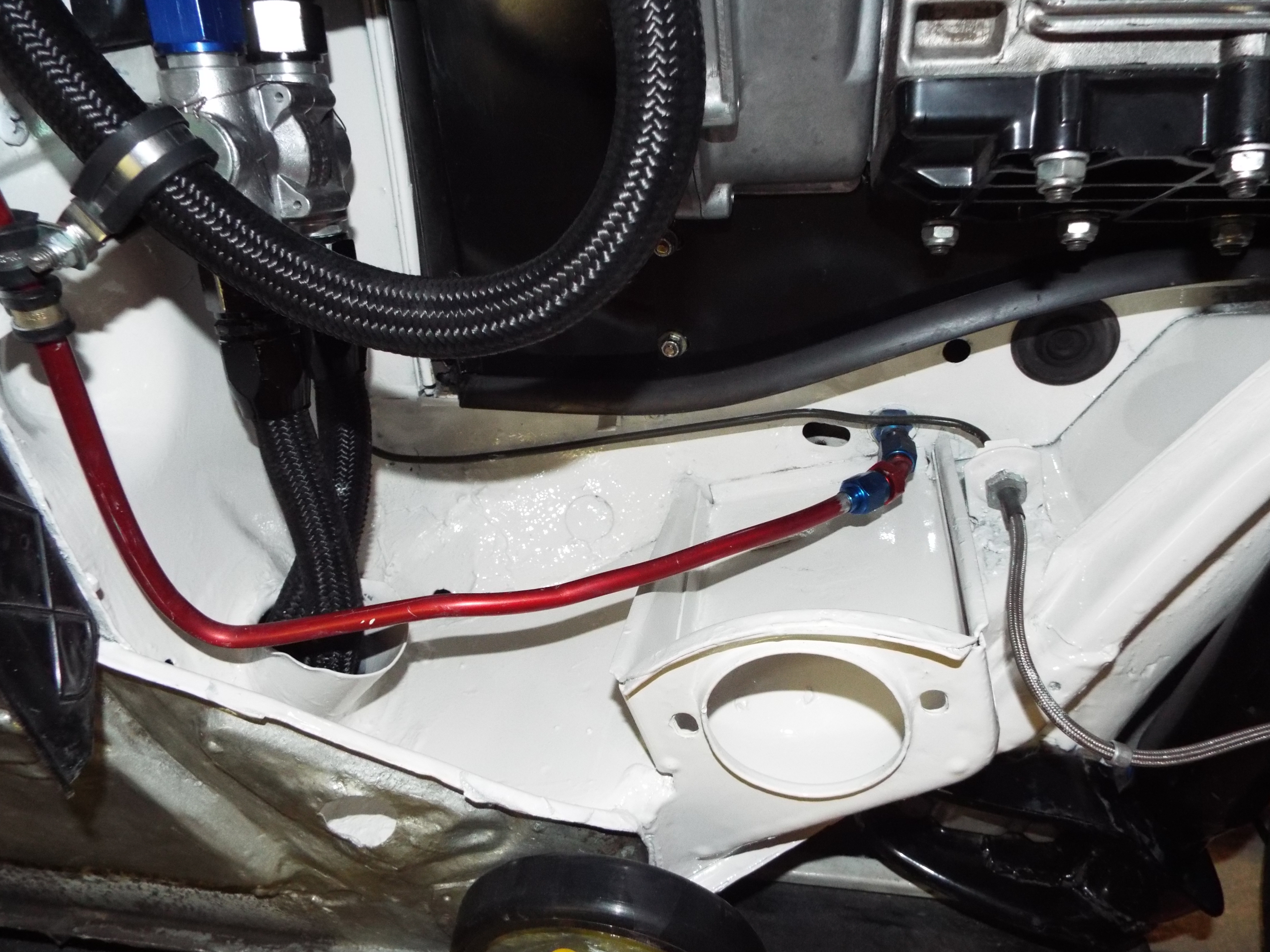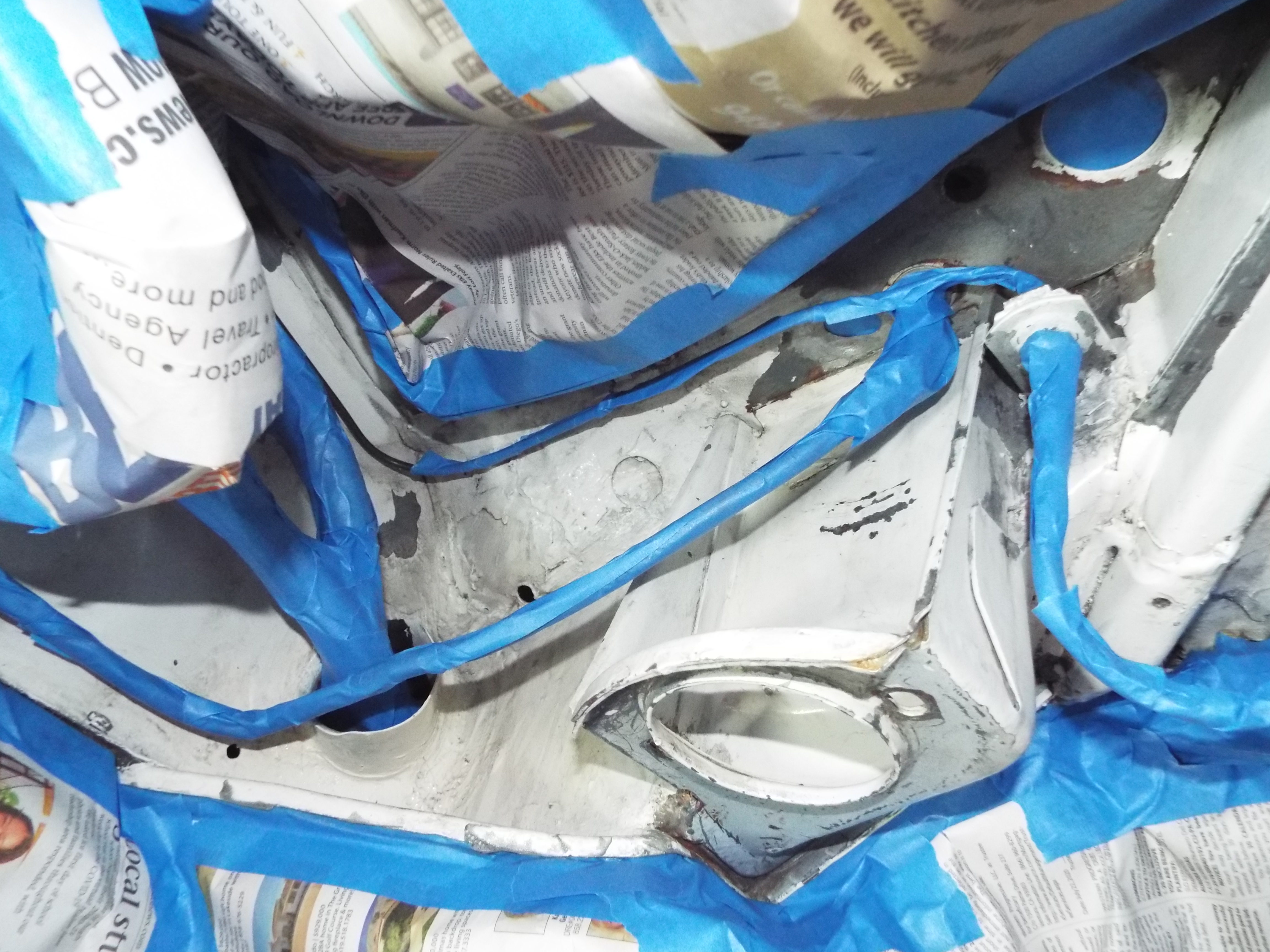 When I got this car in 2013 it had the steel flares, all the body work, and Imron paint, ALL DONE! This was huge for me, the car was in the middle of a 6 conversion. The paint job was in great condition for having been done about 1998. Still looks fabulous today. I had lots to do to finish the conversion (5 years) so not having to worry about the above mentioned was fantastic and left me to focus 6 conversion, engine rebuild, and a bit more. I was not too concerned at the time about the underside and only did some touch up here and there. Being as the car turned out well, something has bugged me for some time now, and that is the areas below I painted, which is basically the underside of the engine compartment. Of course having the paint I got to do the jack bracket project certainly helped! Have no idea how long it took me to tape this off but it was a while. pictures are huge so will take a couple posts. (IMG:style_emoticons/default/driving.gif) (IMG:style_emoticons/default/white914.jpg) The left side |