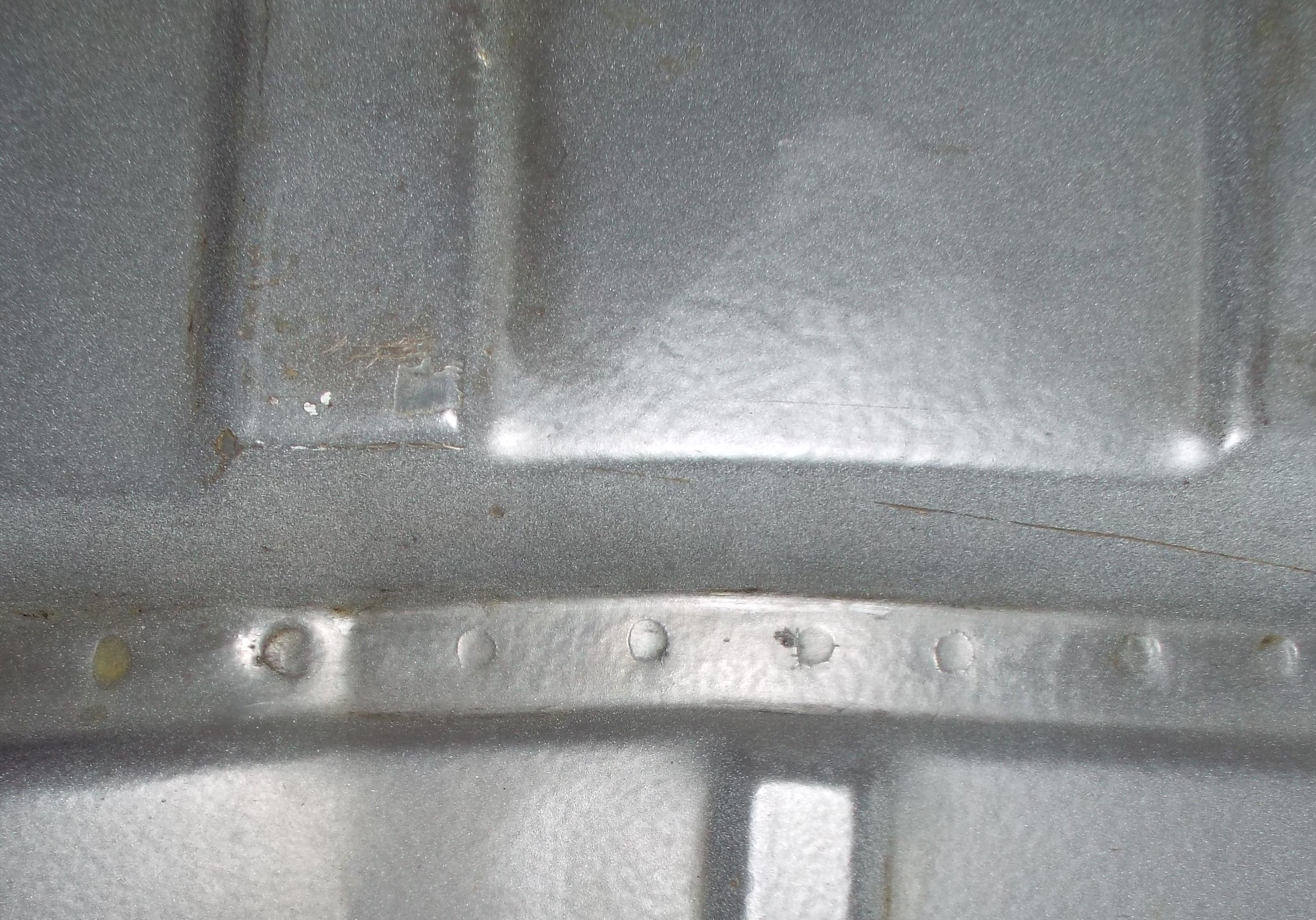 There was something I had never addressed over all the years I've owned this car, and that is the back panel, behind the muffler/ heatshield. I forgot to take before pics, sorry. It is not the straightest, and that can't be fixed without major work, but it was yellow, and although you couldn't really see it easily, if you looked in from the rear tire, you could.