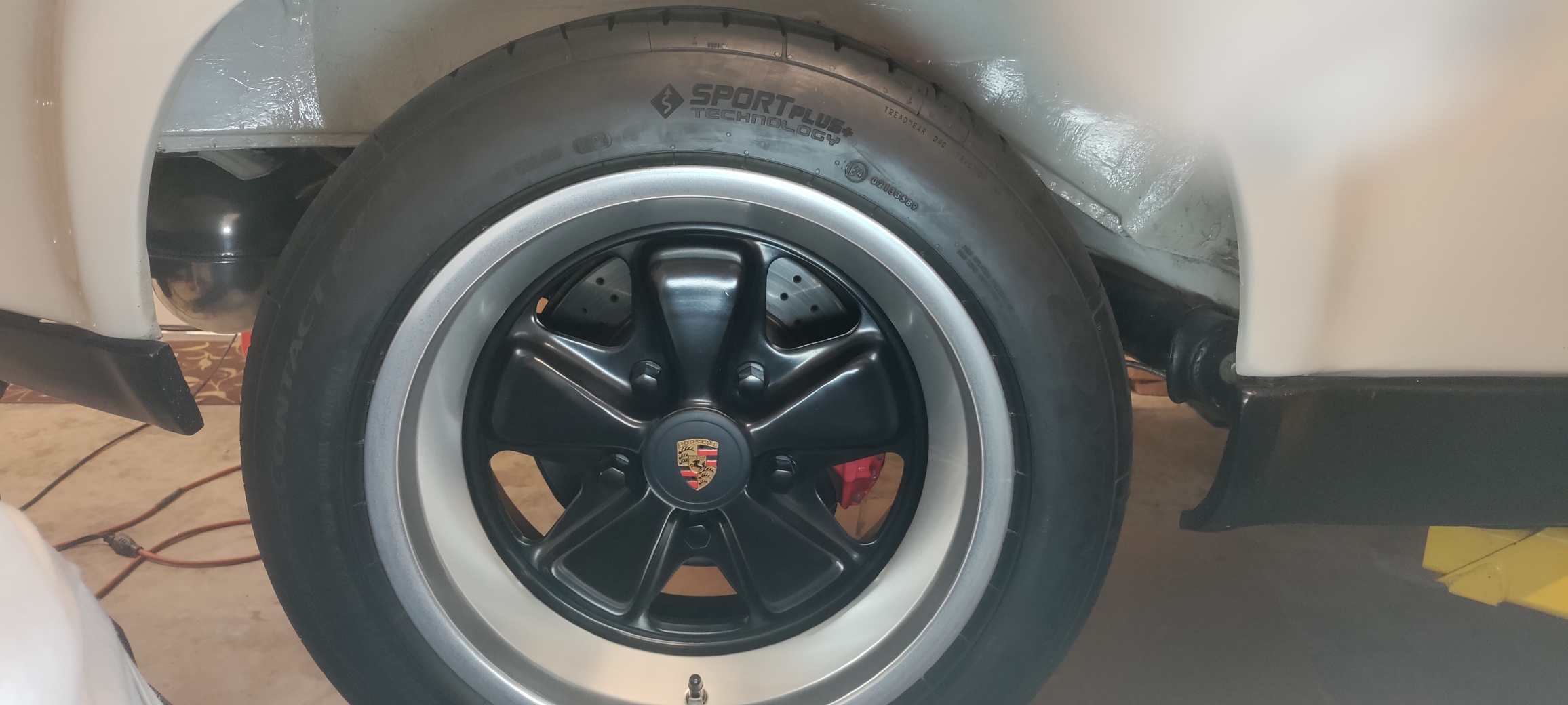 Back to the tires /wheels for a minute. One of the front wheels had some issues with finish on the anodize so I took it to Fuchs Restoration where Ed and the crew did an amazing job. The paint finish is really smooth. It just came out so great. (IMG:style_emoticons/default/driving.gif) (IMG:style_emoticons/default/white914.jpg) |
