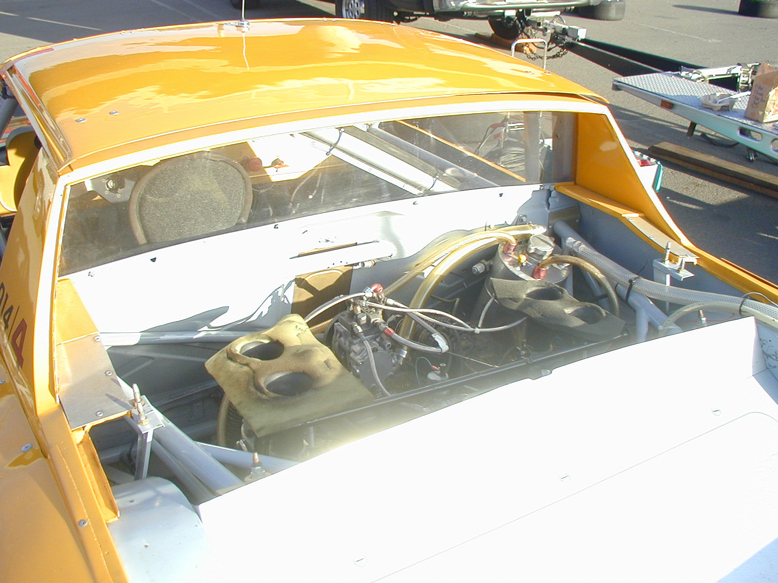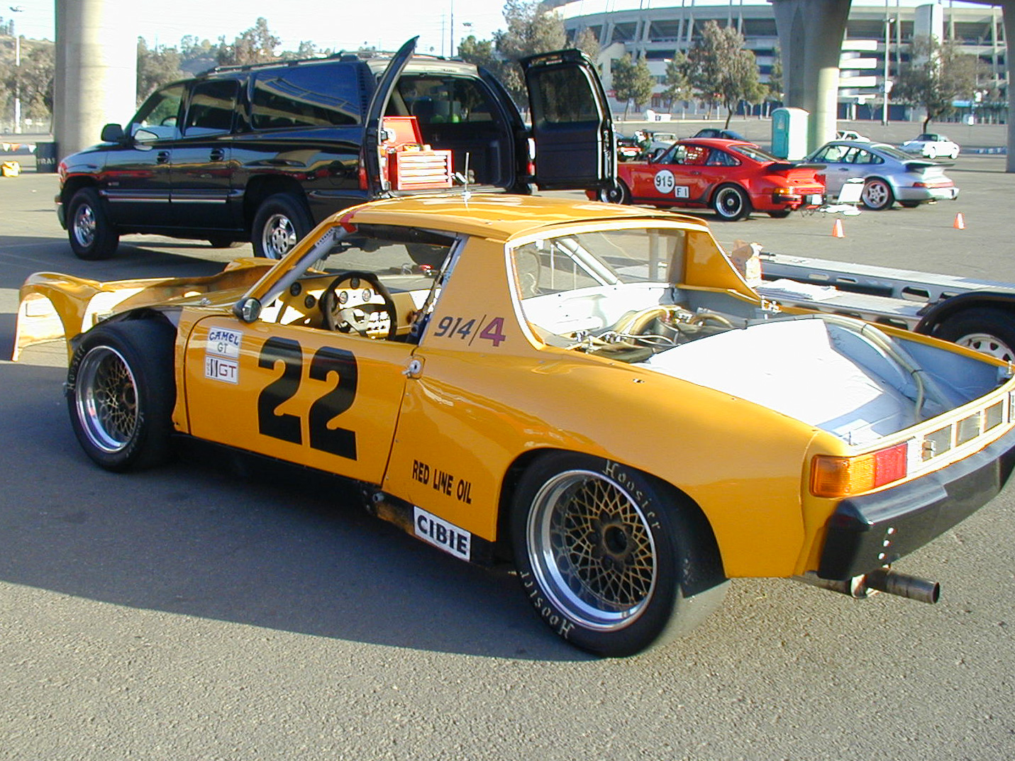 I'm dating myself but here are some pics of Wayne's car from a 2001 PCA SDR autocross. He brought that car to the inaugural "California Challenge" out in Bakersfield. It wasn't running well; I loaned him some tools while he was messing with it. I saw the car again at Rennsport late last year. I have some pics around somewhere. Wayne was off getting tires or some such, so I talked to his buddy (mechanic?) for a bit. --DD |