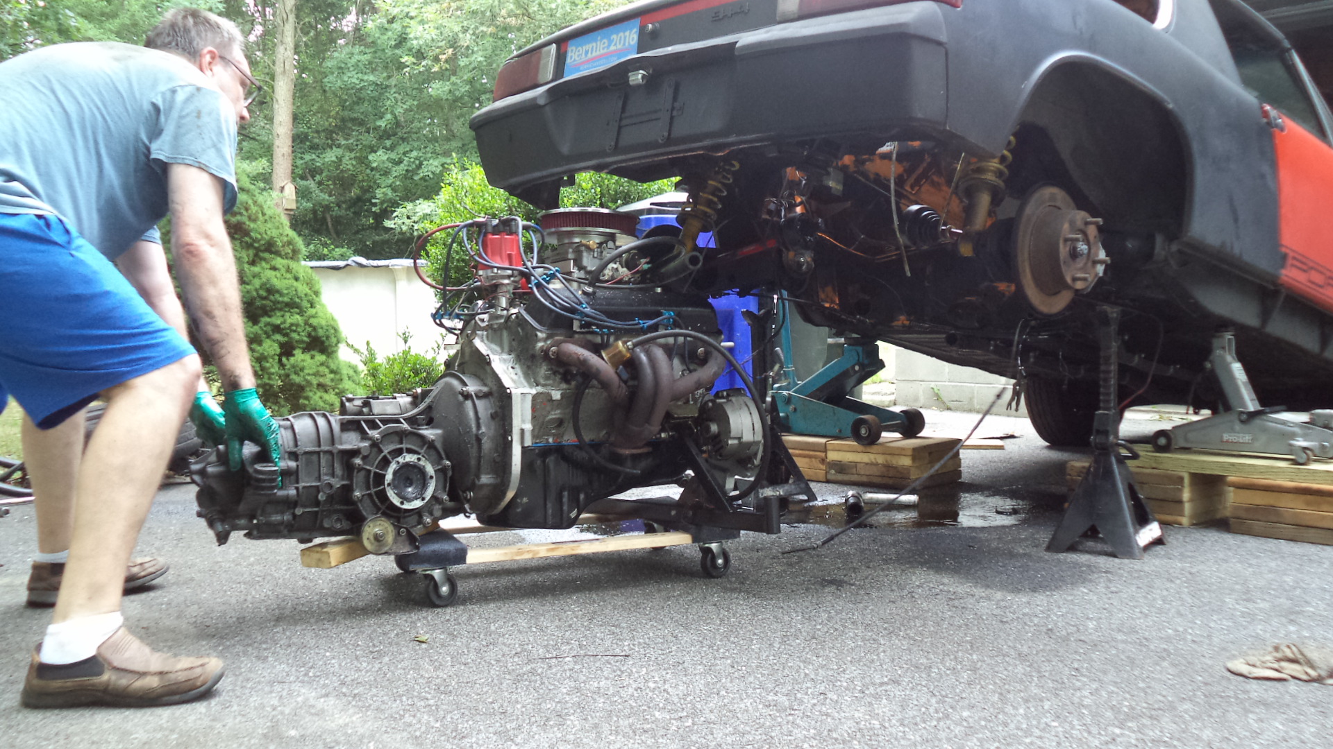 Add four detachable casters to it and you can roll it right out from under your car after unbolting it from chassis. My home made contraption worked great on my seized engine I just pulled. I roll it right back under car for storage when i want it out of way. Attached thumbnail(s) |