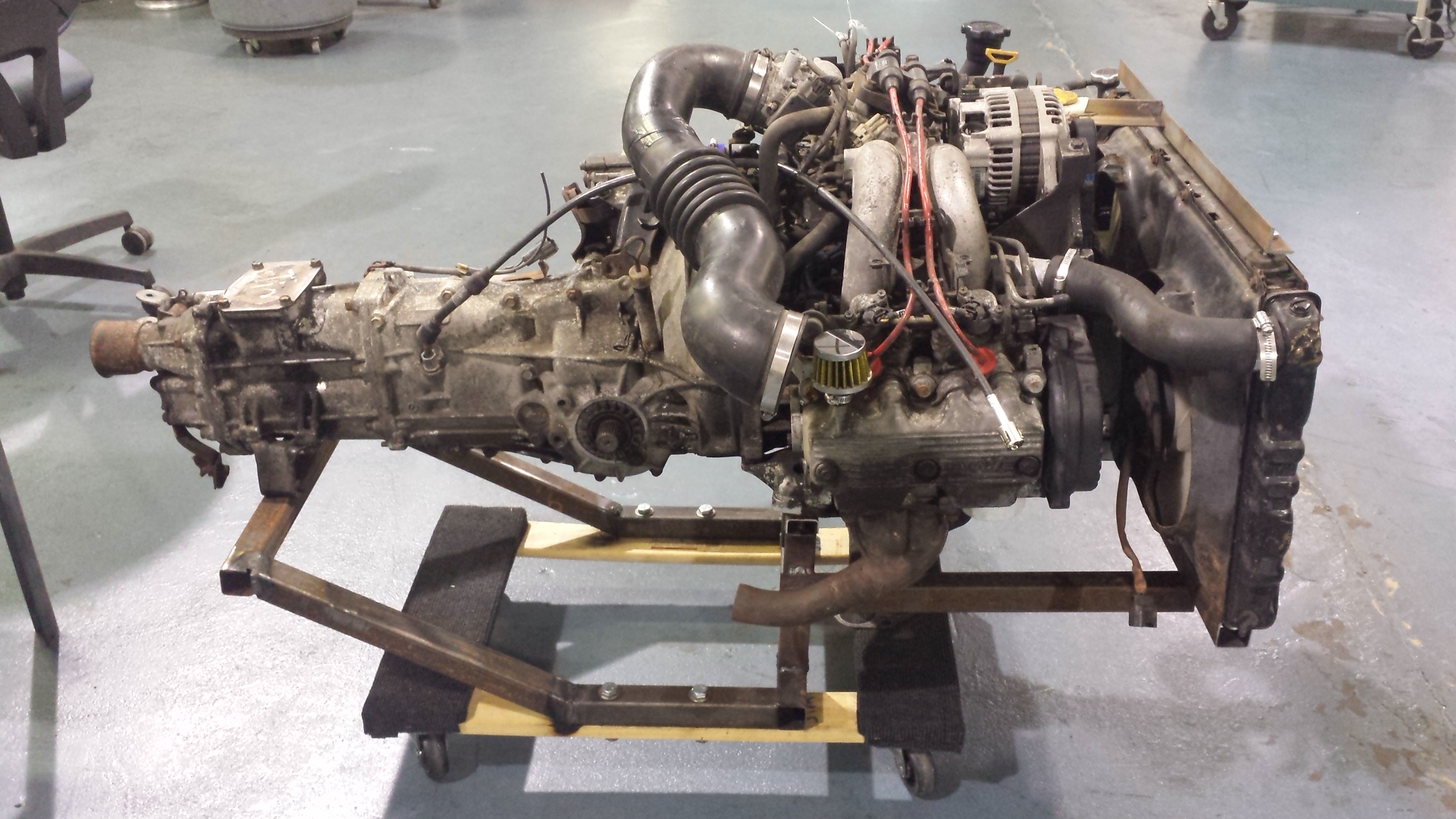 engine stand getting closer to finished and closer to letting me start on wiring FI. engine and radiator and trans are now all part of the stand (IMG:style_emoticons/default/smile.gif)