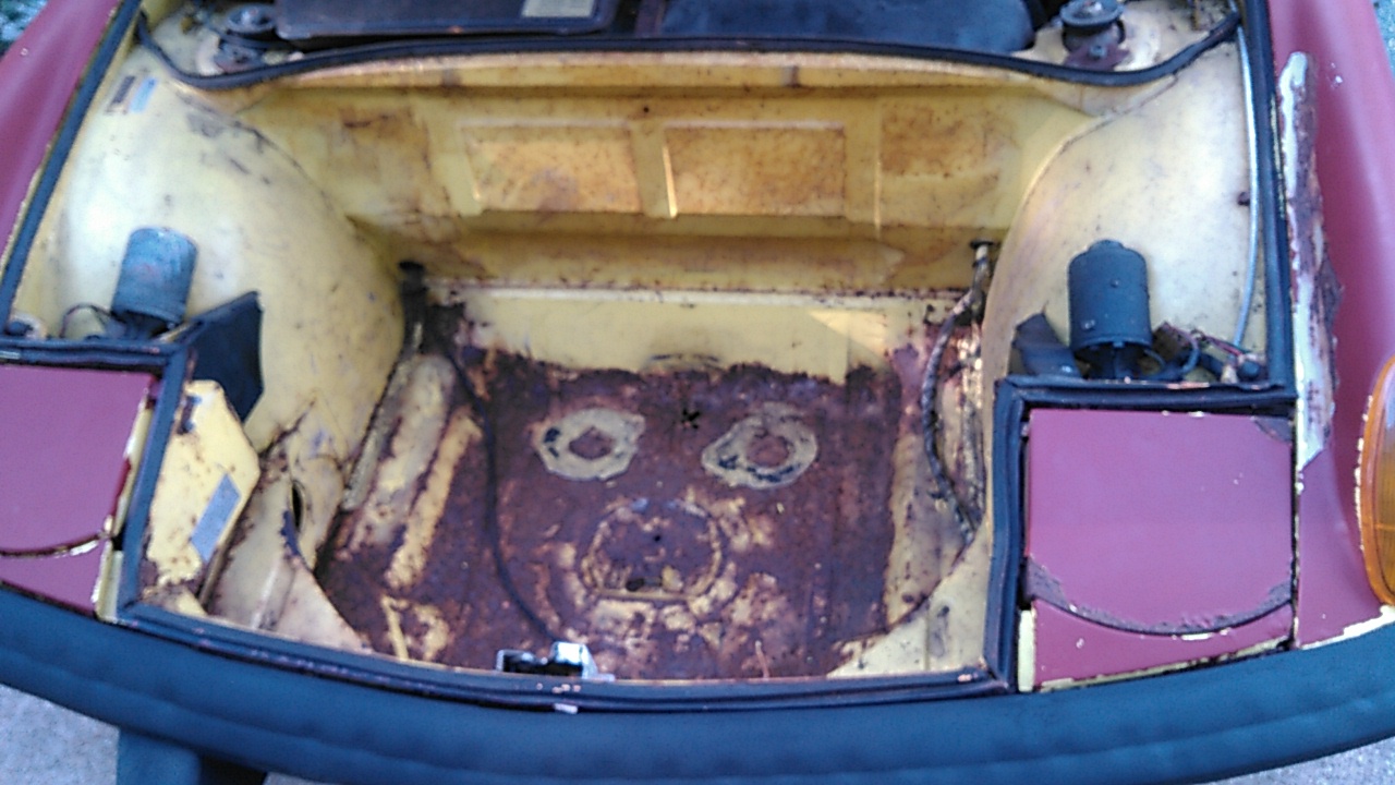 I bought a 73 (red car) and 74 (blue car) with a ton of parts for $1000.00. I was going to part them out and be done with them..... but they grew on me. The blue car has been in a garage for the last twenty years. The owner shredded the crank and sold it to the guy who I bought it from. the blue car had its drivetrain pulled and disassembled. The red car has no title and is really rusty. The motor will fire and sort of run on a spray bottle with fuel. My plan is to make a driver out of the blue car. The BIG monkey wrench is i want to do it for zero cost. That's my my challenge to me. I have already sold off some parts. -$1000.00 Original purchase +$200.00 sold 2 sets of seats +$400.00 sold targa top, center counsel, muffler, and sun visors __________ - $400.00 So right now I'm $400 in the hole. I have quite a bit of parts to get rid of. Thats great except I just dont see the money going very far. The plan is to reuse, freshen up, recycle, and rebuild. My en goal is just a driver. Not a full bore resto or a show car. I have to keep it in mind that this is a car that was a day away from the great sawzaw in the sky. |