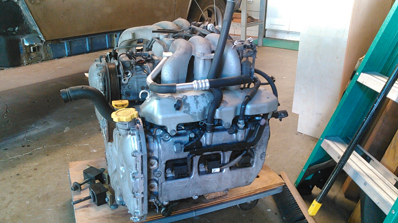 I bought a radiator fan combo A Subaru 3.0, 5mt trans, computer, starter, harness, and mounts(Crazy Rays pickurpart) clutch slave (luk from rockauto) honda clutch master (luk rockuto) clutch kit from ebay chunk of 1/4 aluminum Started cleaning up the floor and adding the tunnel for the cooling tubes. ![]() ![]() ![]() I used an old shelving unit for the sheet metal. My thinking is a 1 1/2 deep tray sits just under the factory consul hump. Since I'm not using the factory shifter, wiring harness or fuel lines I might as well take up space with two 1 1/2 tubes. I don't like to use soft lines if i can help it. The plan is to run hard lines under the car with soft connections front and rear. the Subie 3.0 is from a 2002 outback that was completely caved in on the driver side. No Idea of the millage but everything in the engine compartment pointed to a running engine that had been well maintained. The glitch was I went back two days later to pull the harness and computer. The car was already crushed. A couple weeks later another 3.0 showed up at a different crazy rays. I love pick ur parts. The 5mt trans was pulled from a 2002 Impreza that had a pretty hard front impact. This is more of a gamble. The drive pulleys were mangled and it cracked the alt/ac mount. the trans appears to have escaped the the bulk of the impact. |