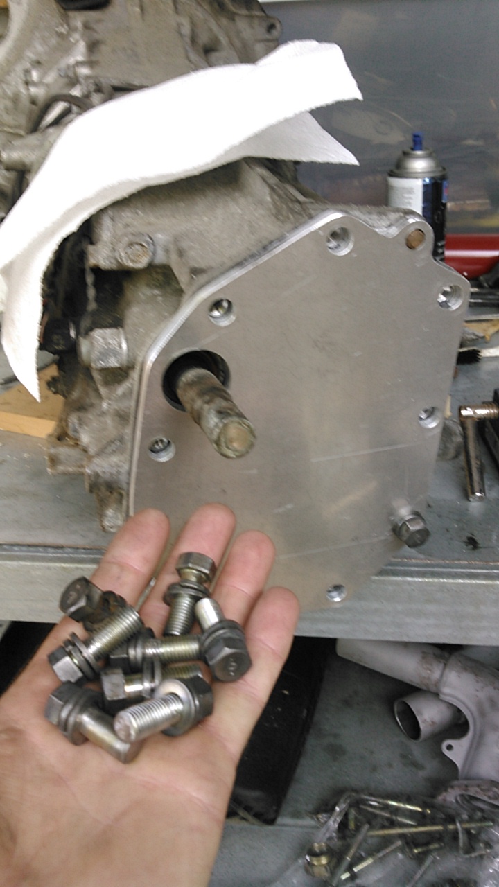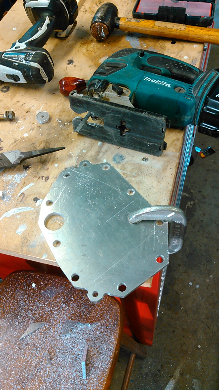 Simple....pattern, drill, jig saw, hole saw, file..... done Cut down the factory bolts. Thinking back it was a bit of a mistake. i need two of the bolts to hold the bracket for the cable shifter. I grabbed a bunch of longer M10/12 bolts for the Audi engine at the local hardware store.. Just saying (IMG:style_emoticons/default/smile.gif) Your plate looks excellent! |