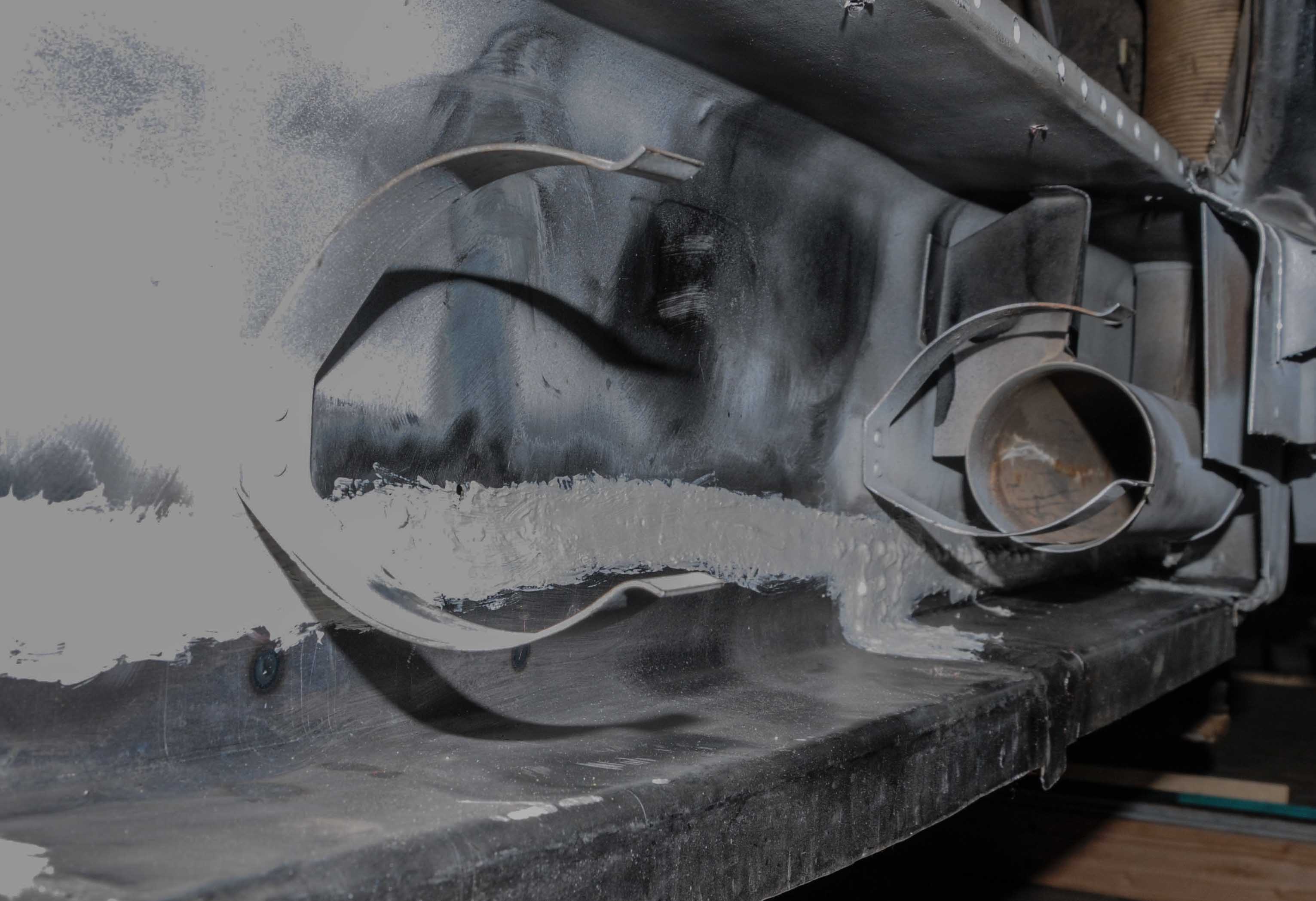It's weird how parts of the heater tube look like overspray, but it's solid black except in the weldy areas which will need painted later. I also found that it's mounts were kinda weak and thin, so I took some JB Weld to assist the real welds in their job.