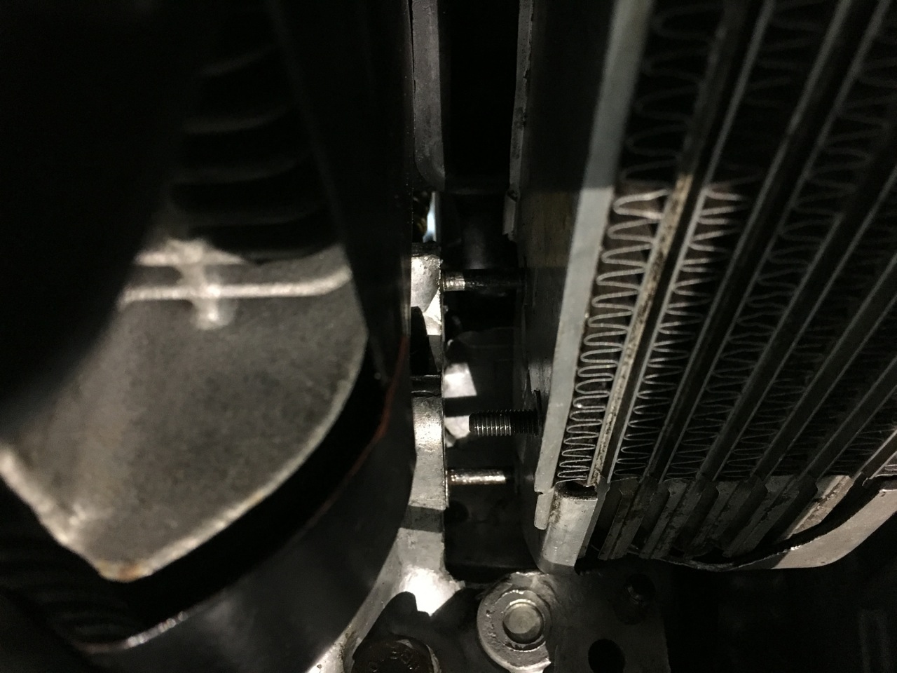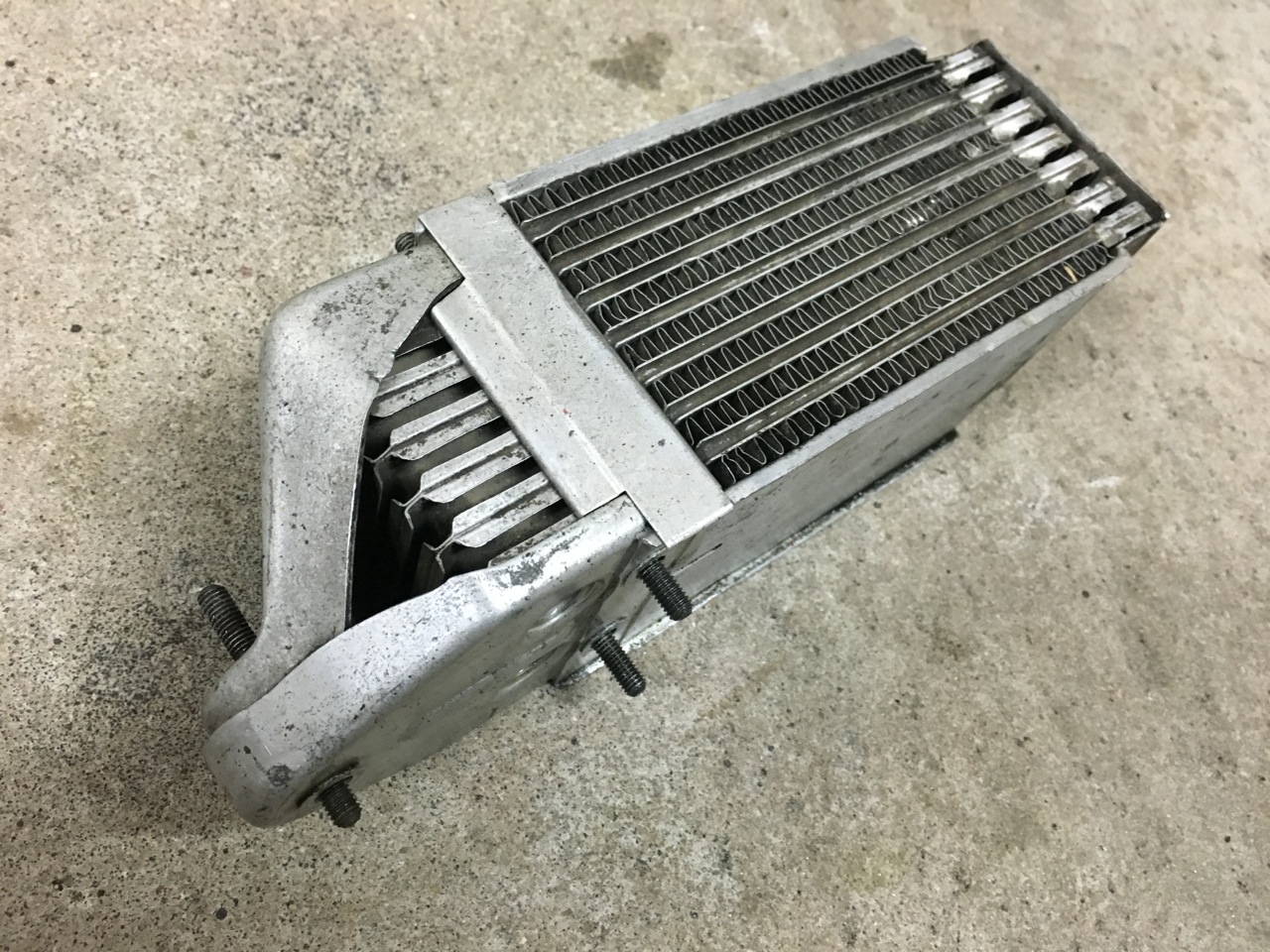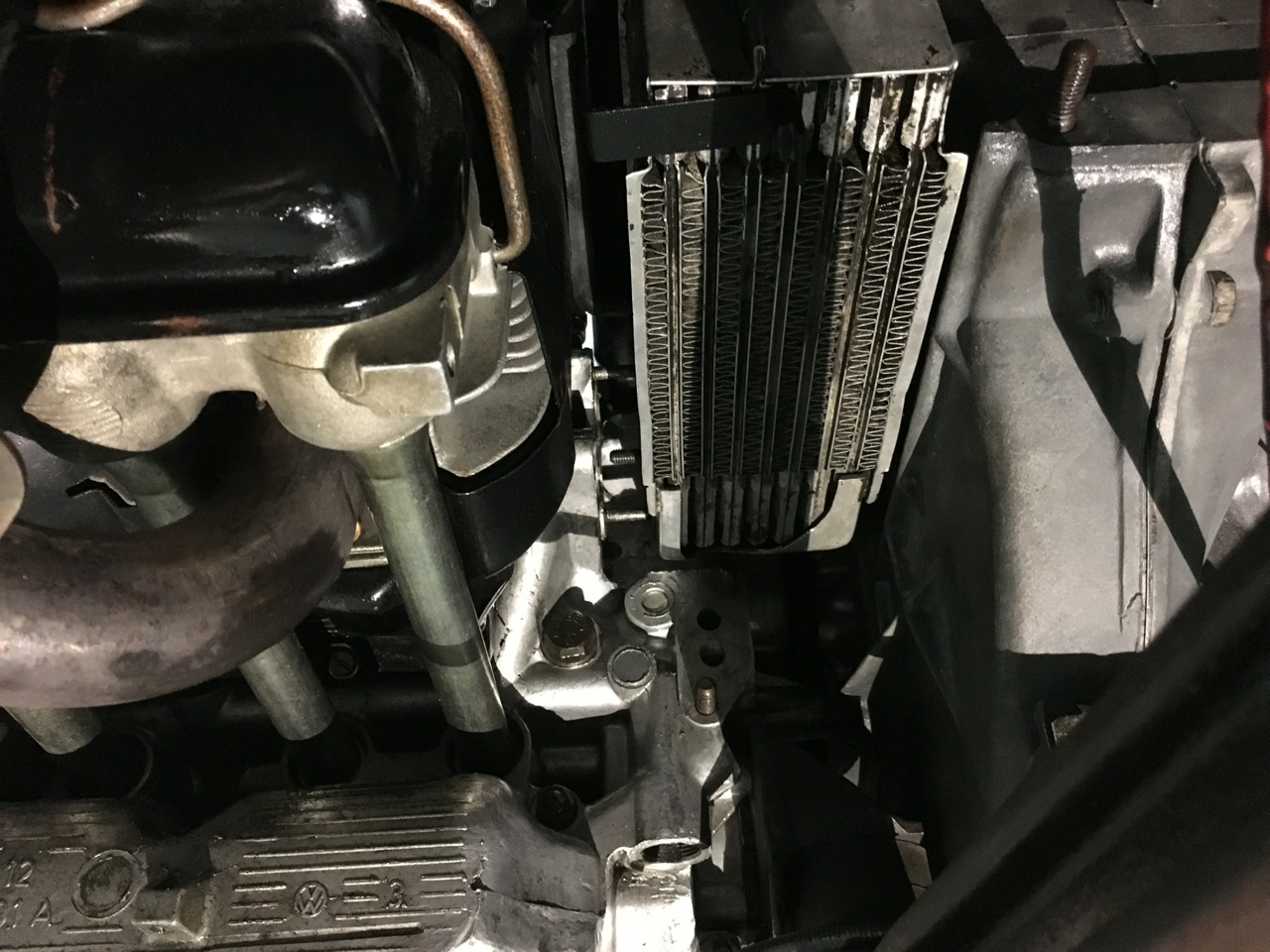 The 1.7 is out, and the build 2??? is in, after multi oil concerns and now I need to remove the cooler to replace the washers into the correct location. So, I removed the cooler while the engines in the car. I have done this before, can be time consuming, even when it is a fresh build. Small pliers loosen and fully unscrew the studs. This will take some time. Little turns. when all 3 are loose, remove cooler with studs in cooler. I had to do this twice since after repairing the washer location, I found the cooler leaked and needed to be replaced. Tested and installed. NO leaks! Cleaned up the trans case with a bit of Gibbs oil. |