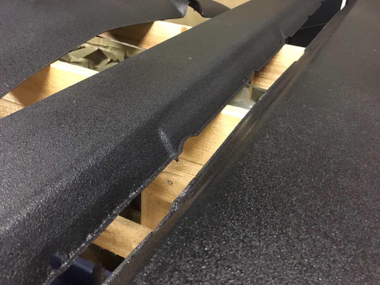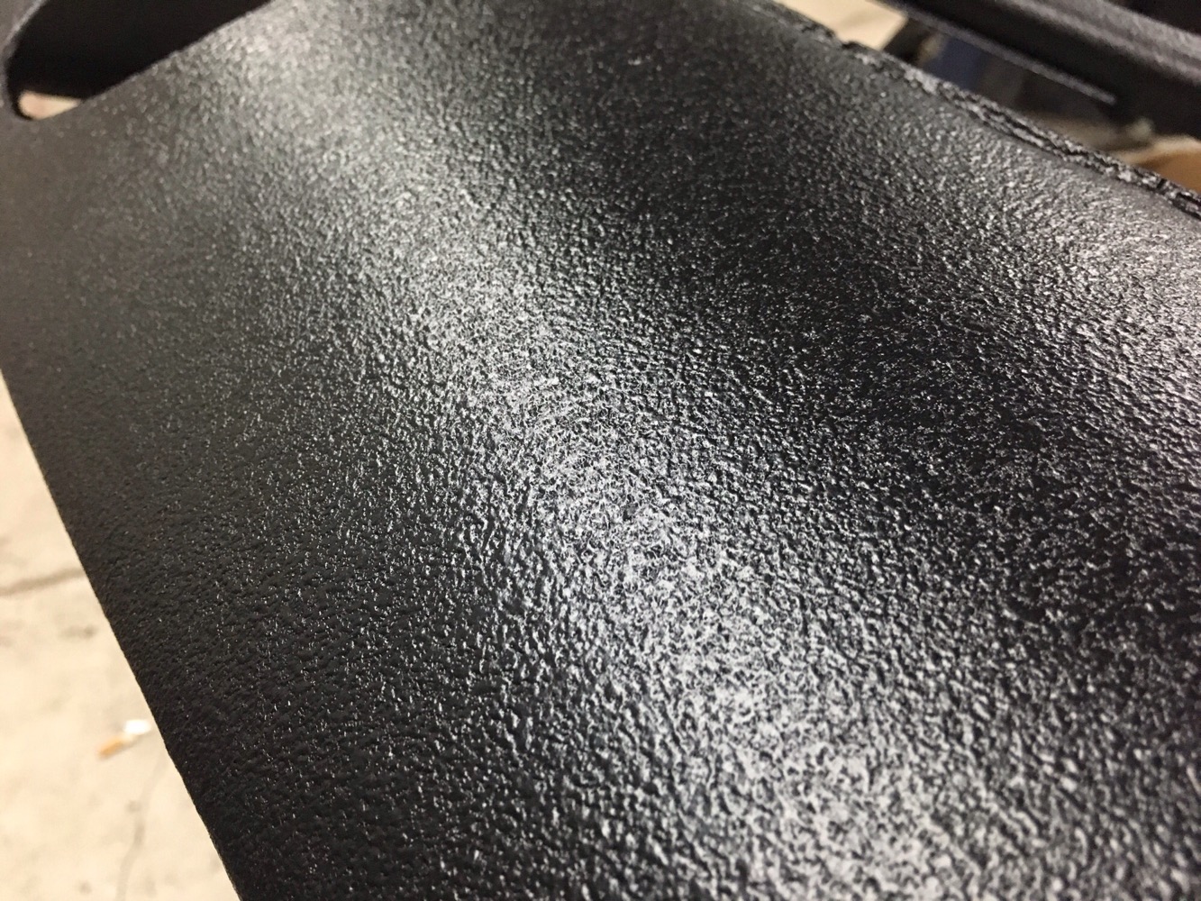 When spraying the Transtar, you can achieve different textures, with distance, and speed. I sprayed 3' away, fast sweeps multiple coats, with full pressure on the nozzle. Multiple coats, from different distances, over the trim black, is very close to factory.