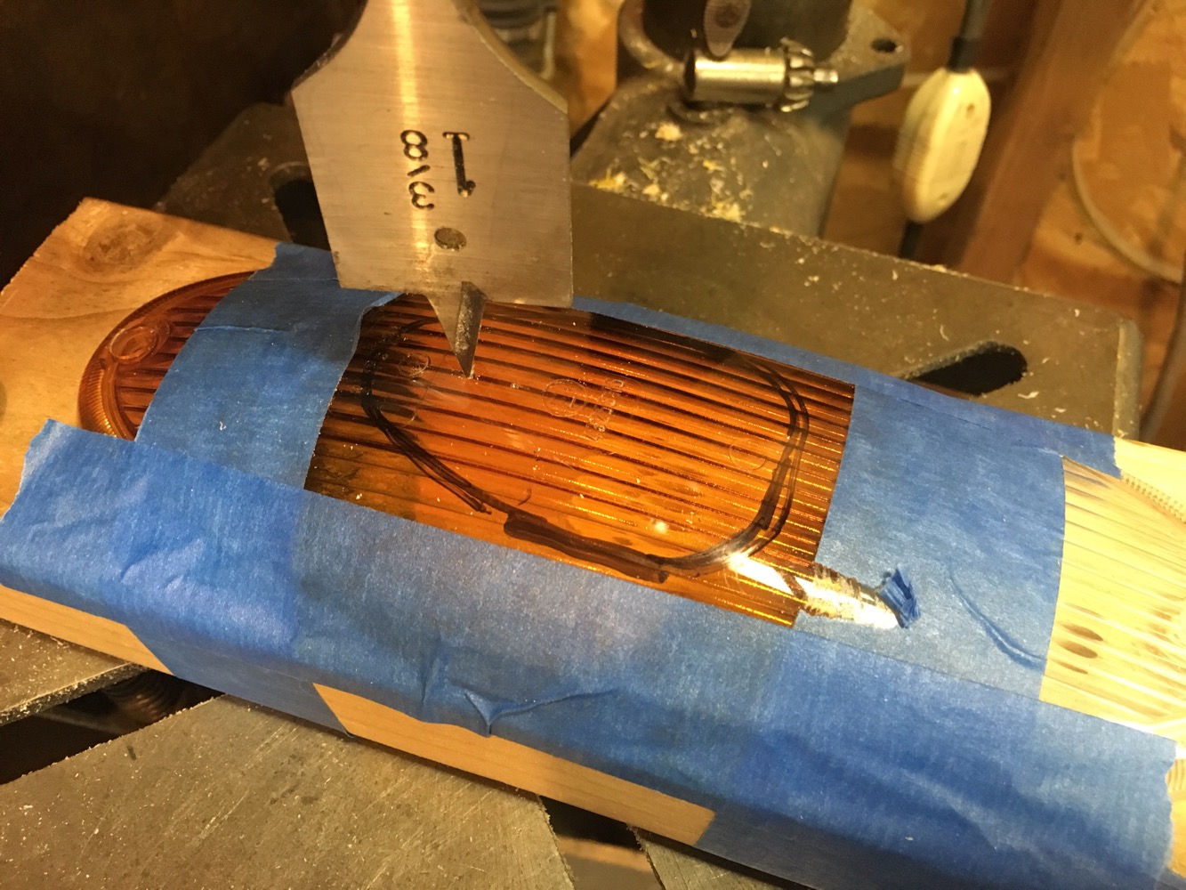 I agree that to be leagal the motorized original lamps I the fog lamp location won't do. So, I am adding HELLA Micro DE Series 12V/35W Xenon Driving Lamps to the turn buckets. ![]() I have seen this size lamp added by others here, thanks for the inspiration. First I turned the bucket upside down, this will allow me and I use the factory sockets for the turn and running lamps. I had already modified the housings with the 2nd socket. Plotting out the locations, and making many cuts, and lots of time with the file, to minimize the size of the hole. Used wax to figure out the size and shape of the scoop from the lens to the lamp. Added a bracket to the driving lamp, so it mounts to the fender independent of the buckets. I'll use a flexible seal between the two from moisture and vibration. This way I will still be able to adjust the lamp direction using the adjustment screws. Cutting the lens. Tried hole saw and metal, and wood drills. Heat was a idea but discoloration was a problum. I think I could have got the lens to the correct temp, but hard to control even temp across the lens. So I am going with a wood drill, and saw blade. (IMG:style_emoticons/default/sawzall-smiley.gif) |