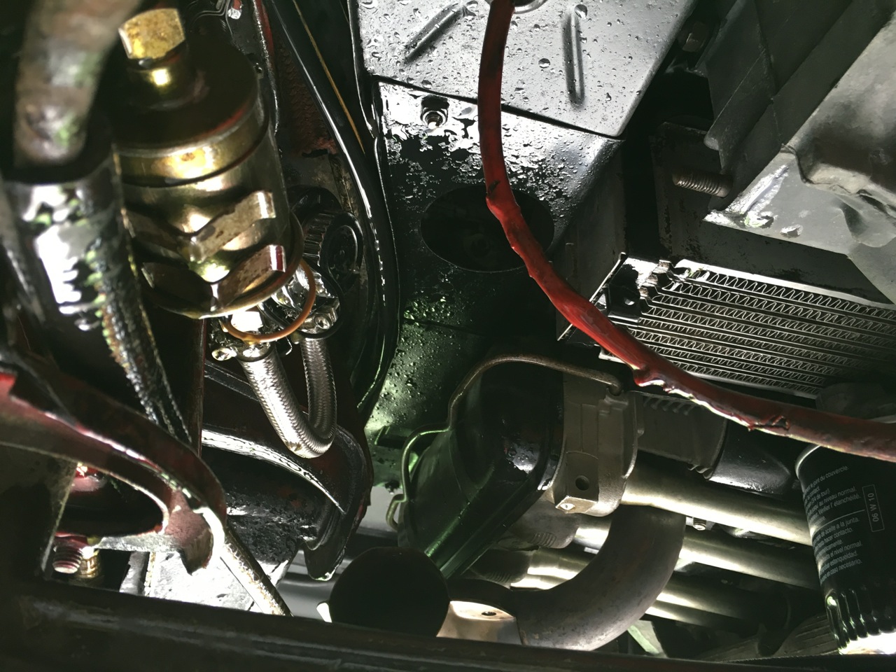 Restart and oil pours out like a faucet. Cause, thick washers for the oil cooler to mount were installed between the cooler and the block. By me. Ug. They should be out side the cooler with the lock washer, and nut. In turn the seal won't seal! major oil leak, at 42 psi. |