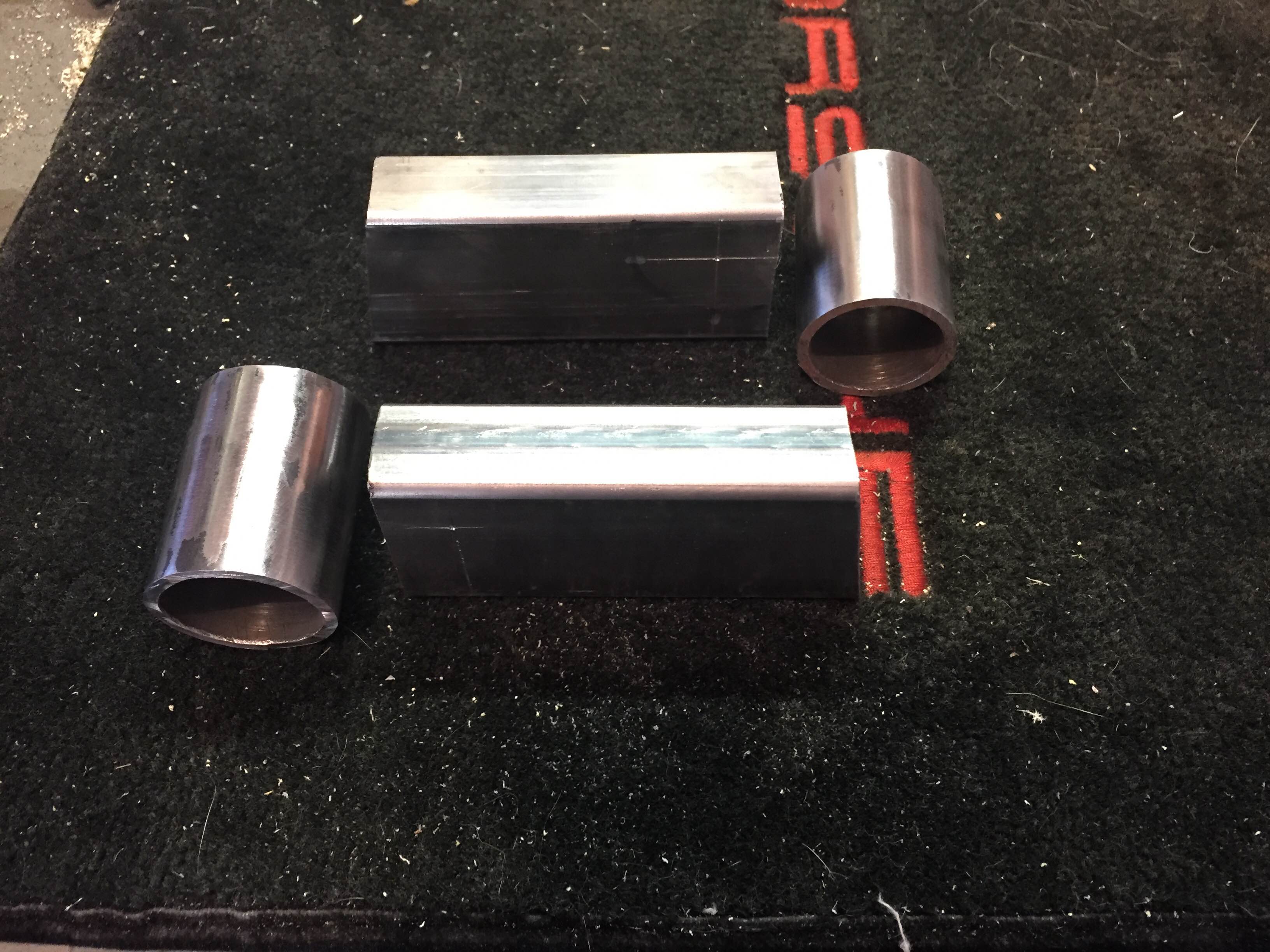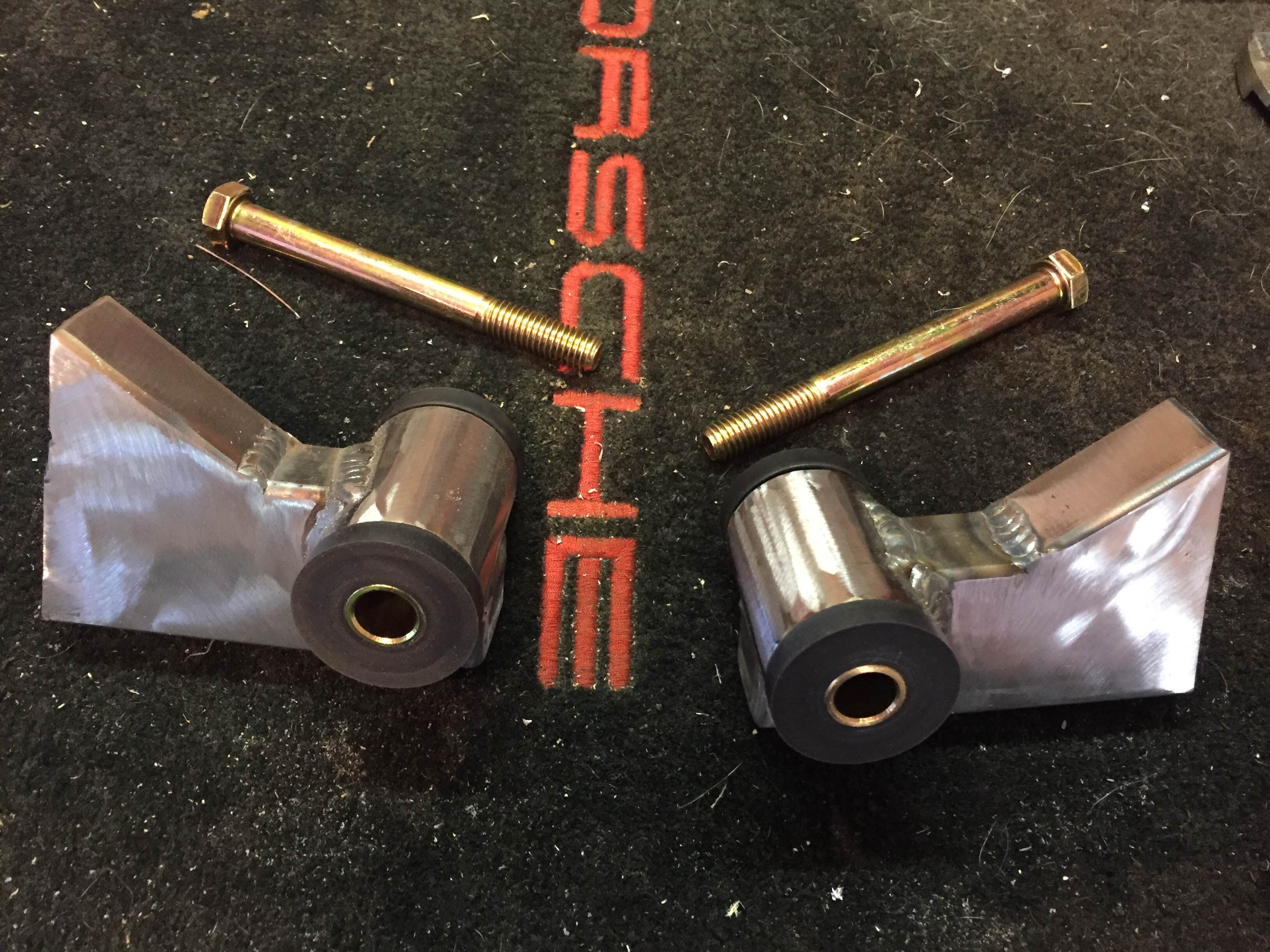 Just finished up making a couple parts for the bulkhead motor mount. These will mount to the bulkhead, the plate that is tacked to the bulkhead is 1/8" and the tubing is all 1/8" walled 1x2 rectangle tubing. The round tubing is 1-5/8" and allows me to use the Energy Suspension bushings. This front motor mount will be very much like a naro914 Porsche six cylinder motor mount. His is what I would consider an upgraded Patrick mount, both are very good quality strong motor mounts.