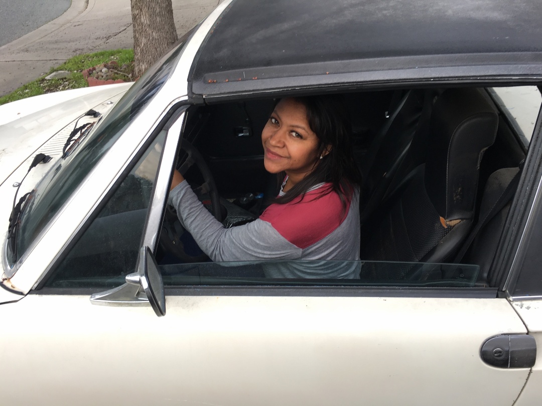 For the last year and half my latest one was stored across the street, finally pushed it home and I didn't even get a chance to "drive" it.....my lovely wife Sherryl had the honors of steering it. I had a green Porsche script on it that I added to it a year ago, nobody in the family really cared for it the more we looked at it. I must have had the worlds cheapest paint job, much of the paint under the decal came off...oh well it needs new paint badly. |