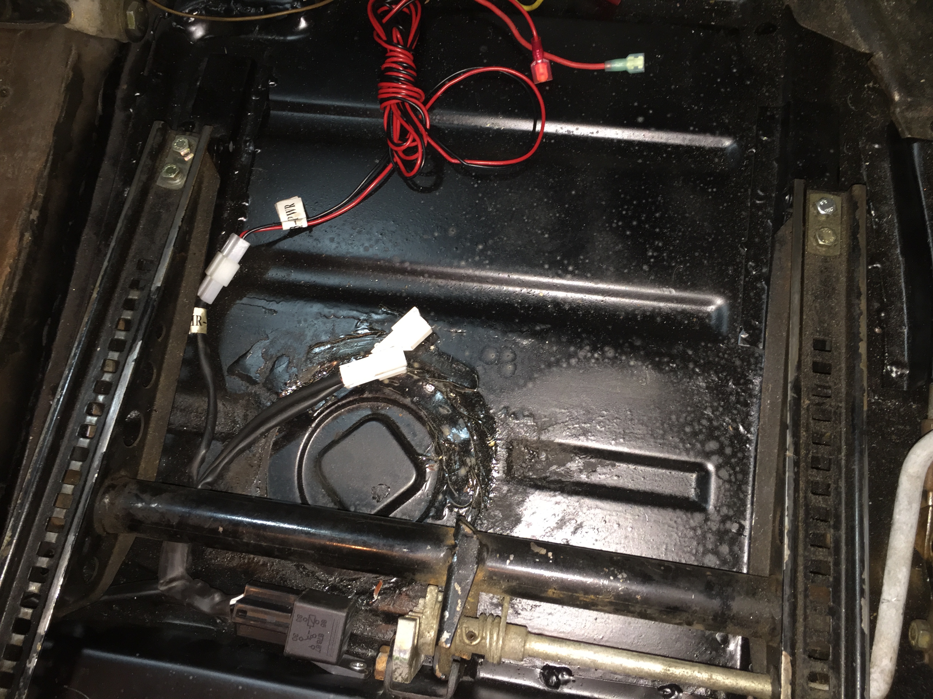 Thought I would rewire the heated seats as I am cleaning up and putting rugs back in place - the wiring you see on floor is for the heat pads that were put in when I did the 914rubber seat kits I will later on put some sound pad under there but I don't have time now and it reall does not make that much difference- Attached thumbnail(s) |