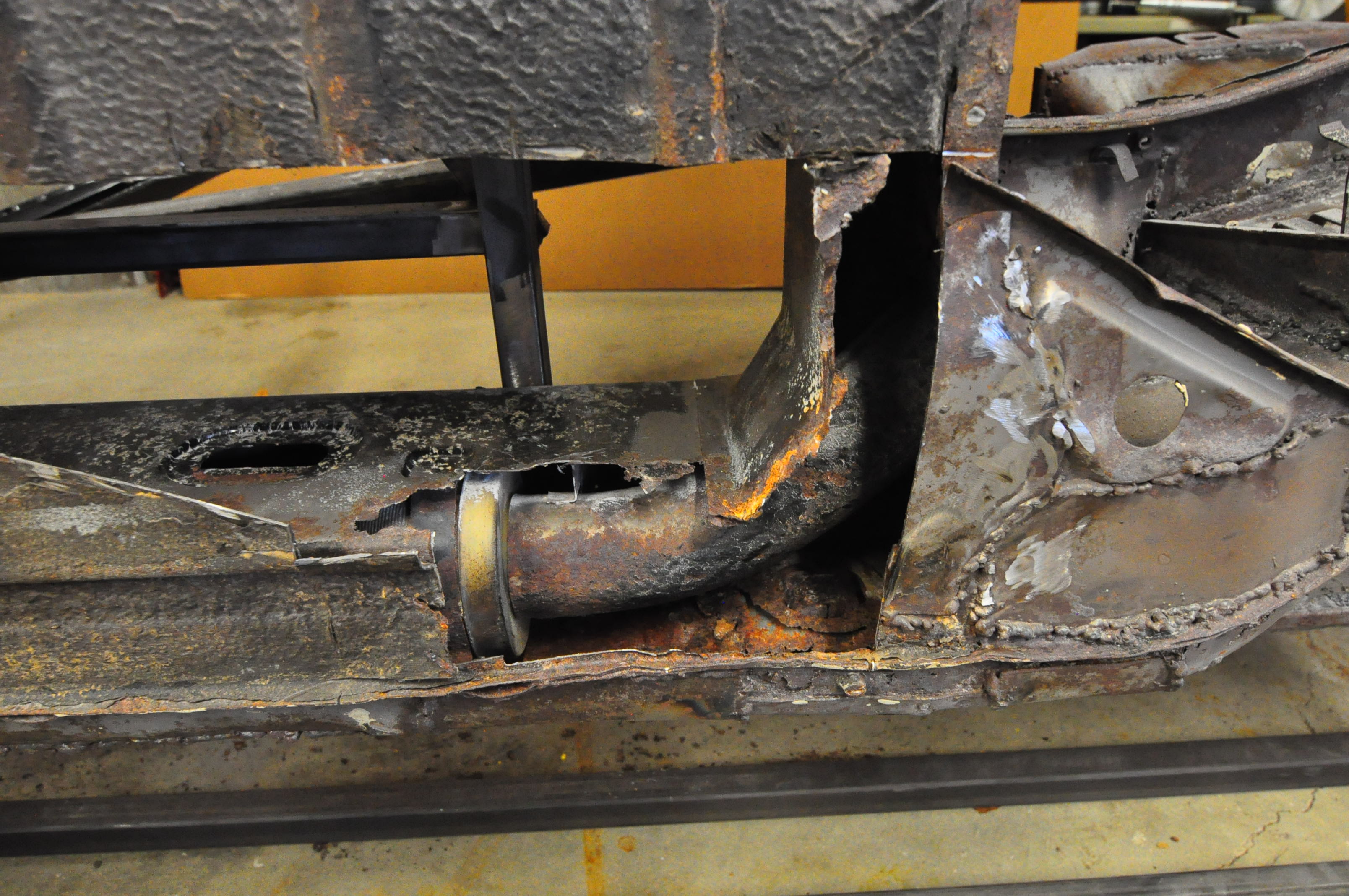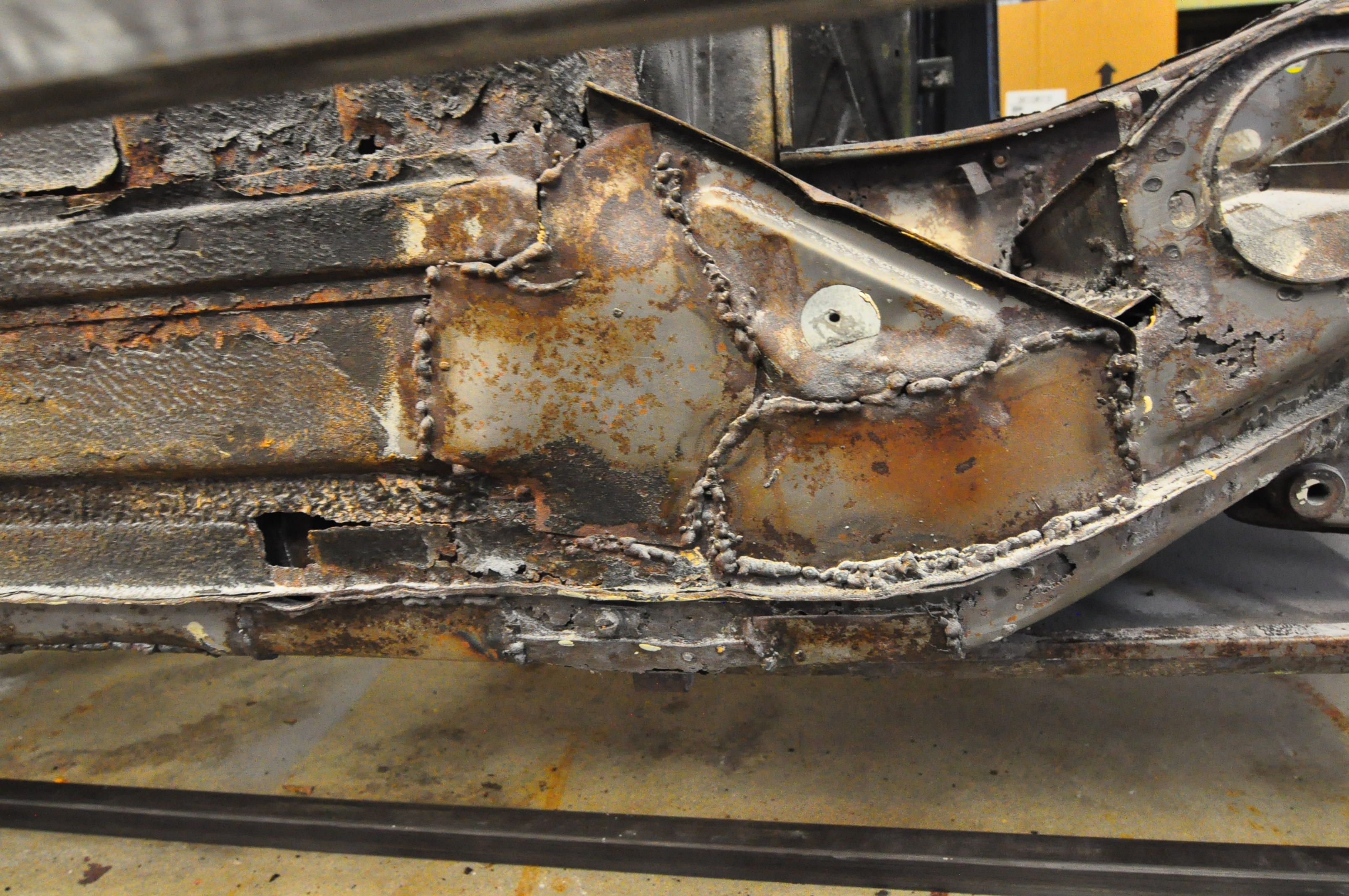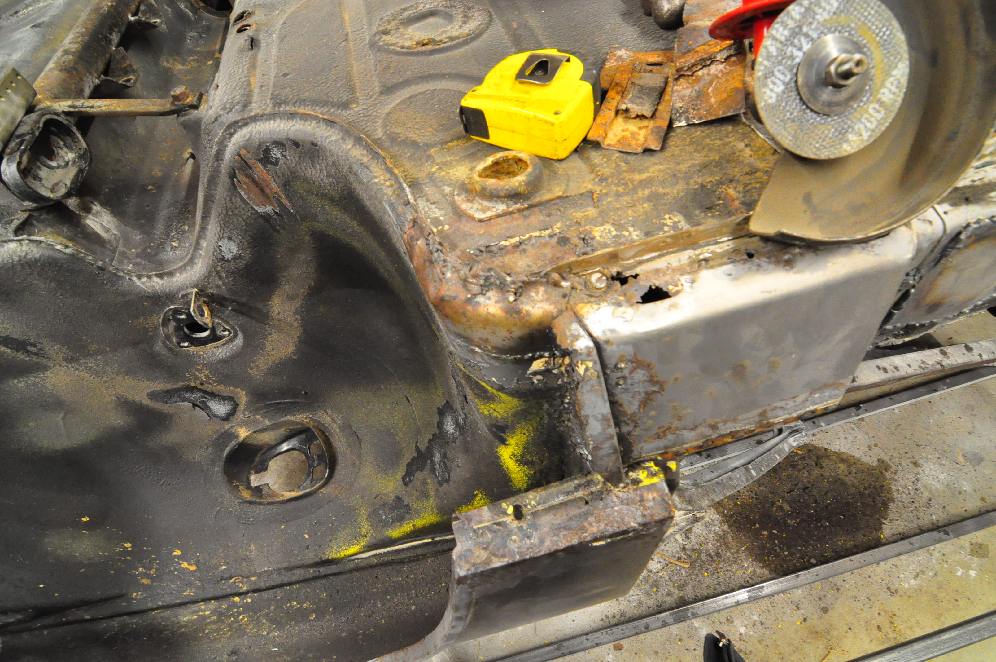 Car was soda blasted the first week of November. I had the guy concentrate on removing the yellow paint and cleaning all the area’s that I knew were bad and wanted to get a better look. Some parts of the car like the floor are likely to be replaced so I only had the edges of those panels blasted but didn’t waste time (and money) thoroughly cleaning all the panels.