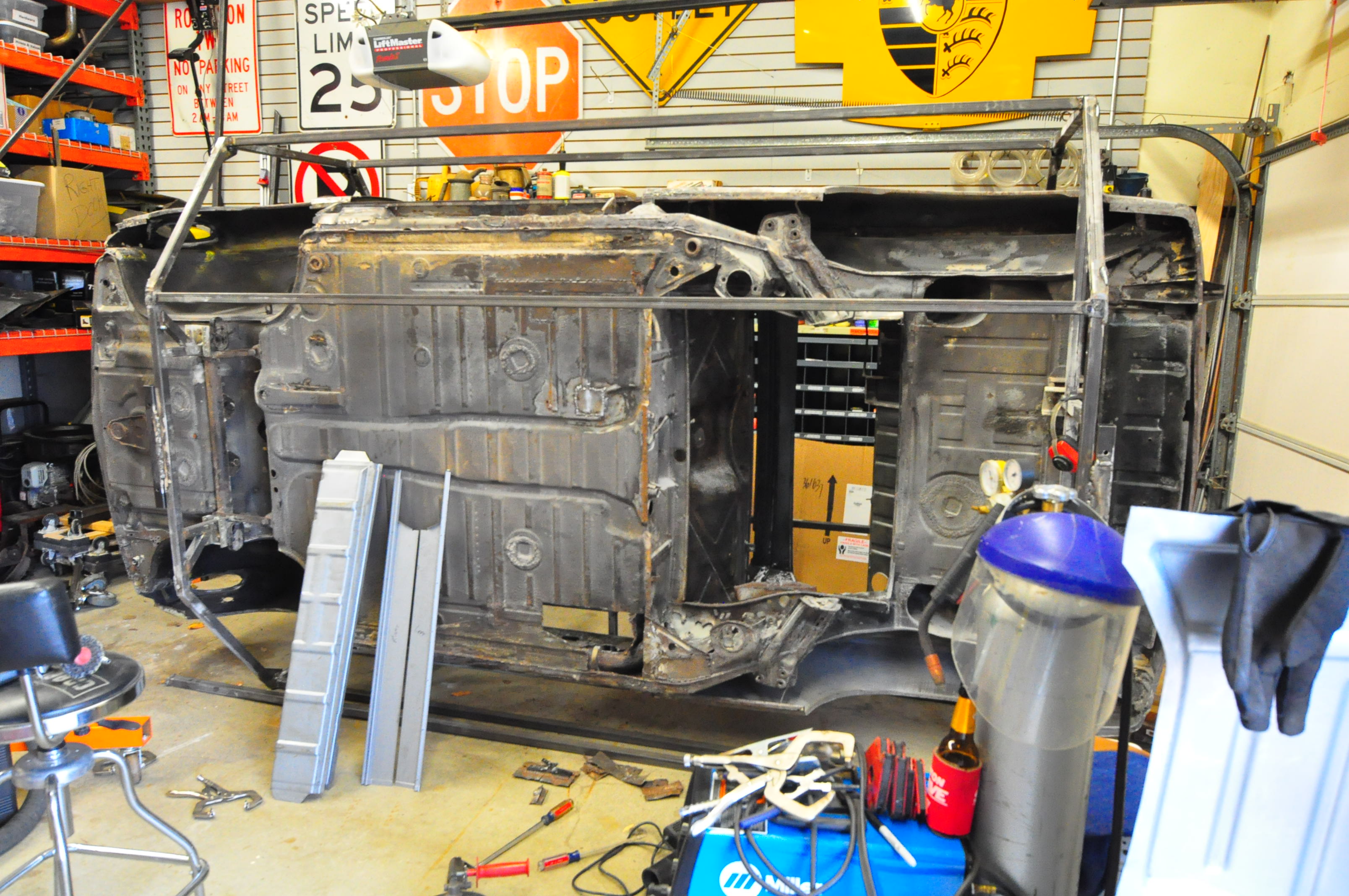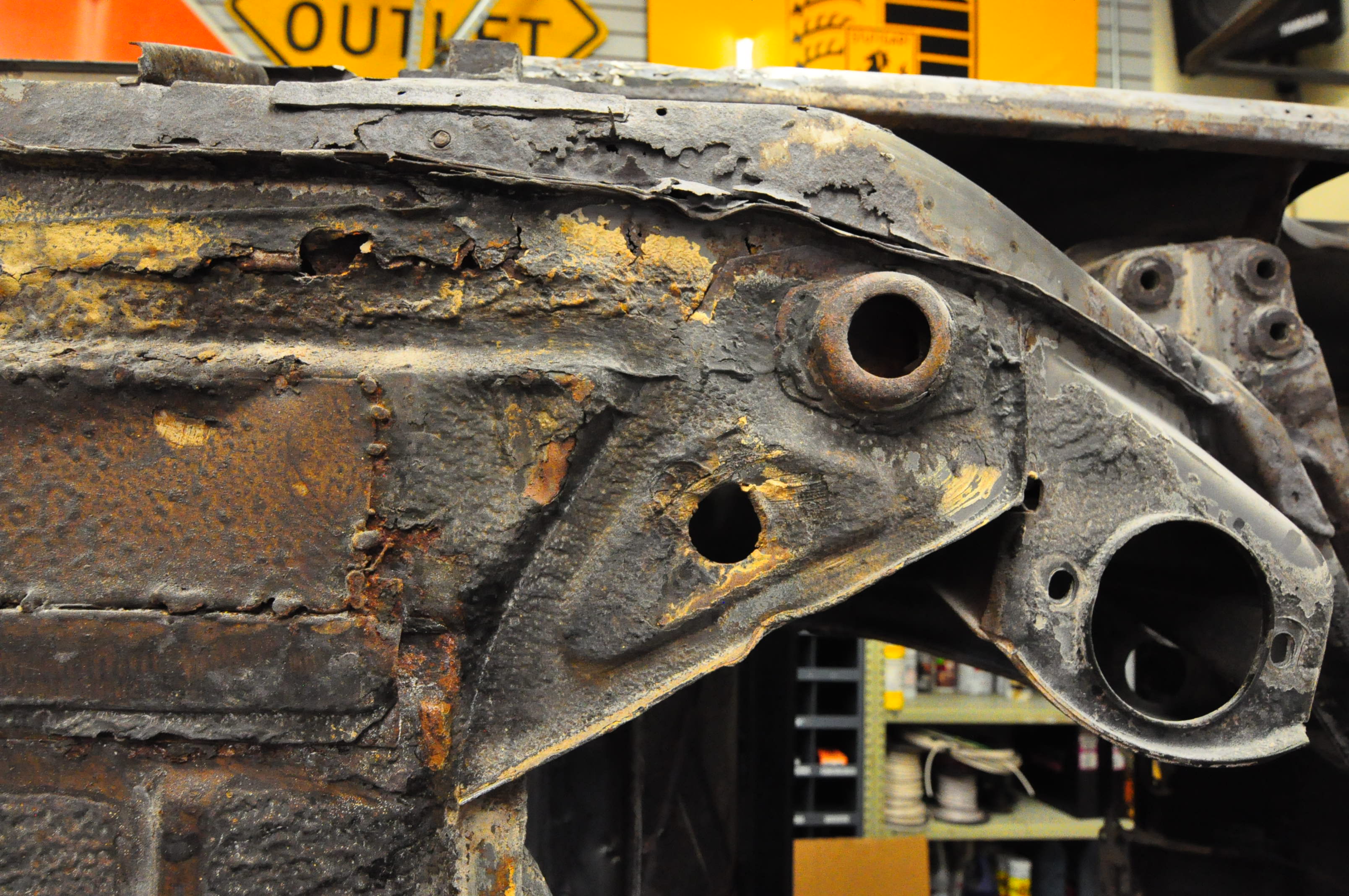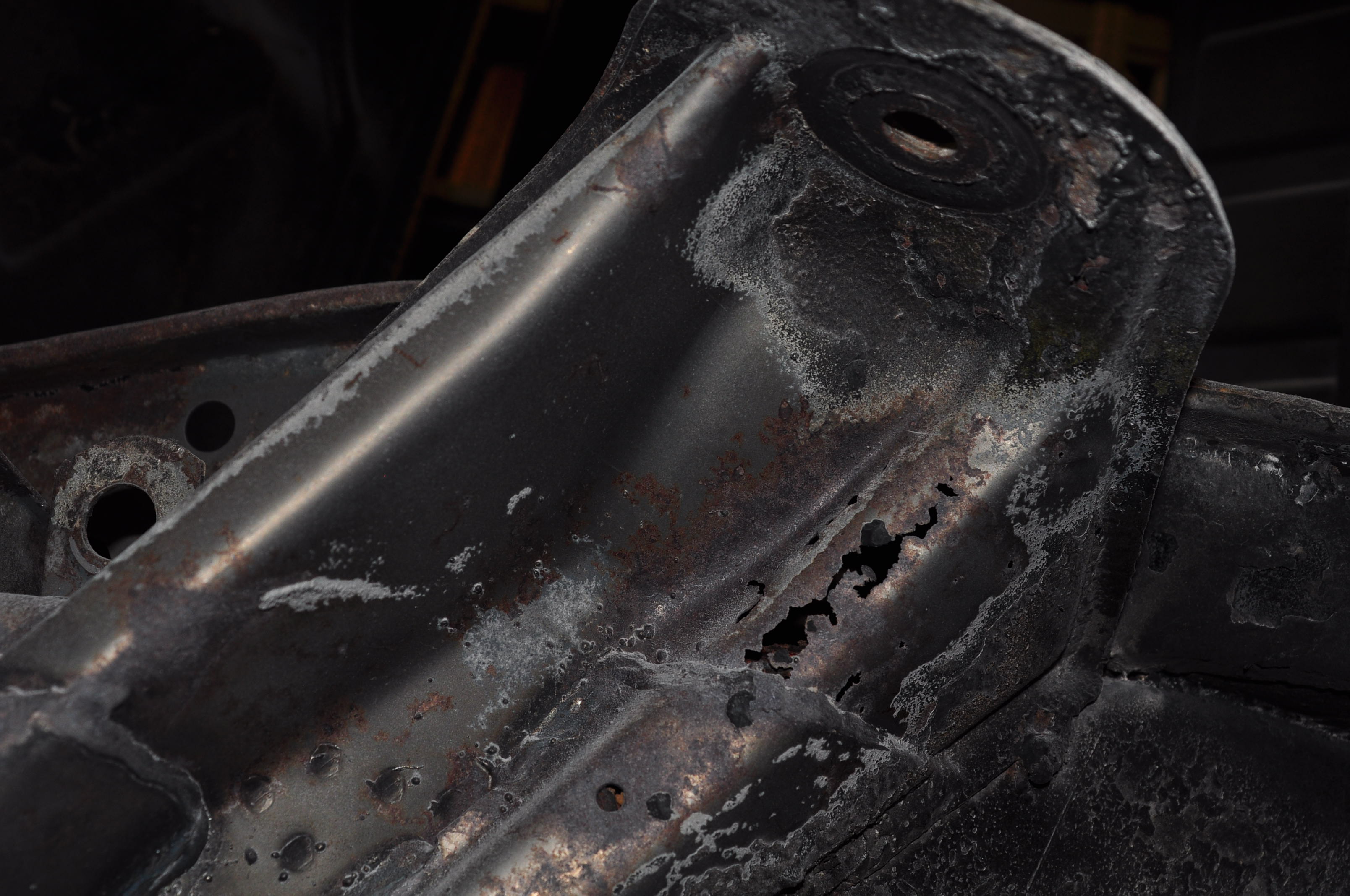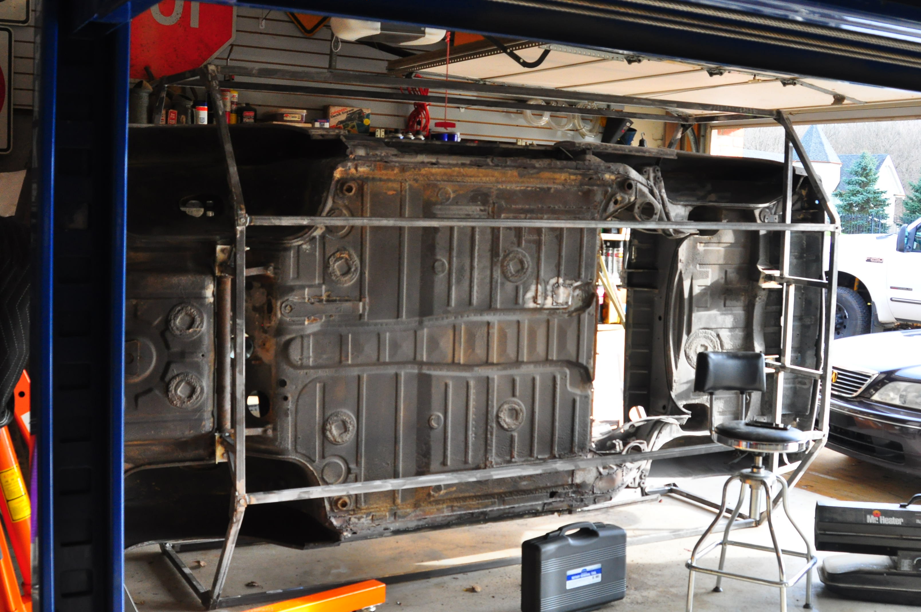 Car was soda blasted the first week of November. I had the guy concentrate on removing the yellow paint and cleaning all the area’s that I knew were bad and wanted to get a better look. Some parts of the car like the floor are likely to be replaced so I only had the edges of those panels blasted but didn’t waste time (and money) thoroughly cleaning all the panels.