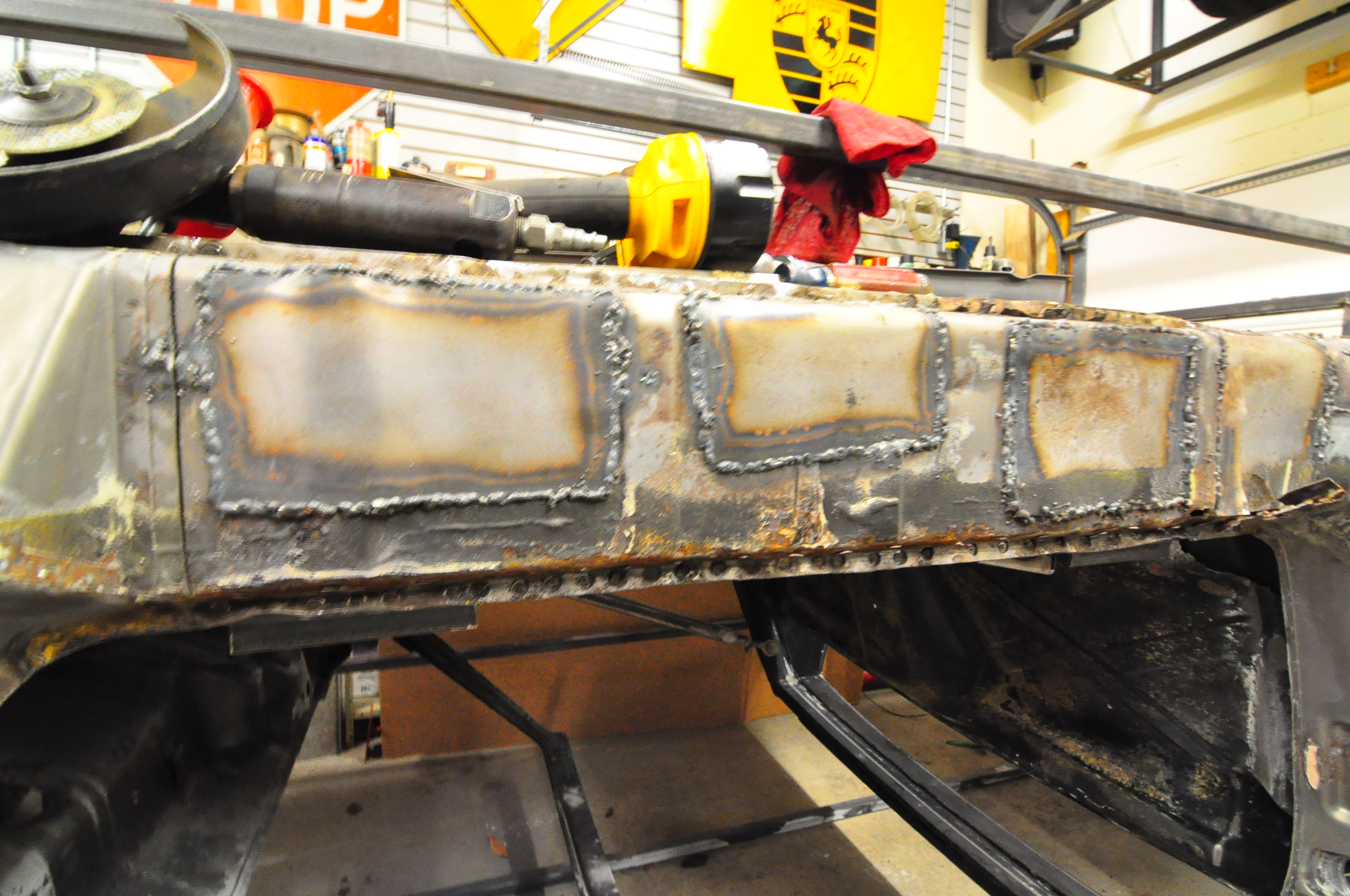All in all the soda blasting revealed that there are more areas to be addressed than I had hoped. Luckily, it’s only metal. Fortunately, Christmas came early in the form of this amazing tool. What is this tool called? Eastwood Pneumatic Rotary Removal Tool Rotary tool It's not cheap (it was just on sale for $250 I think), but it pays for itself given how well it works. It's a huge timesaver. |