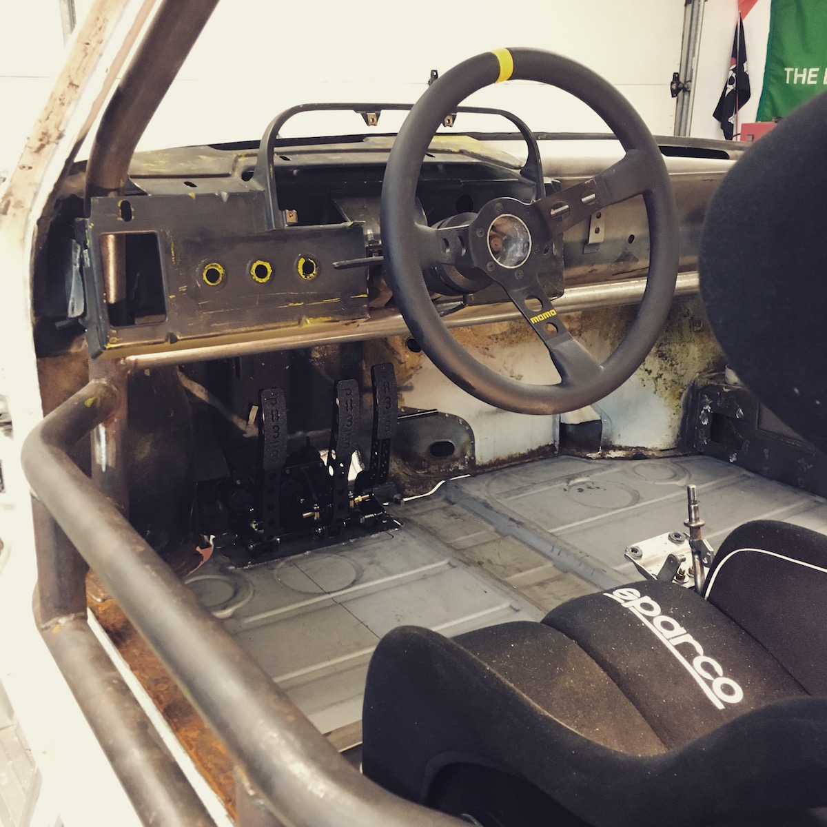 So whats new: - Loaded up the trailer and took the car off to the blaster. Came back minty-fresh - Pretty happy with the result, not too much blow-through from the blaster, chassis is pretty much ready to take to paint - Fully welded in the floor pans and the shifter console - Liking the ergonomics, its coming along I waited to install the pans before blasting on purpose. I wanted to make sure all the shitty stuff under the dash got a good blast. The pics don't show it but I also tied the pan into the center "tunnel" structure, its nice and firm now, structurally sound. Next steps: - Friend who loaned me the trailer is moving, so I gotta get this thing off to paint ASAP. - I need weld in some tabs for the dash, weld in mounts for the passenger rocker, and seam-seal the driver compartment, and then I get off to paint. - I expect to be at painter in the next two weeks. |
