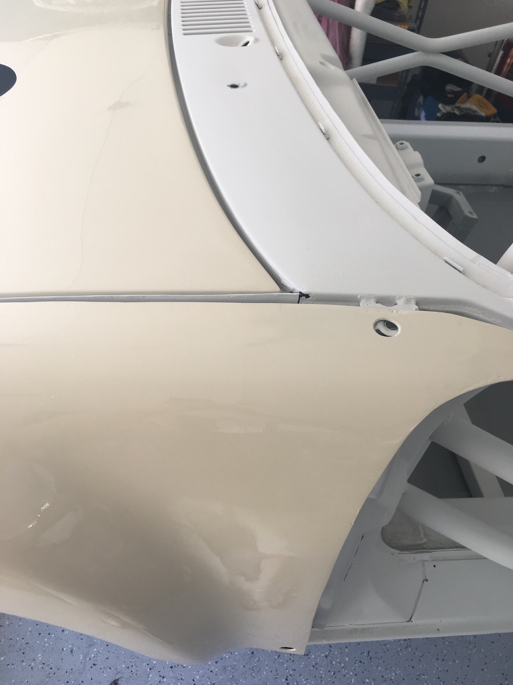 I've been toying with the idea of painting the car myself and this past Saturday I got down to business and started spraying. Yes, I used a cheap HF gun (I've got a new Eastwood gun on order). Yes, the panels did not come out as perfect as they would if I had paid someone. Do I care? Well, yes and no. I figure, this is my project, for better or worse, and the only way Im going to learn is by making mistakes. Im precise all week long for my job, on the weekends I think Im entitled to a bit of /experimentation/ (IMG:style_emoticons/default/smile.gif) I've been using this HF gun for a few years now so Im not totally new to painting with it. The fenders all turned out great actually, while the hood has some pitting that Im not too happy about, but the white paint does a lot to hide the flaws. The color is Wimbledon White, its kinda creamy. Its the same paint we used on my brothers 912-STi project. The bumpers, rockers, roof, and sail panels will be finished in satin black. |