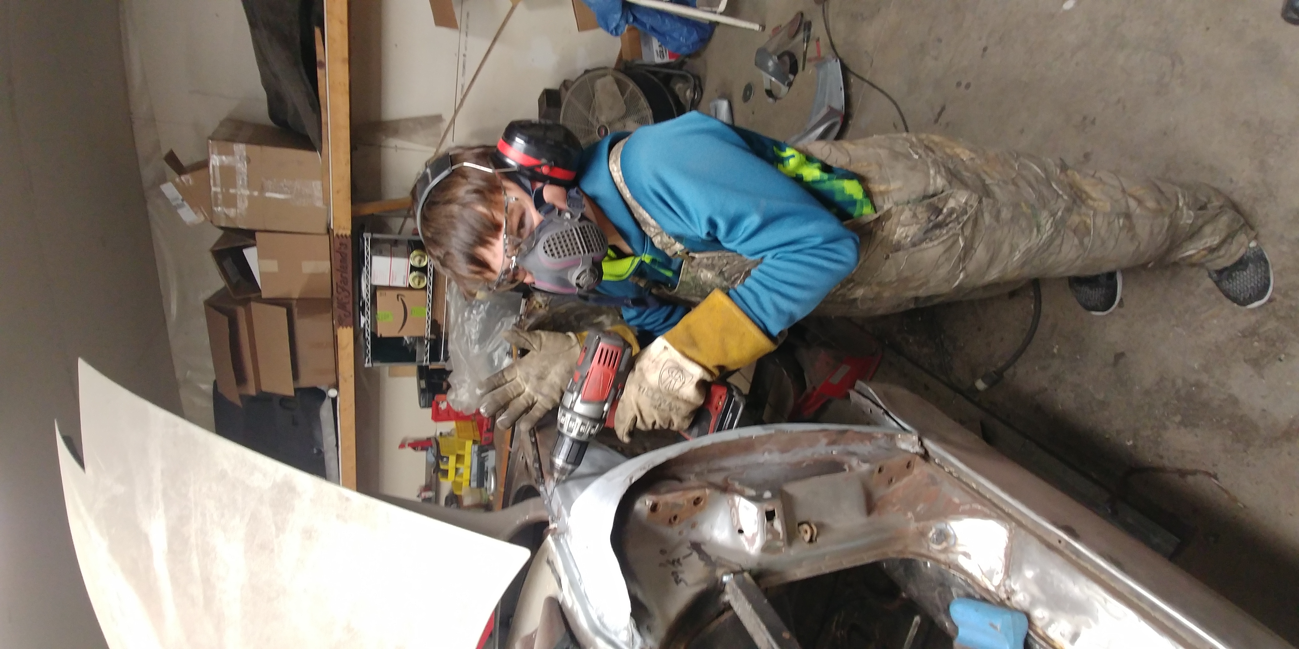 The plan for the week is ship all the mufflers, oil tanks, and gt rocker flares and Also finish passenger front P.O. shotty repair redo. Some of it is ok but most of it is brazed and that sucks in my opinion.. I ground most of that down and hammered and dollied the dents.. Cleaned and zinc painted the bare metal.. Gotta weld a few areas and then ready for the fender.. This will help get the car closer to becoming a roller.
