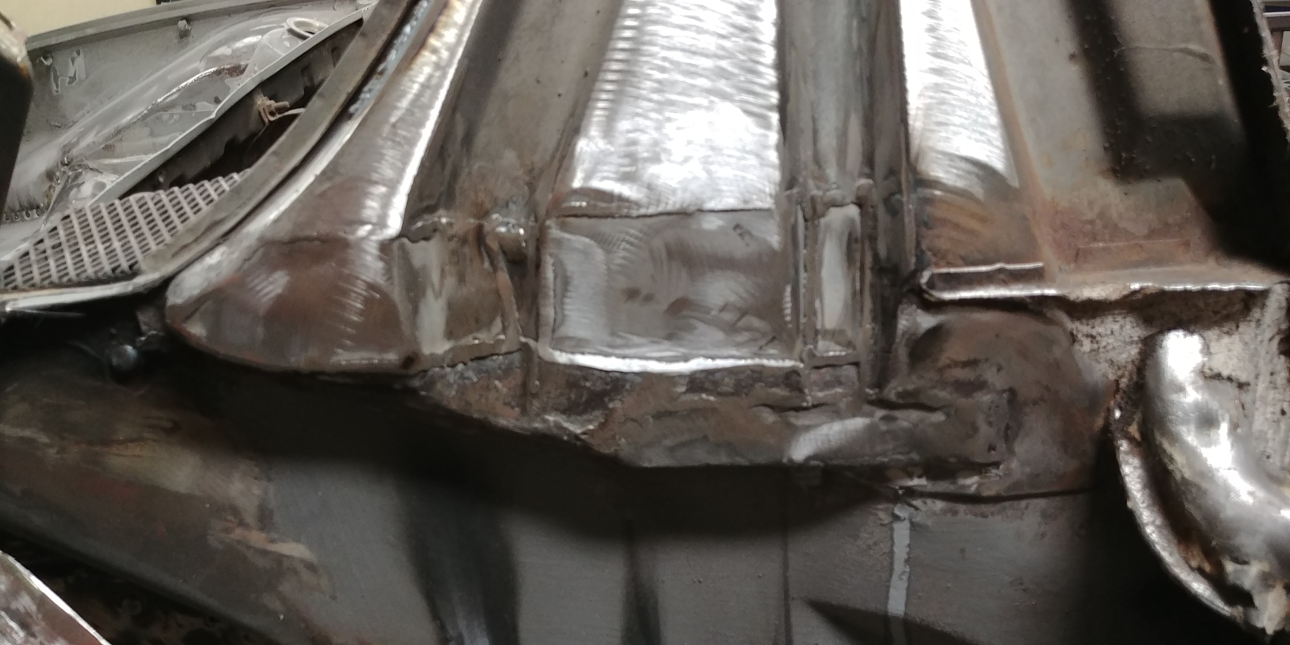 Then business is very busy and growing. A website is under development thanks to a member here that has been an absolute blessing.. The GT hardlines have consumed allot of time and money.. That said I gave in and bought 2 new sail panels from restoration design as while I was in there make it 100% right.. It put me behind by a couple weeks of my target but will be worth it.. I cut the passenger side off yesterday inbetween cerakoting some engine parts after repair for a customer. Front wheel well has been a constat issue where it was brazed etc.. Almost done welding pits and grinding in that area.. Hopefully prime that area this week and mount the door on so can weld the fender on.. |