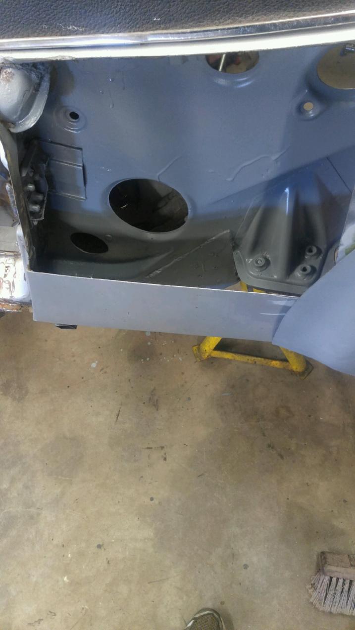 Driver side rocker is in.. The floor pan short section is removed.. The chassis stiffener is screwed in place.. Front trunk floor has been cut out and the replacement louvered floor pan has been fabricated.. I have sandblasted the engine lid, shift linkage, heater flappers, brake dust shields, all primed is aviation epoxy primer.. Was able to locate some steel flares, and a 2.4 engine that's will be picking up shortly thanks John and Rusty.. Making progress.. I will post pictures shortly.