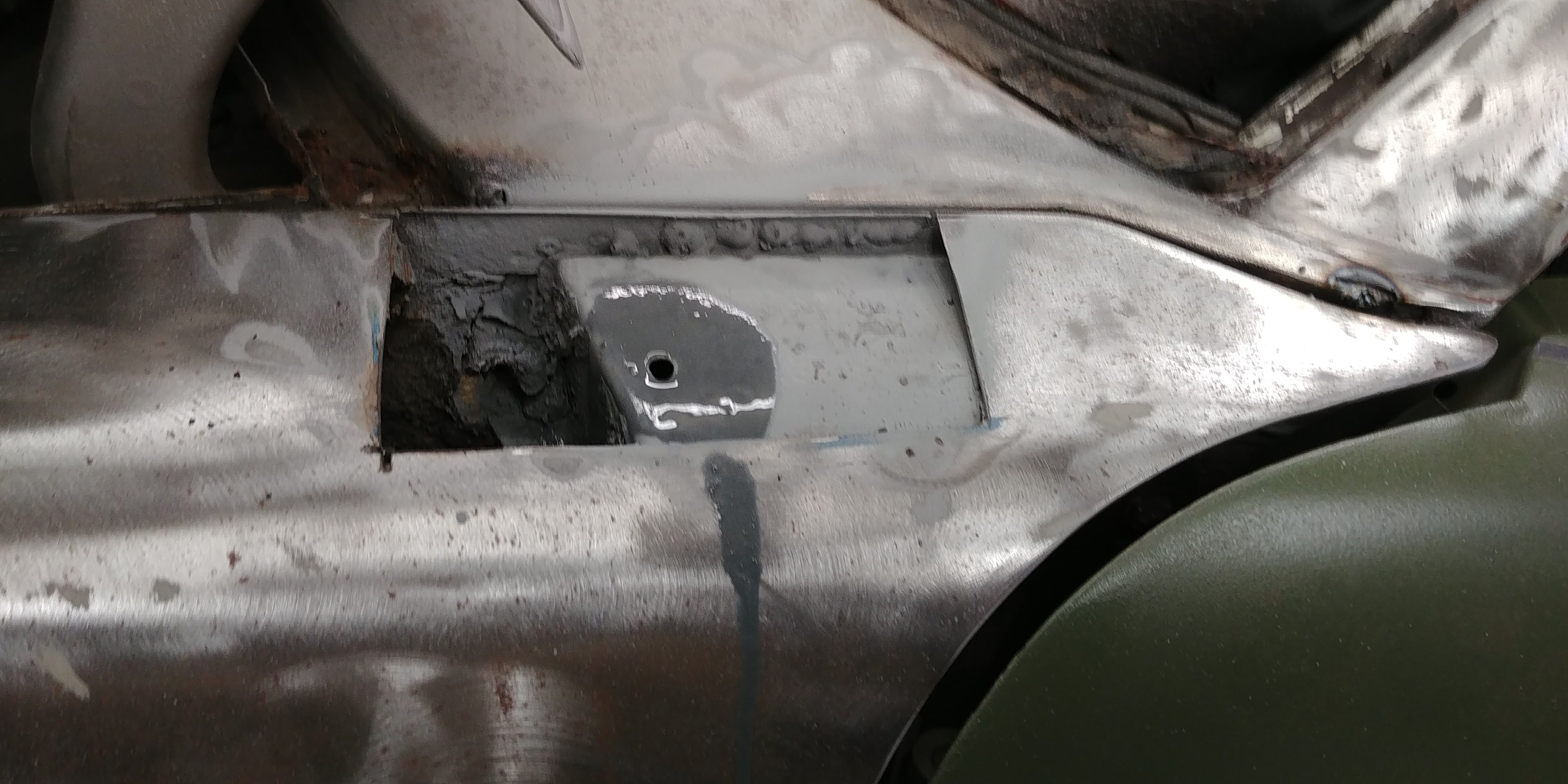 Well after a week of very little work on the car I was able to hammer out the weld area in the recently welded in driver side sail panel. Ground a bit more. Second guessed my plan to not TIG weld all the panels on (remember a TIG welder by trade) then reaffirmed my decision as when panels are fused using TIG there is a recess in thickness and once blended the parent material will be paper thin..